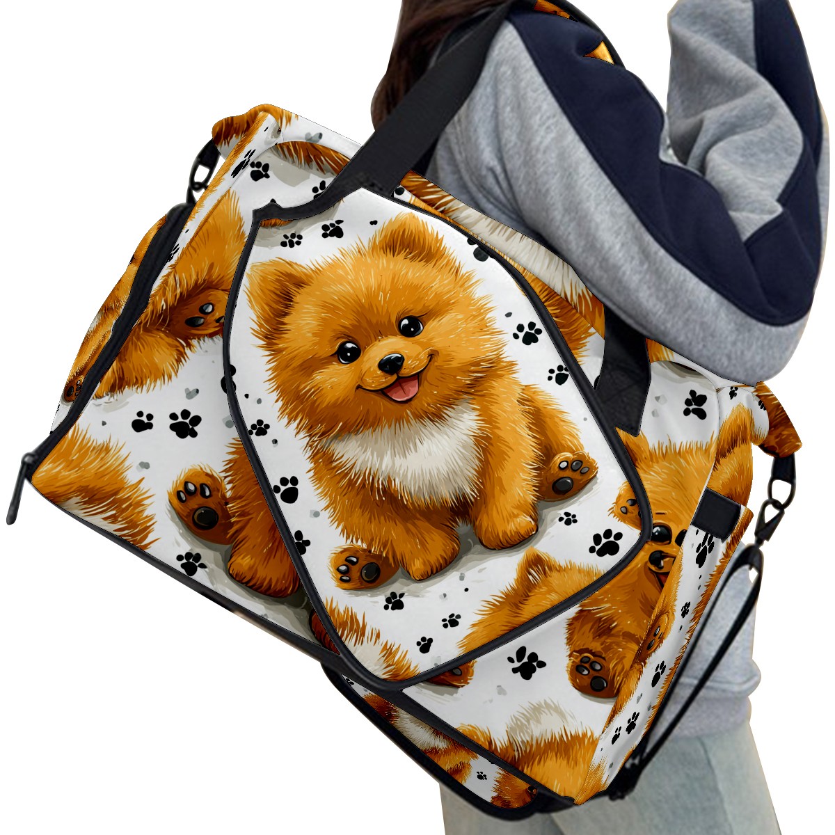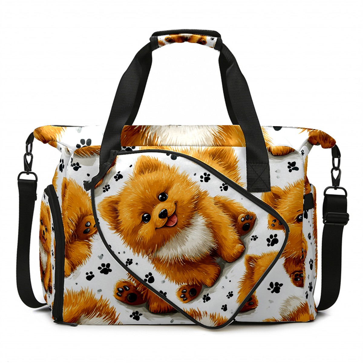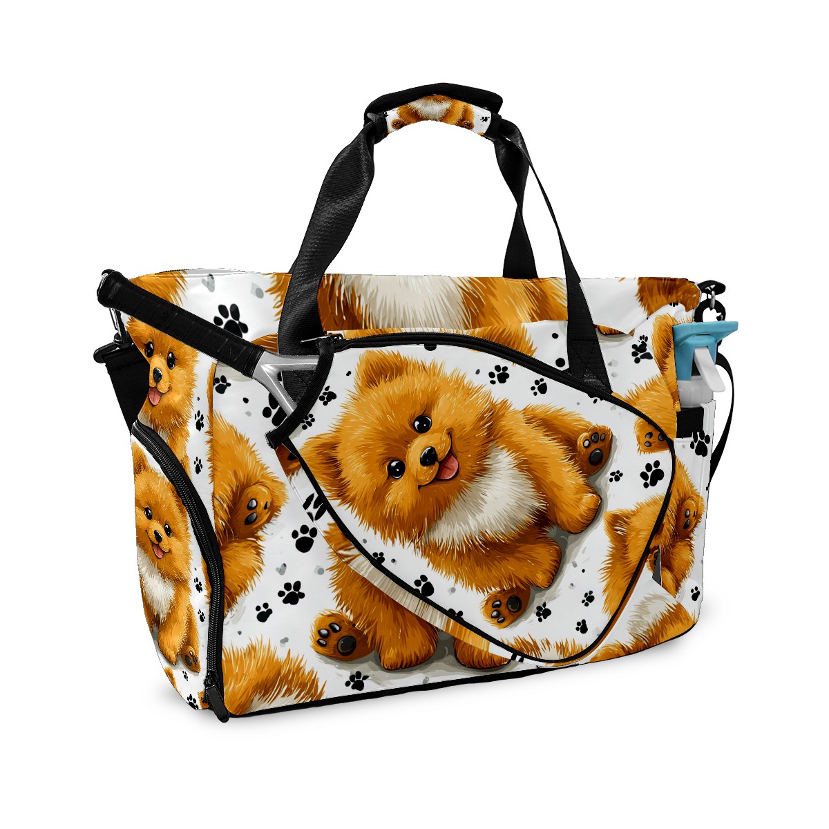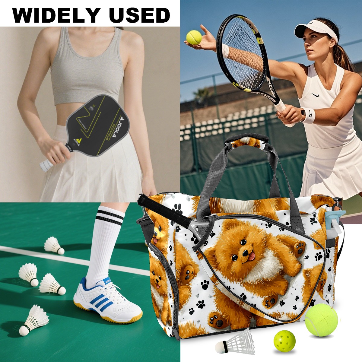 Women's Tennis Bag Large Capacity - Ventilated Shoe Compartment & Waterproof Wet Pocket, Multi-Functional Gym Duffel Bag for Tennis, Yoga, Travel (Pomeranian Paw Orange)