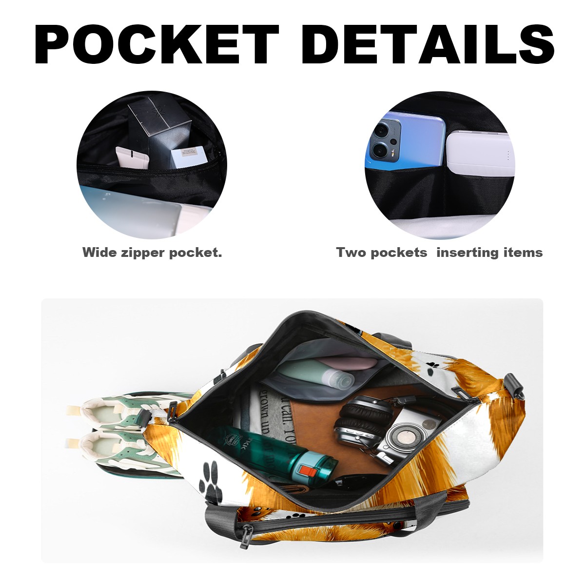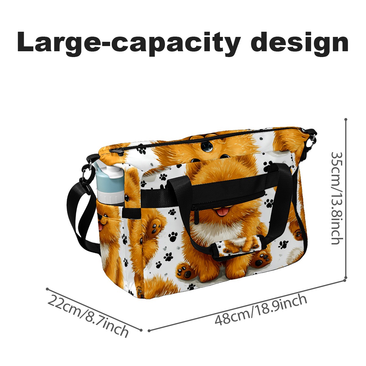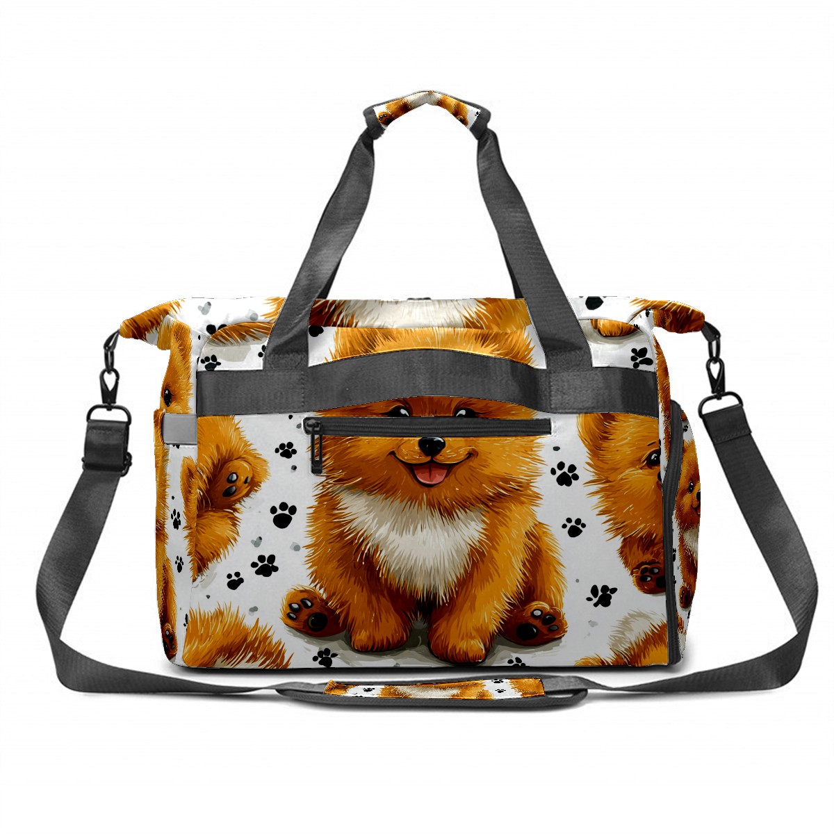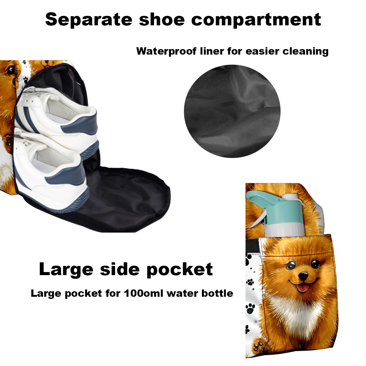 Women's Tennis Bag Large Capacity - Ventilated Shoe Compartment & Waterproof Wet Pocket, Multi-Functional Gym Duffel Bag for Tennis, Yoga, Travel (Pomeranian Paw Orange)