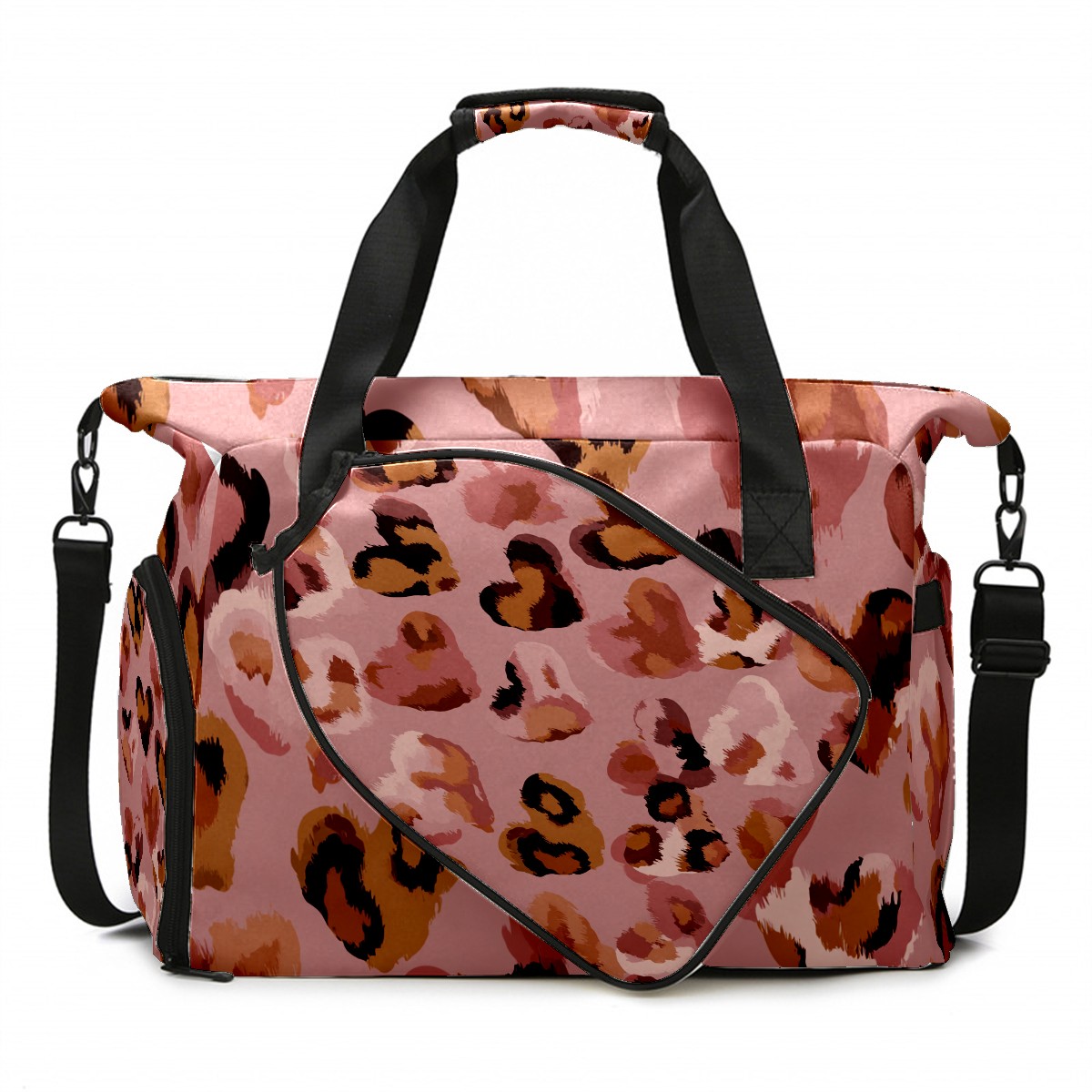 Women's Tennis Bag Large Capacity - Ventilated Shoe Compartment & Waterproof Wet Pocket, Multi-Functional Gym Duffel Bag for Tennis, Yoga, Travel (Heart Shape Pink)