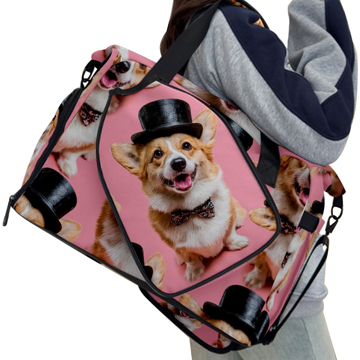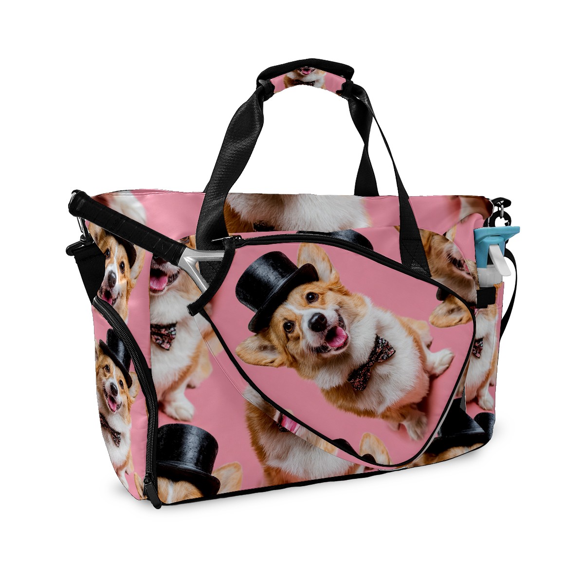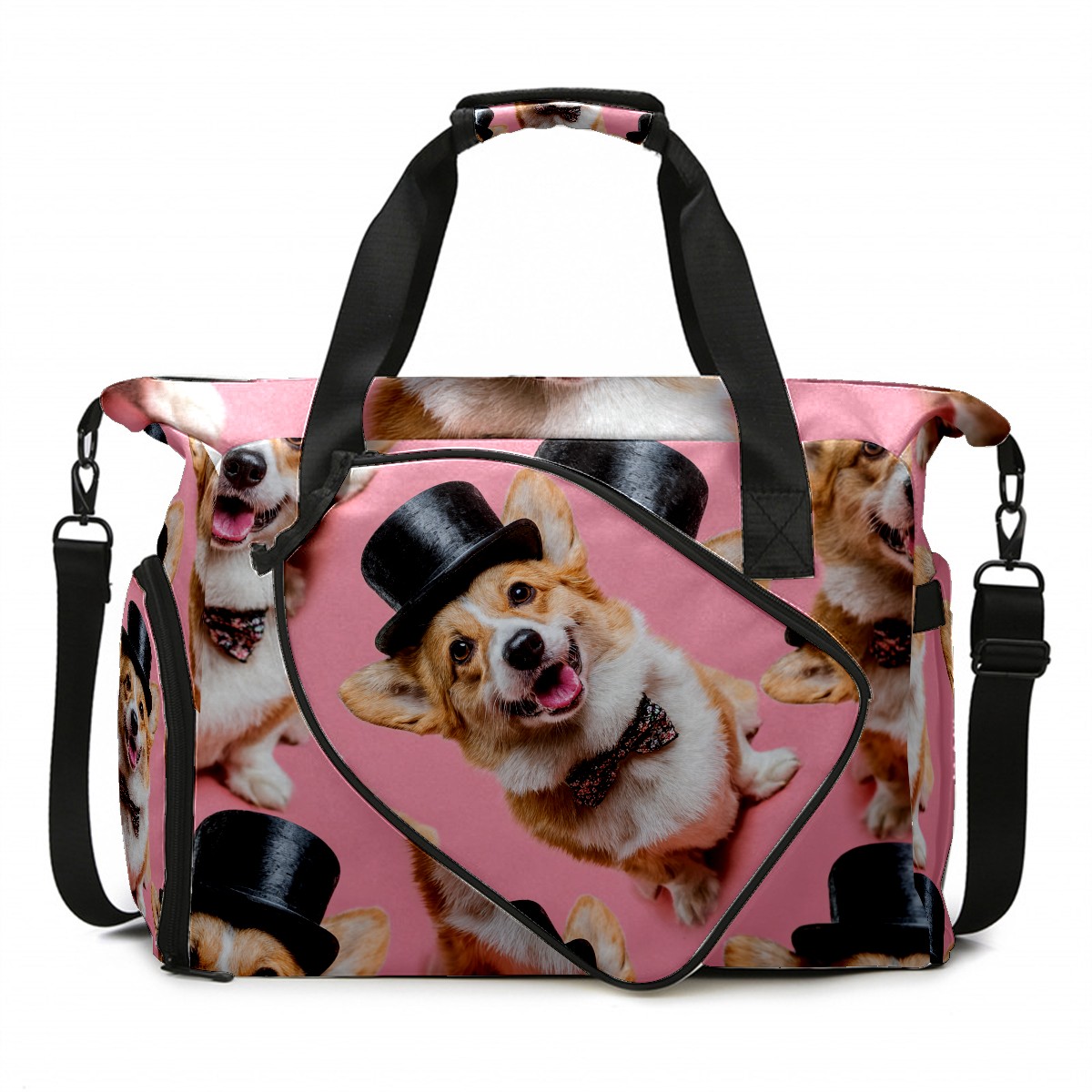 Women's Tennis Bag Large Capacity - Ventilated Shoe Compartment & Waterproof Wet Pocket, Multi-Functional Gym Duffel Bag for Tennis, Yoga, Travel (Corgi Top Hat Pink)