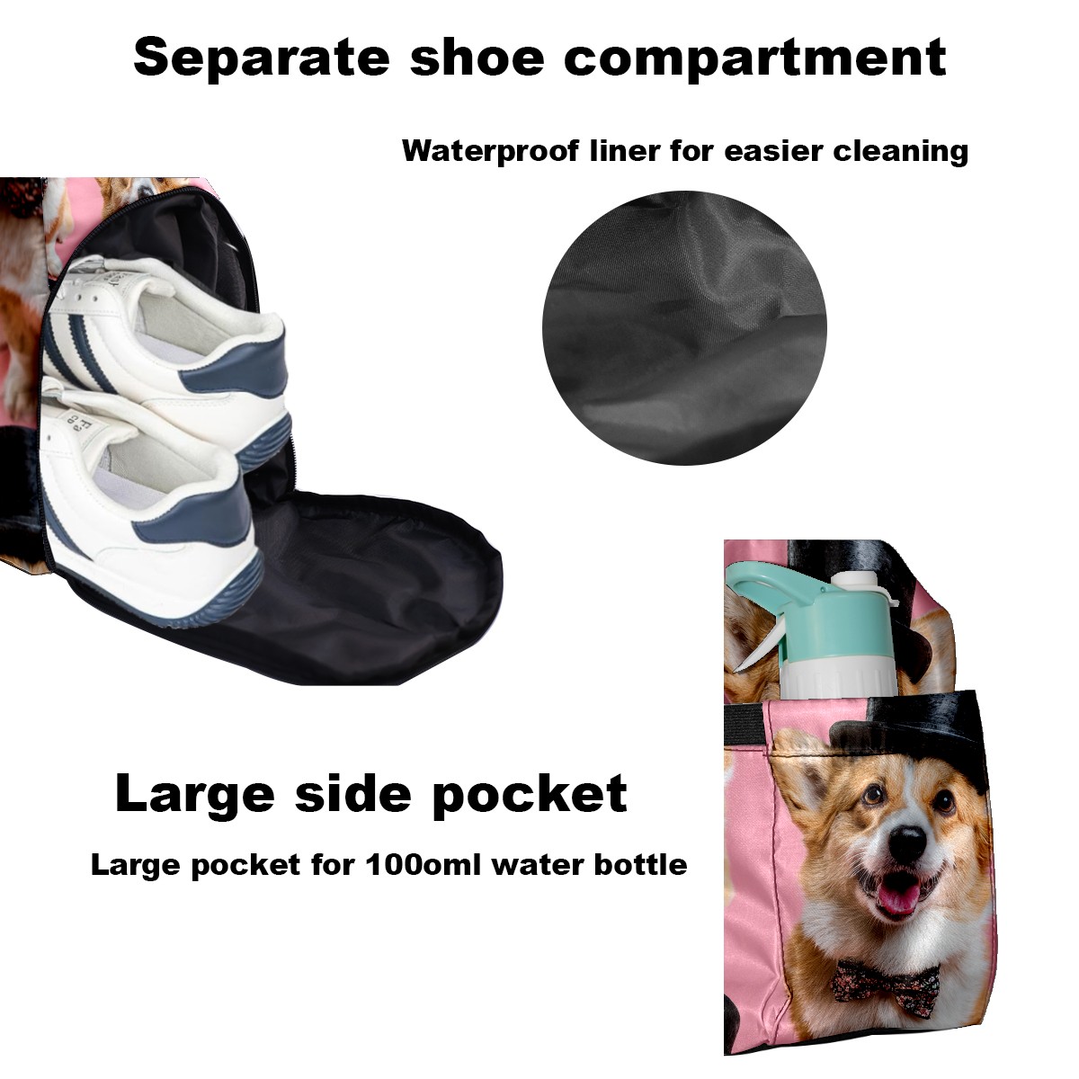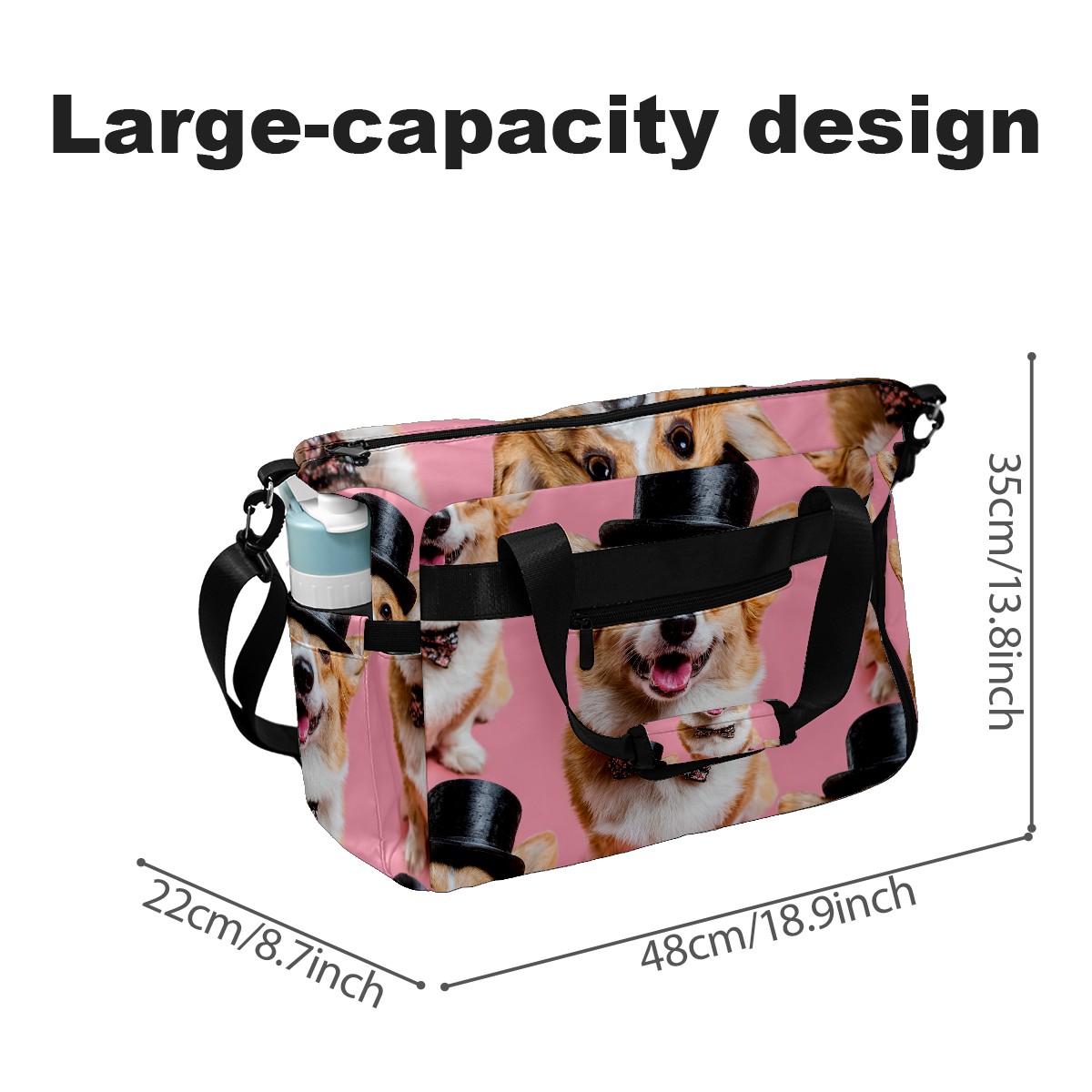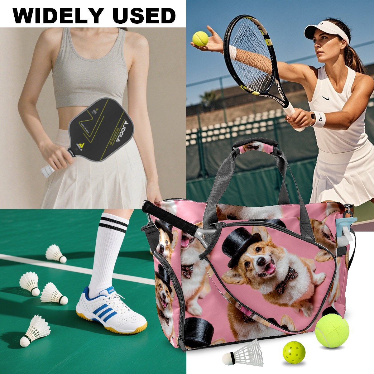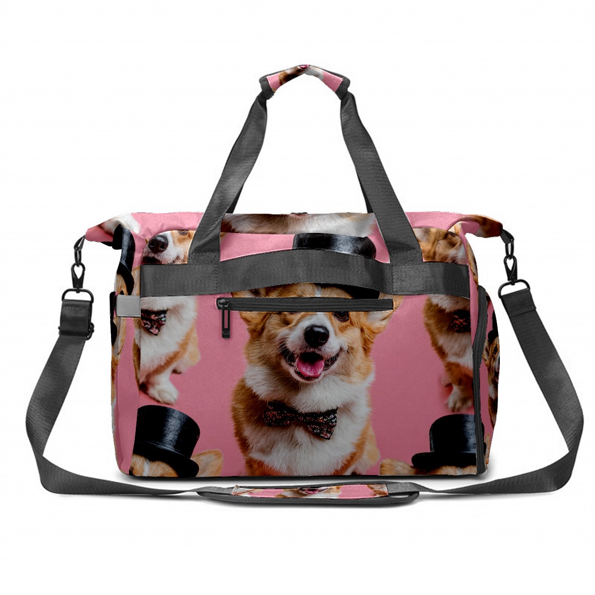 Women's Tennis Bag Large Capacity - Ventilated Shoe Compartment & Waterproof Wet Pocket, Multi-Functional Gym Duffel Bag for Tennis, Yoga, Travel (Corgi Top Hat Pink)