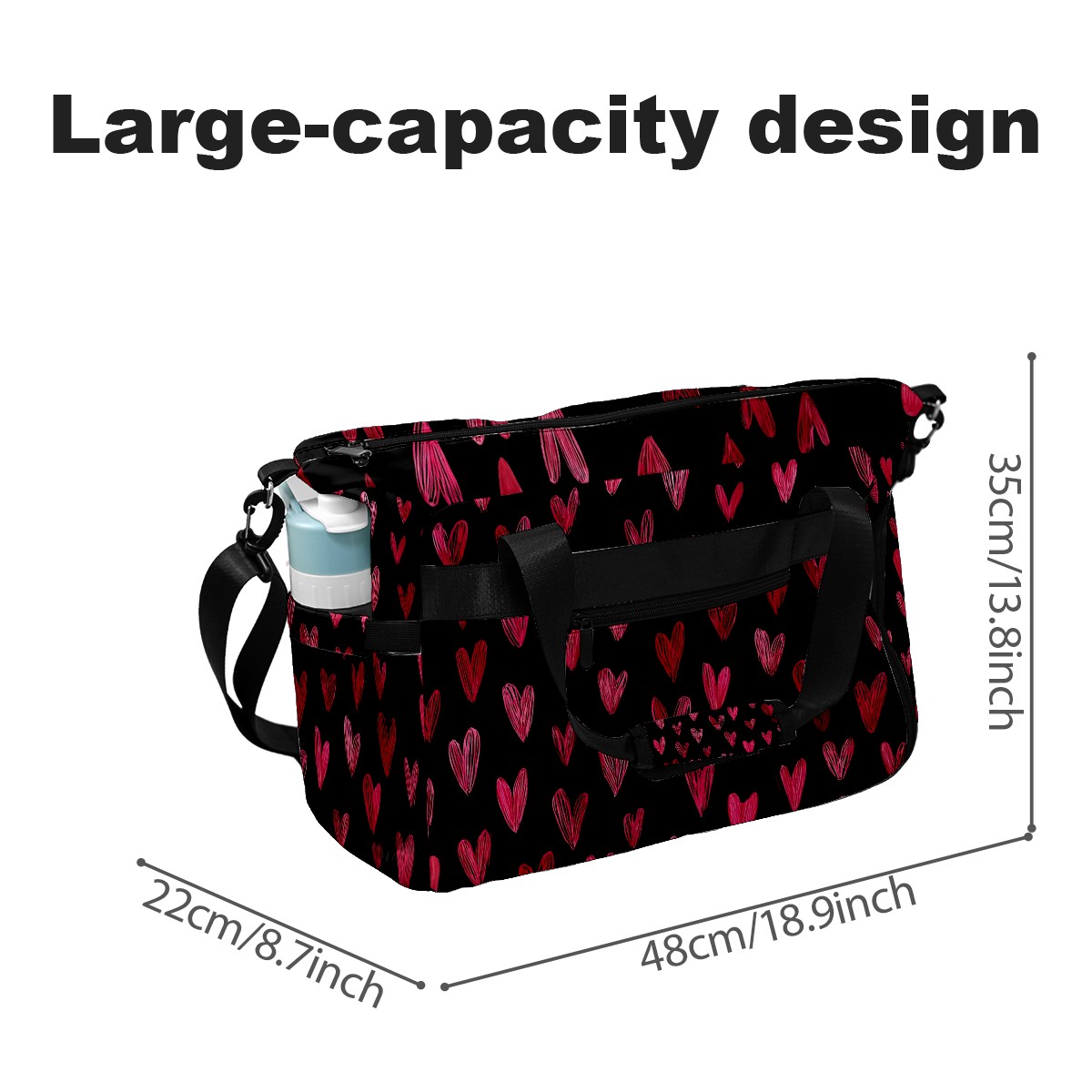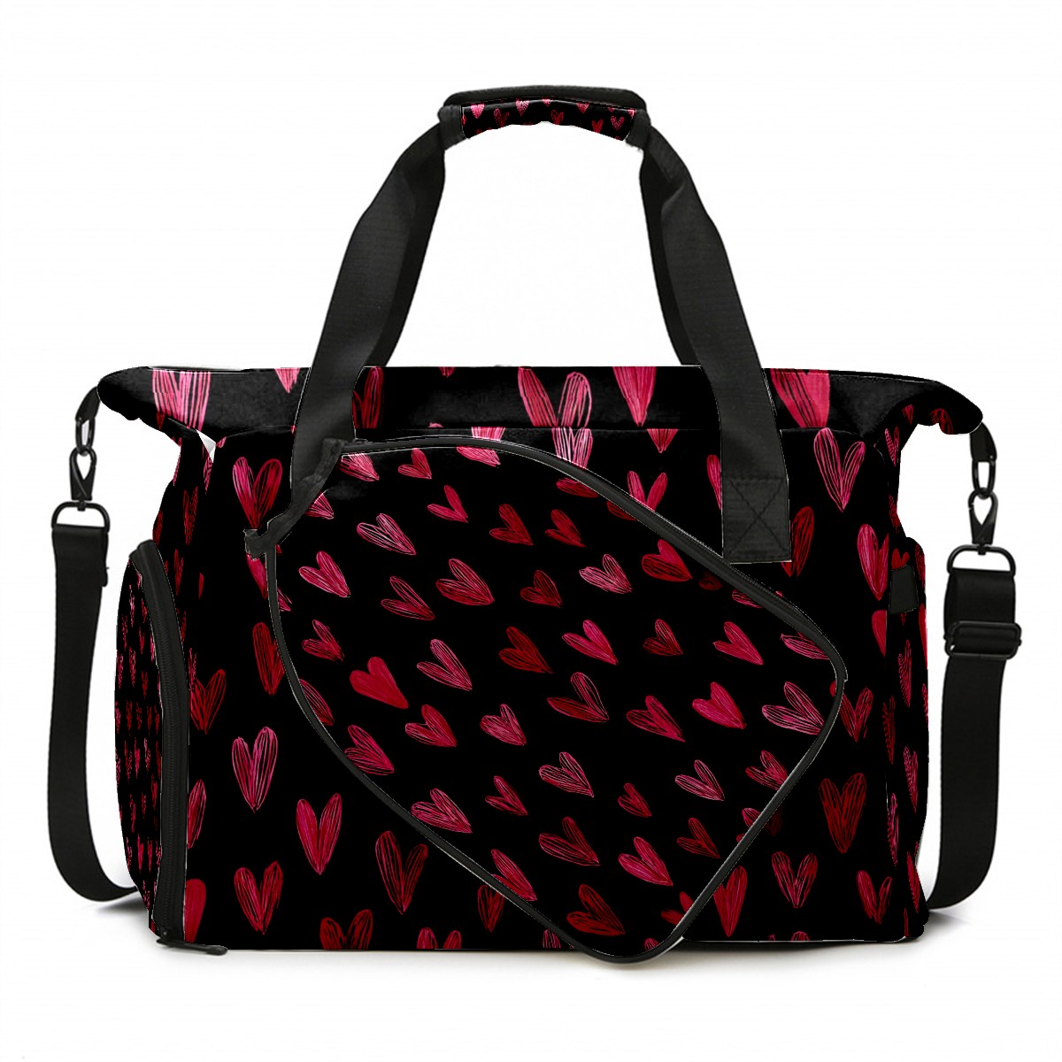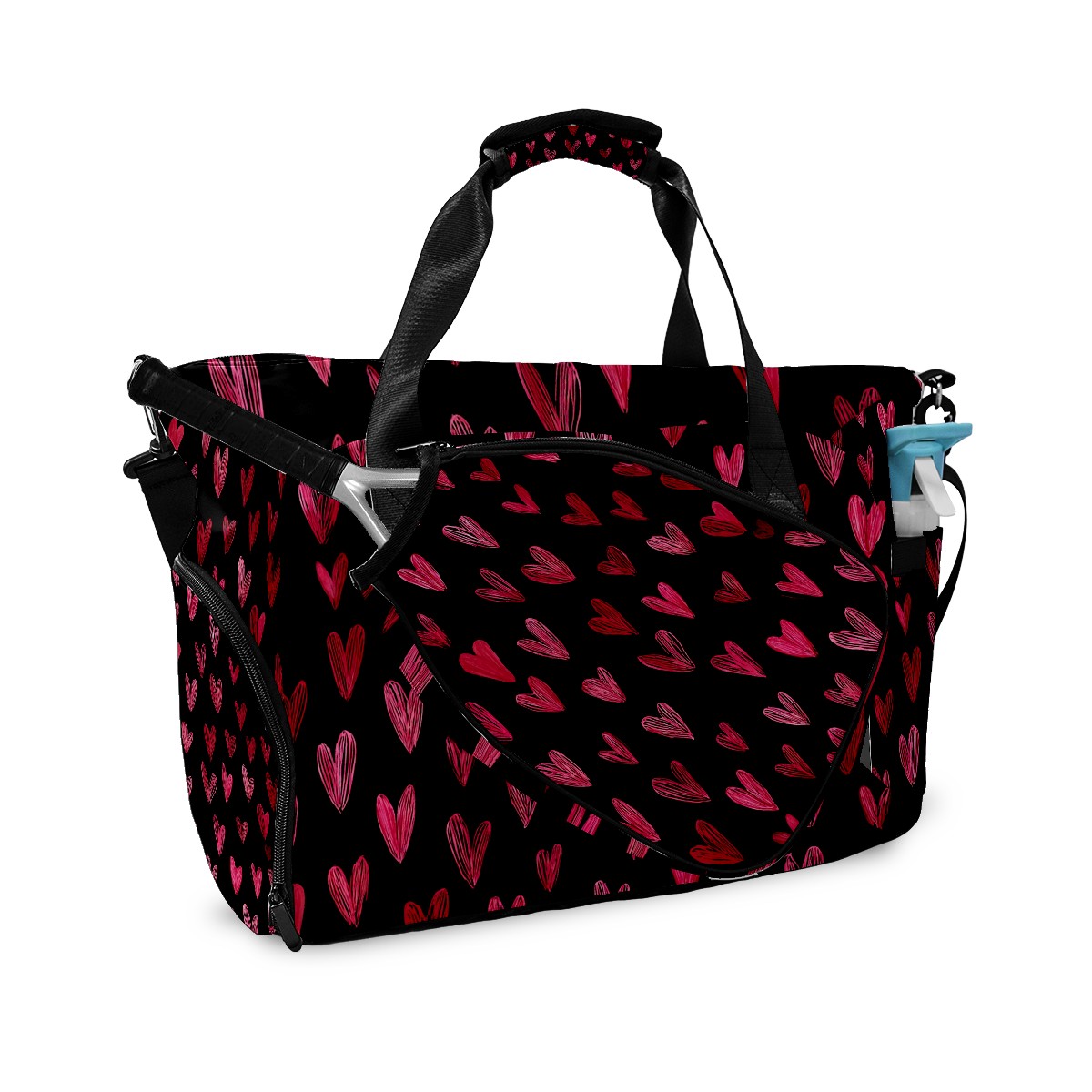 Women's Tennis Bag Large Capacity - Ventilated Shoe Compartment & Waterproof Wet Pocket, Multi-Functional Gym Duffel Bag for Tennis, Yoga, Travel (Red Heart Black)