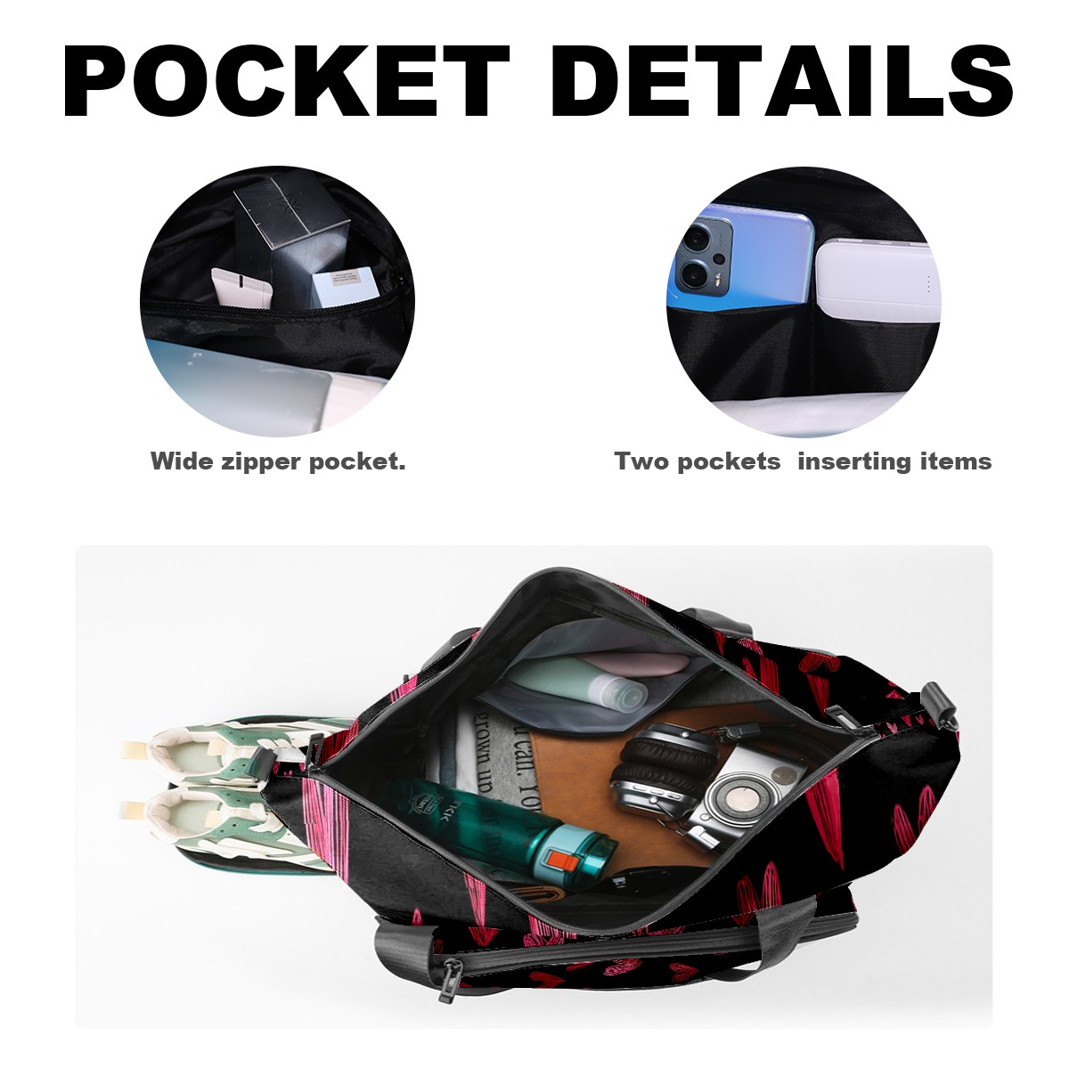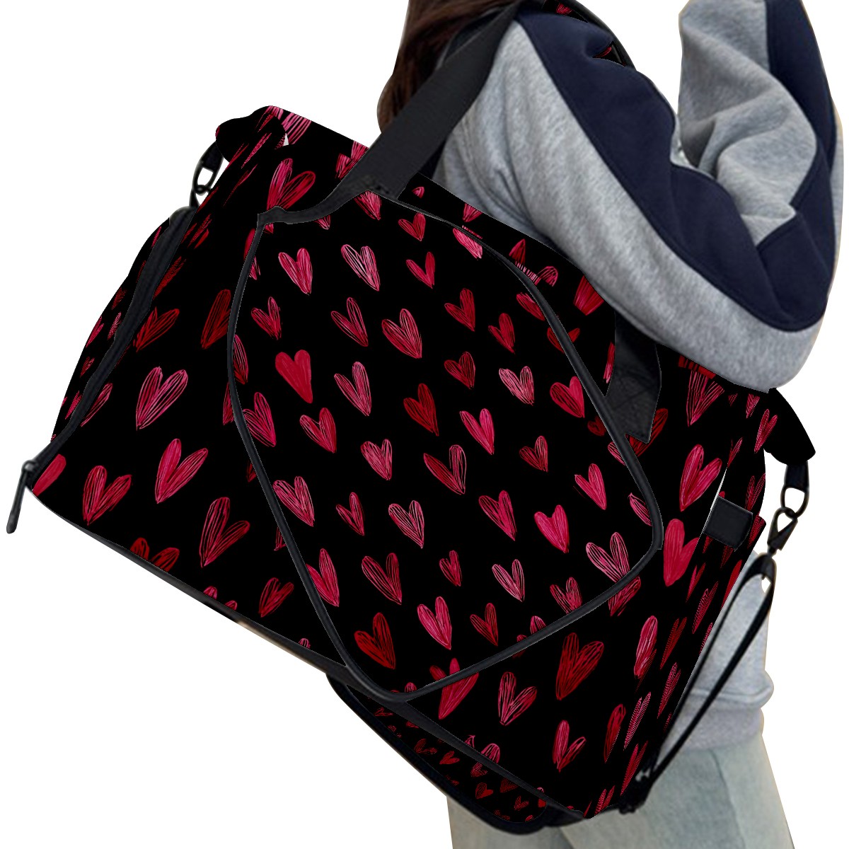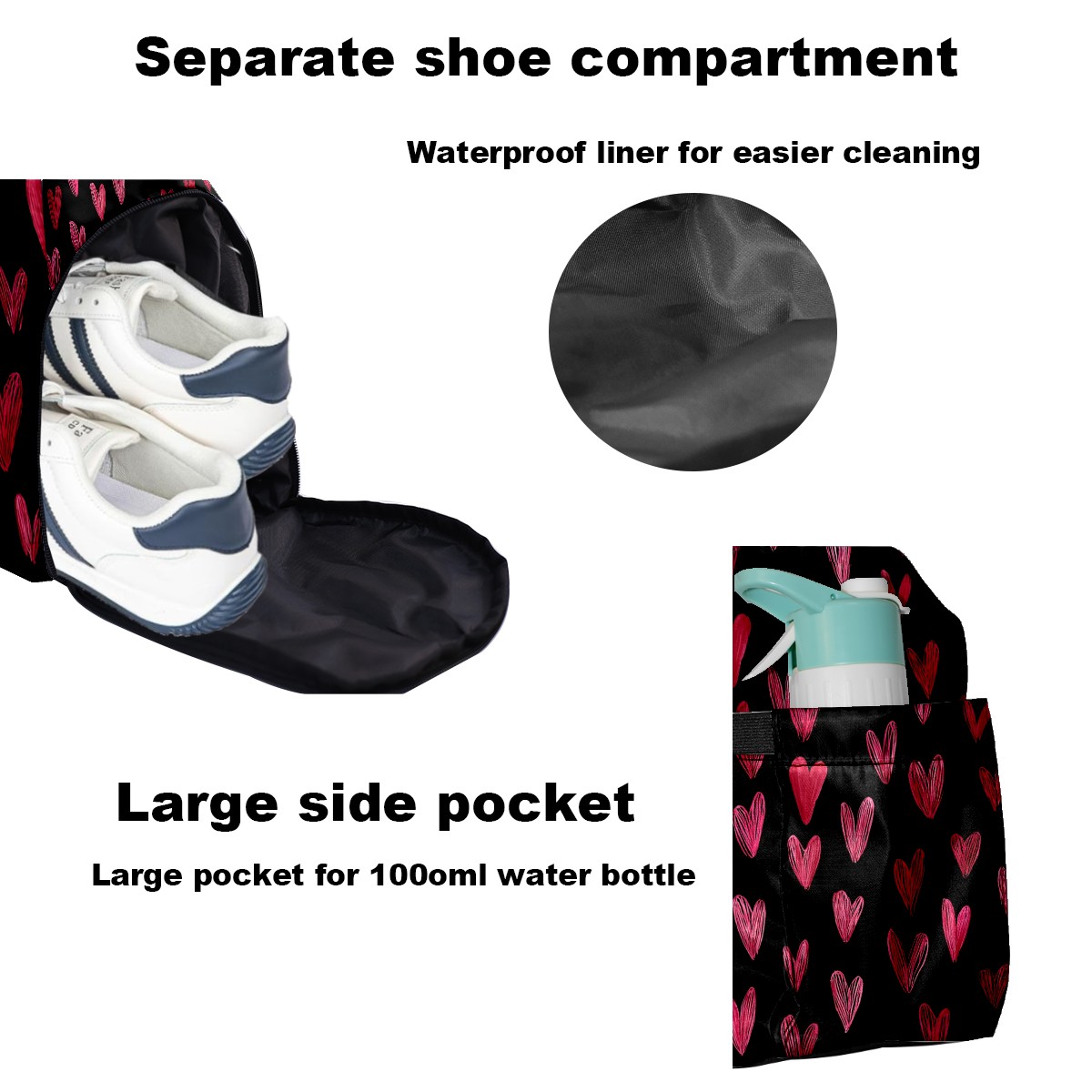 Women's Tennis Bag Large Capacity - Ventilated Shoe Compartment & Waterproof Wet Pocket, Multi-Functional Gym Duffel Bag for Tennis, Yoga, Travel (Red Heart Black)