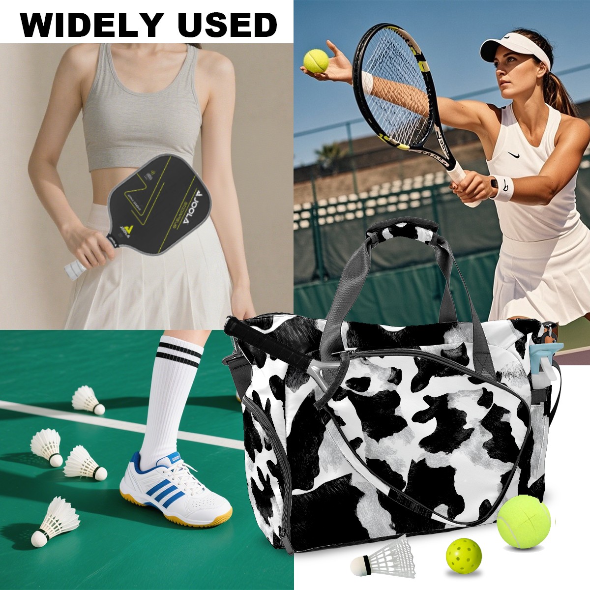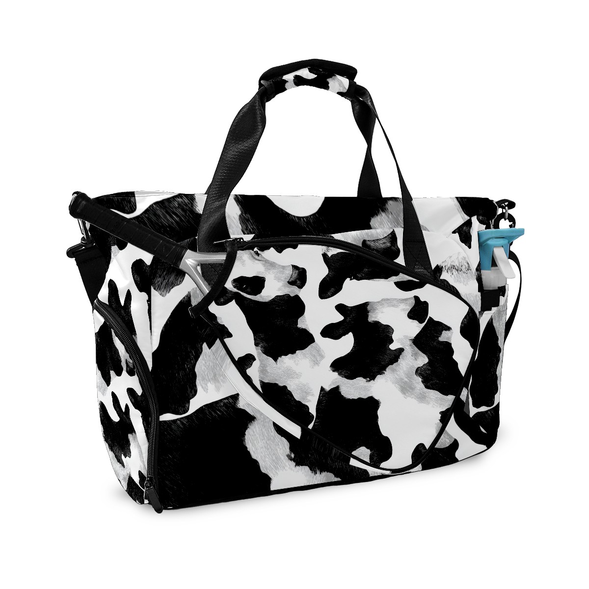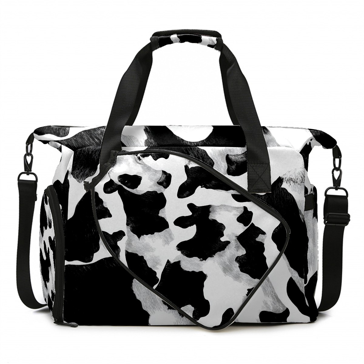 Women's Tennis Bag Large Capacity - Ventilated Shoe Compartment & Waterproof Wet Pocket, Multi-Functional Gym Duffel Bag for Tennis, Yoga, Travel (Trendy Cow Black)