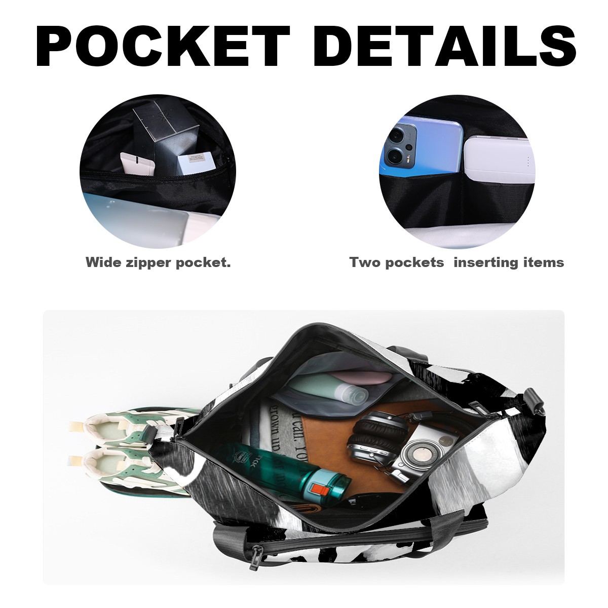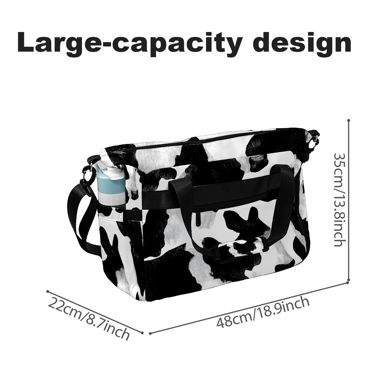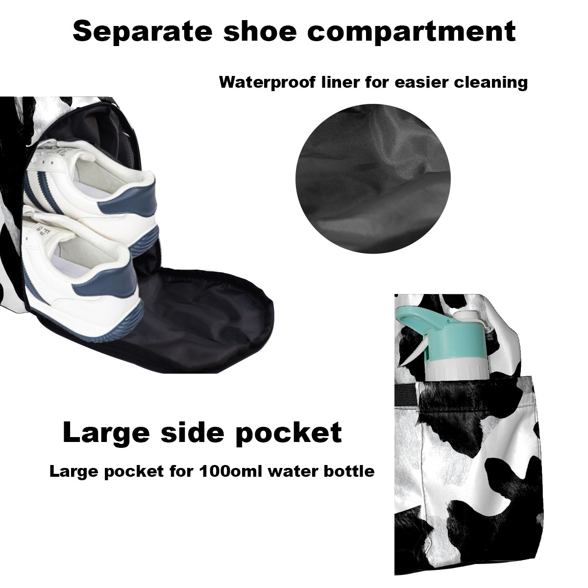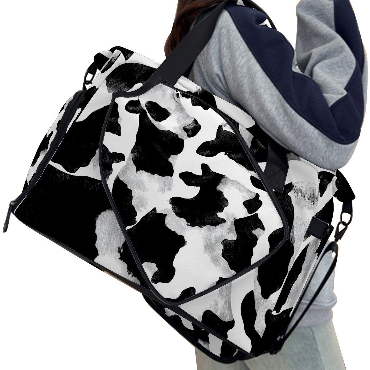 Women's Tennis Bag Large Capacity - Ventilated Shoe Compartment & Waterproof Wet Pocket, Multi-Functional Gym Duffel Bag for Tennis, Yoga, Travel (Trendy Cow Black)