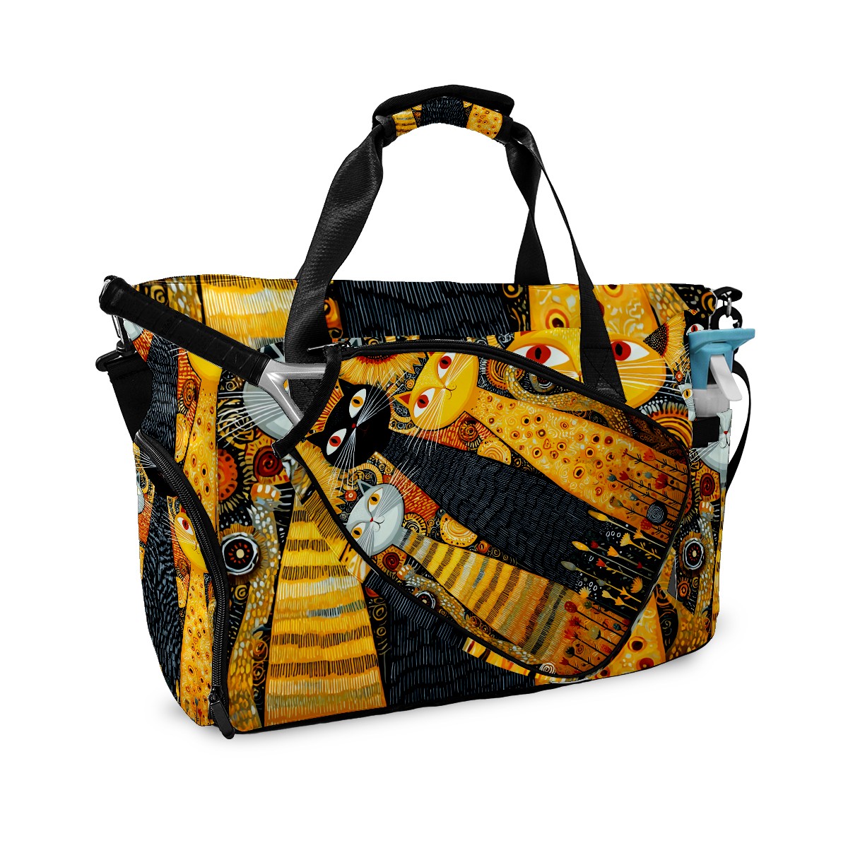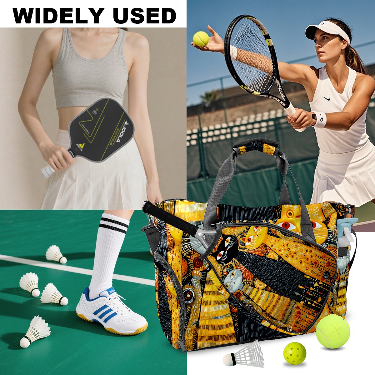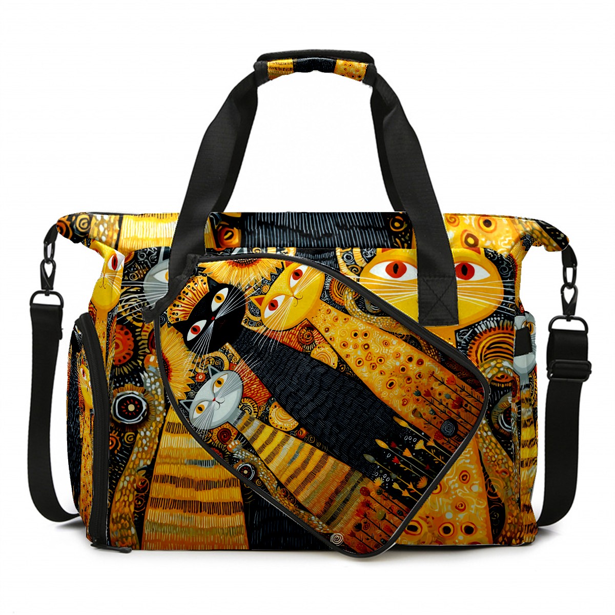 Women's Tennis Bag Large Capacity - Ventilated Shoe Compartment & Waterproof Wet Pocket, Multi-Functional Gym Duffel Bag for Tennis, Yoga, Travel (Cat Sunflower Yellow)