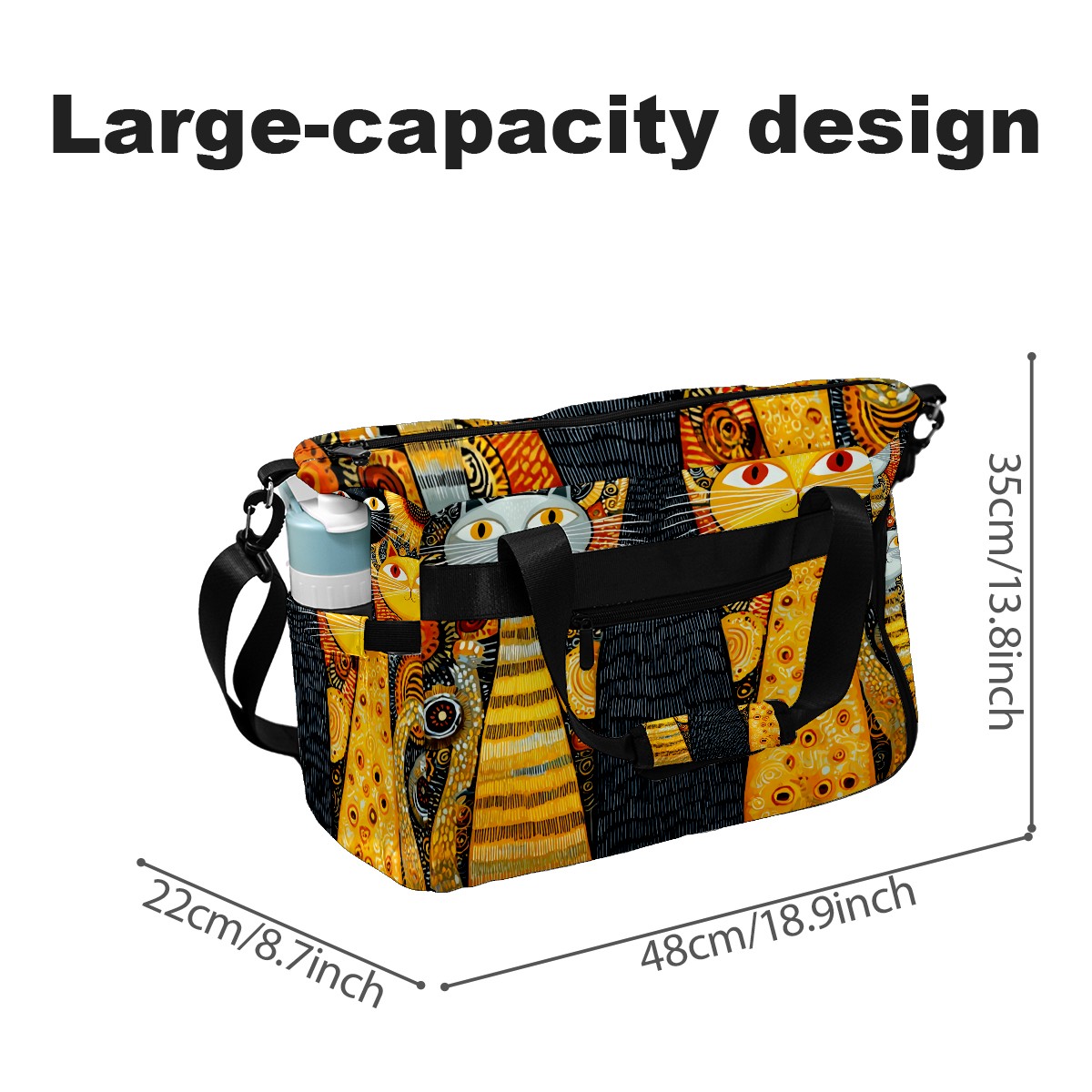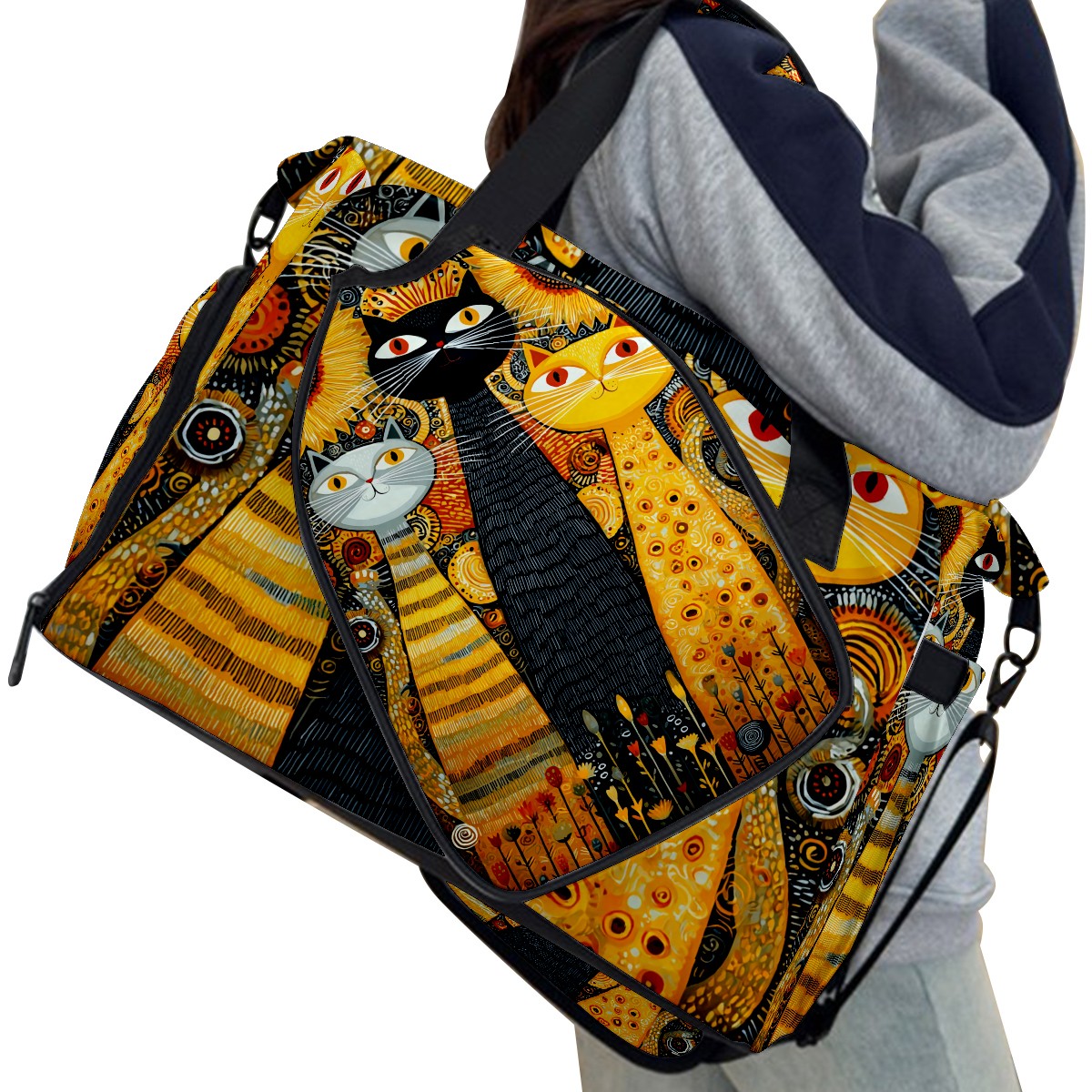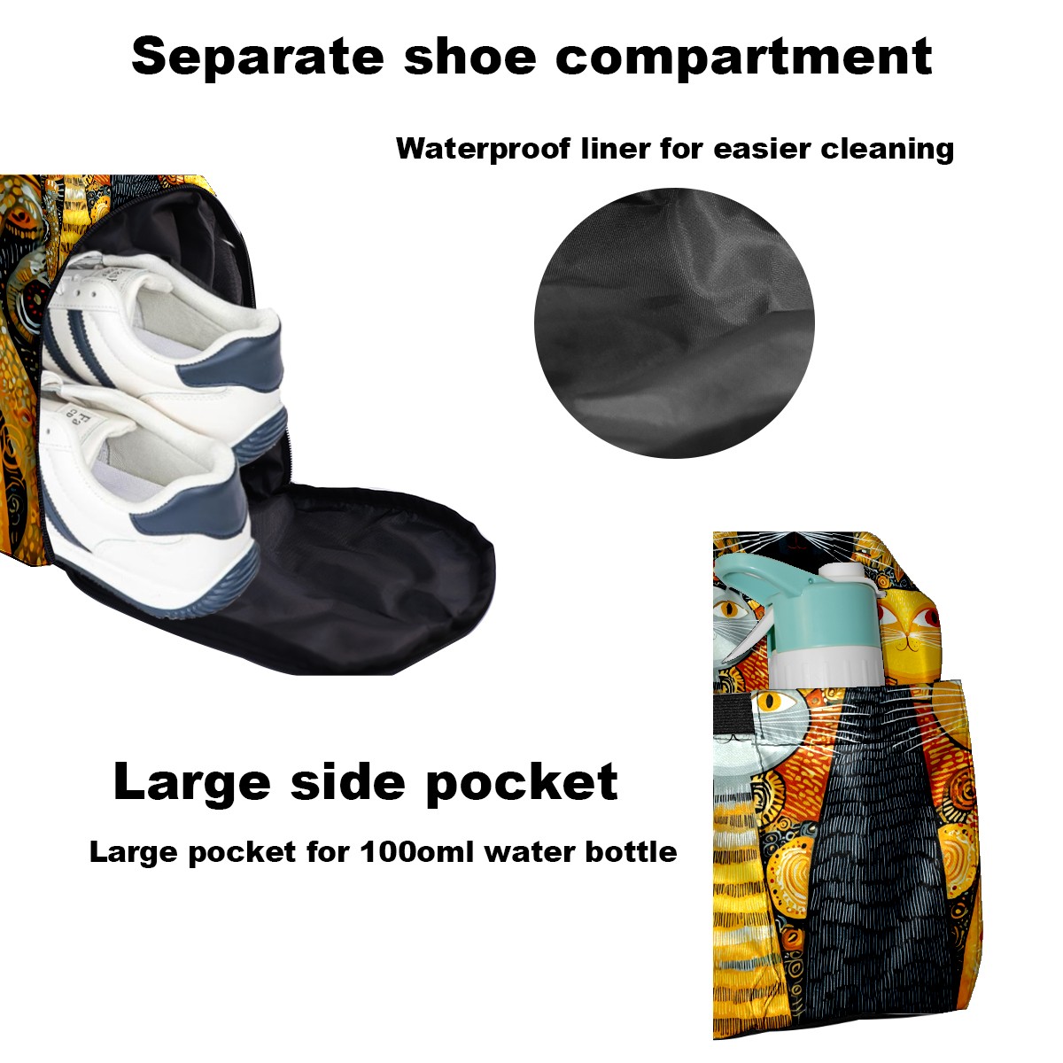 Women's Tennis Bag Large Capacity - Ventilated Shoe Compartment & Waterproof Wet Pocket, Multi-Functional Gym Duffel Bag for Tennis, Yoga, Travel (Cat Sunflower Yellow)