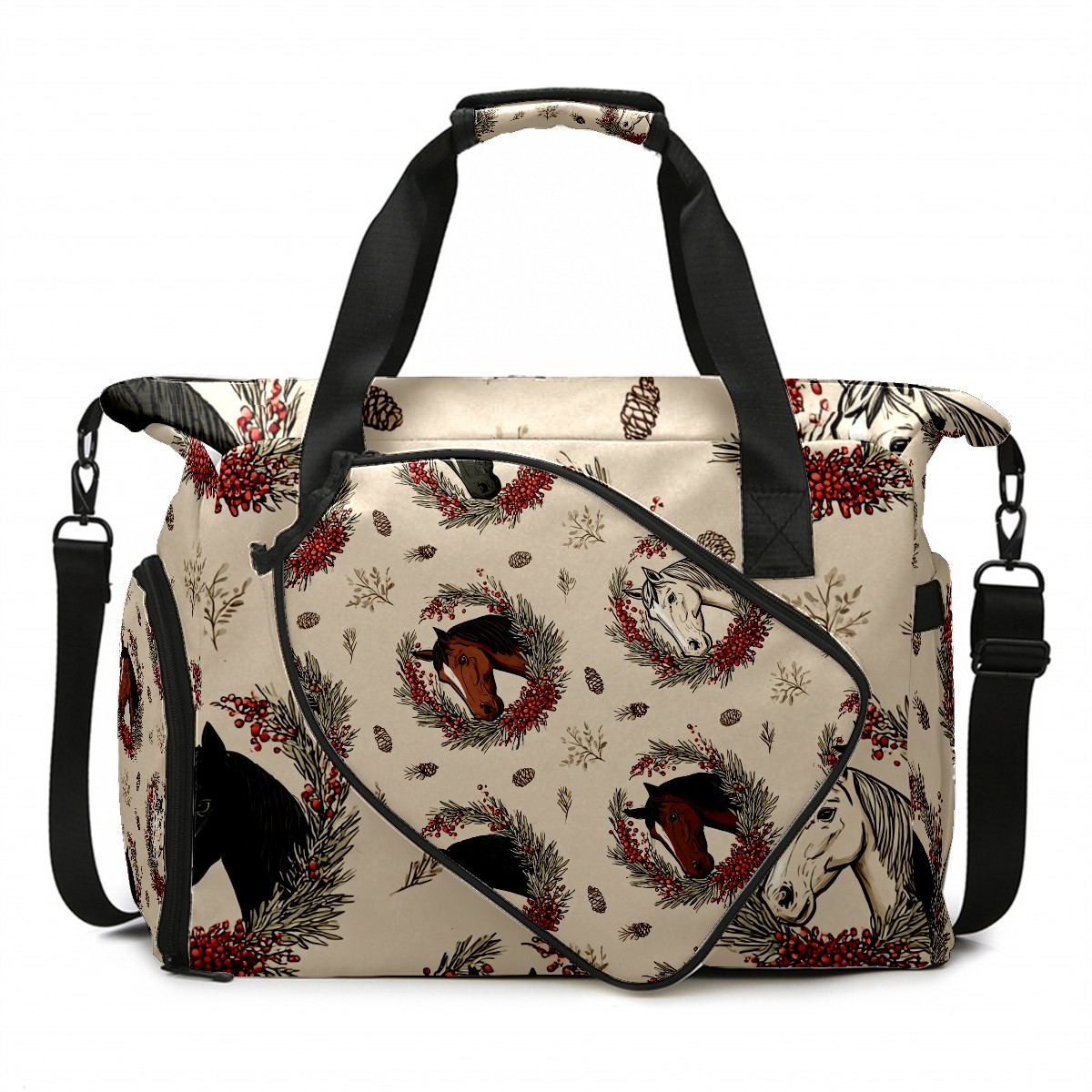 Women's Tennis Bag Large Capacity - Ventilated Shoe Compartment & Waterproof Wet Pocket, Multi-Functional Gym Duffel Bag for Tennis, Yoga, Travel (Vintage Leopard Brown)