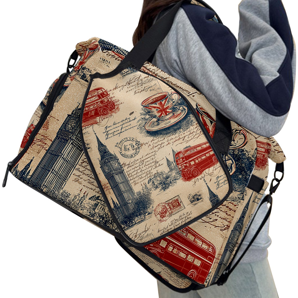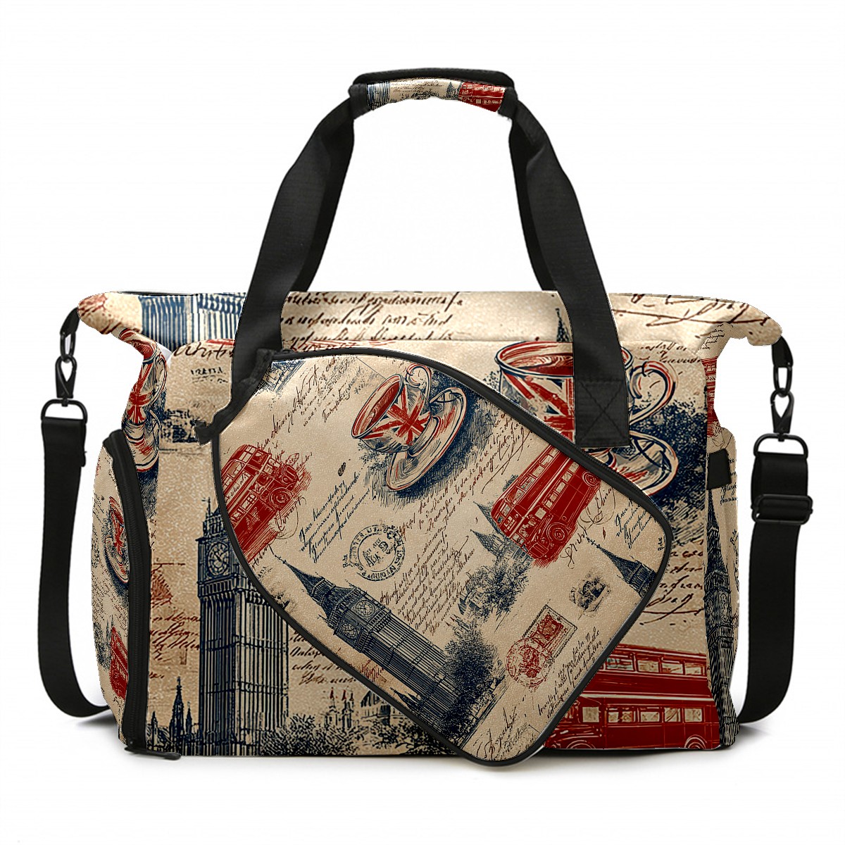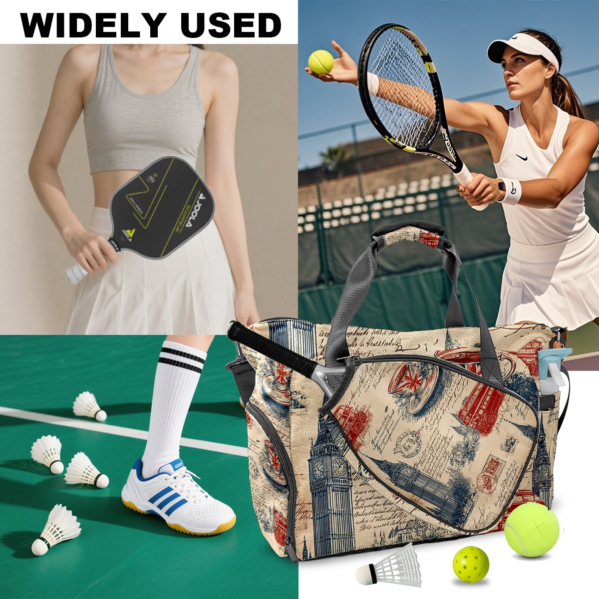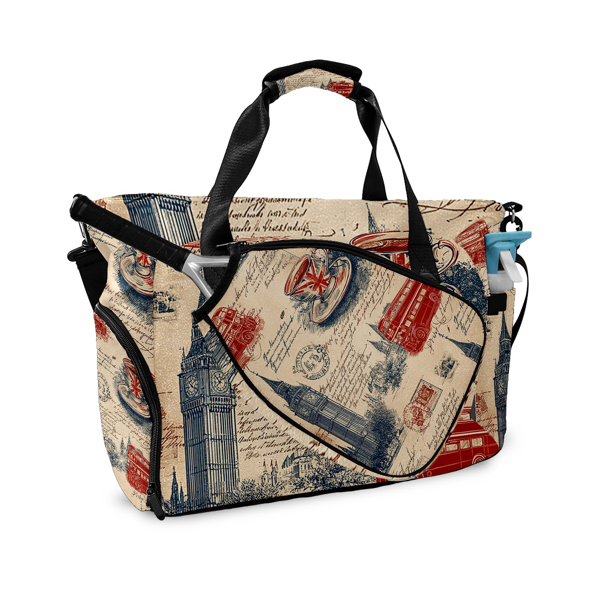 Women's Tennis Bag Large Capacity - Ventilated Shoe Compartment & Waterproof Wet Pocket, Multi-Functional Gym Duffel Bag for Tennis, Yoga, Travel (Vintage Stamp Beige)