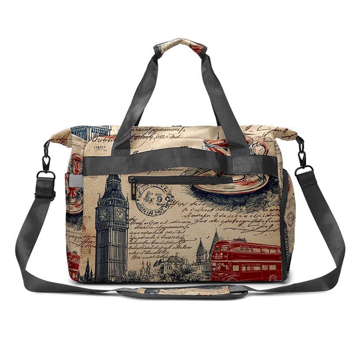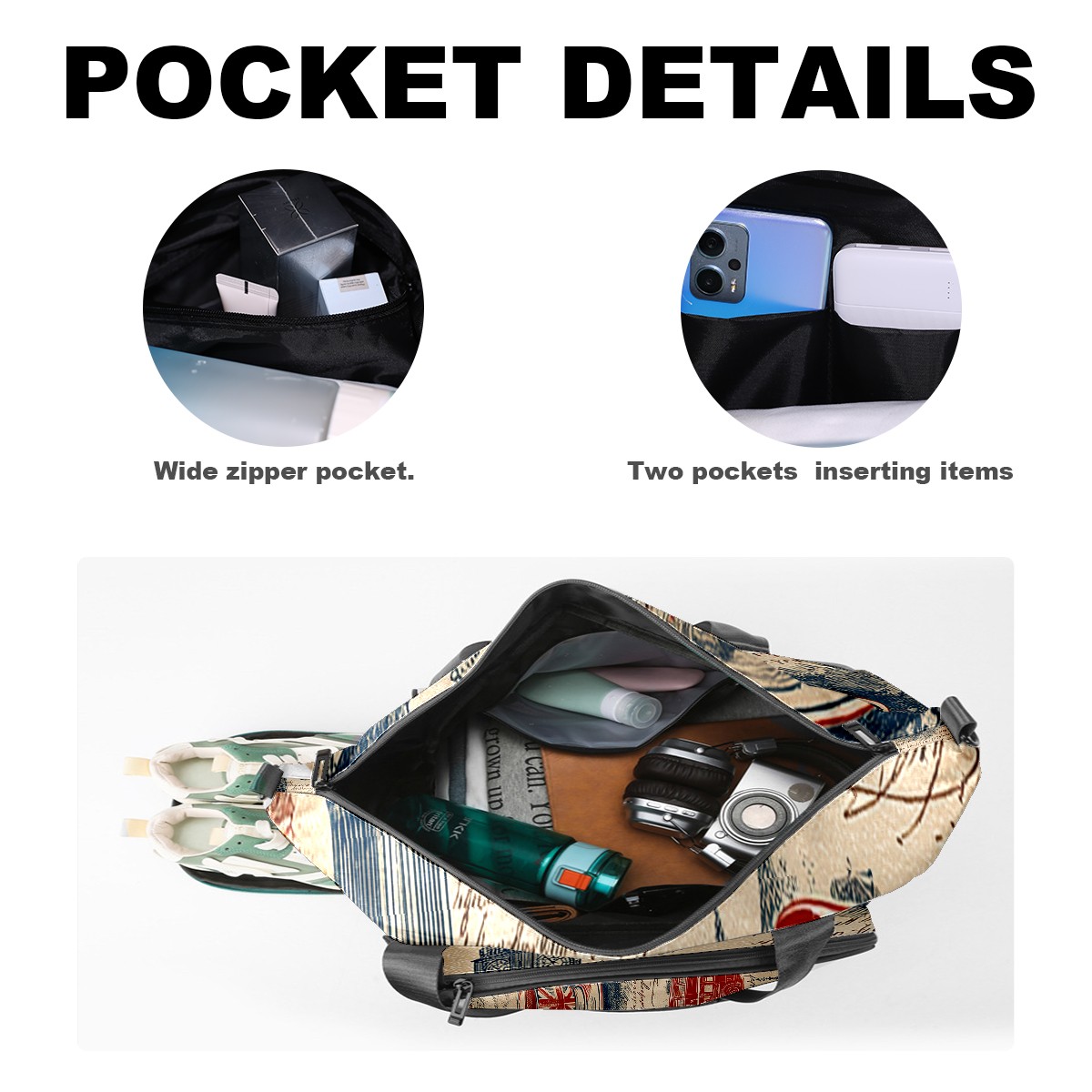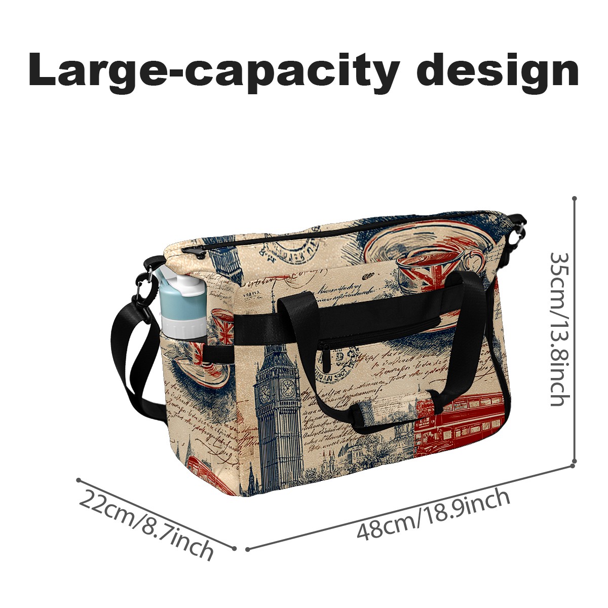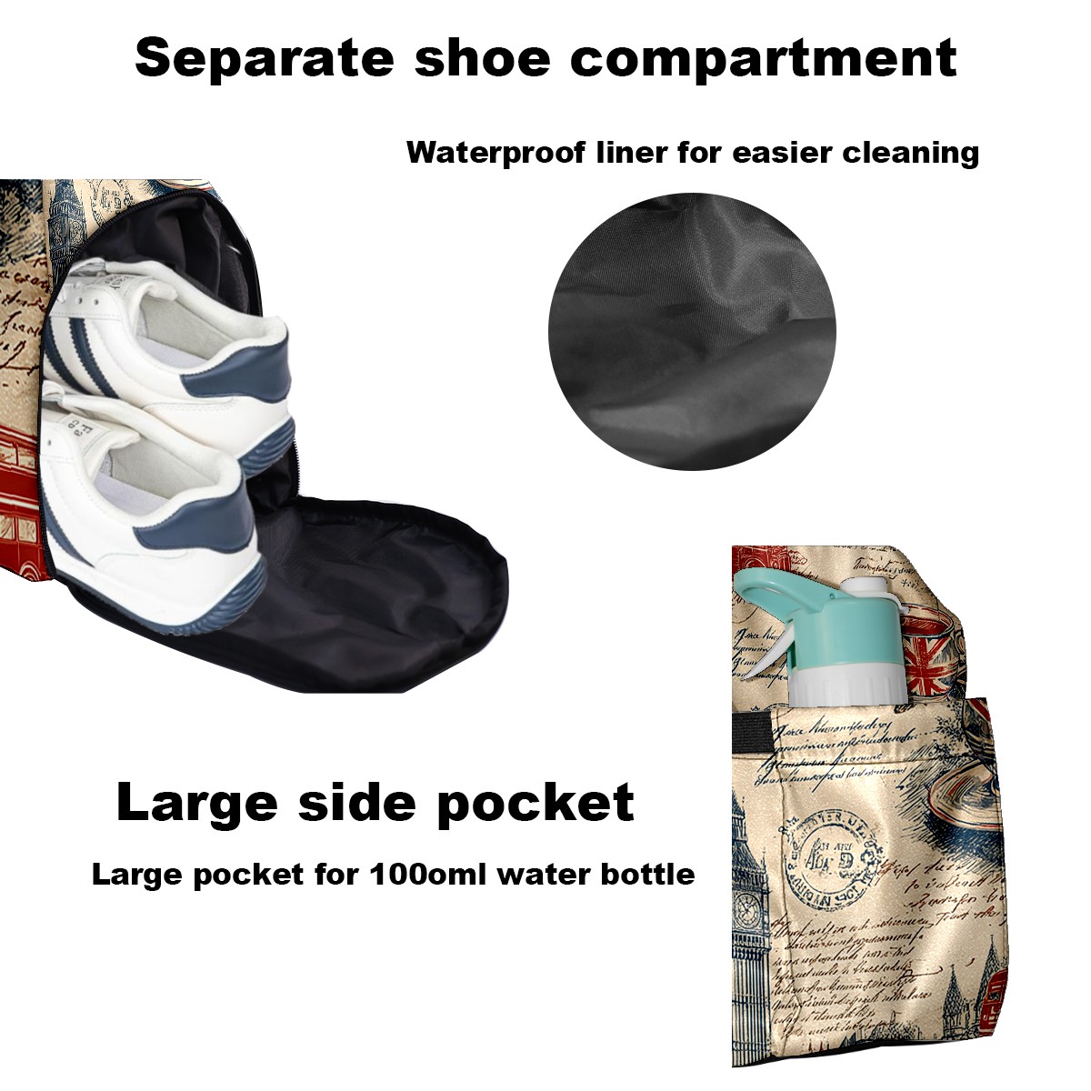Women's Tennis Bag Large Capacity - Ventilated Shoe Compartment & Waterproof Wet Pocket, Multi-Functional Gym Duffel Bag for Tennis, Yoga, Travel (Vintage Stamp Beige)