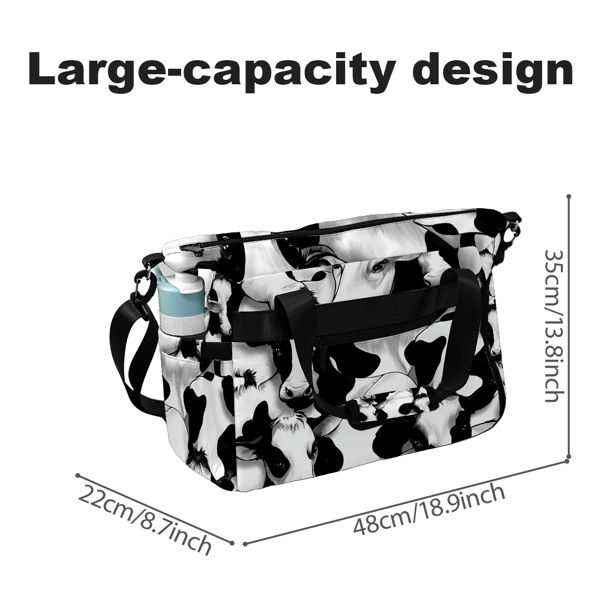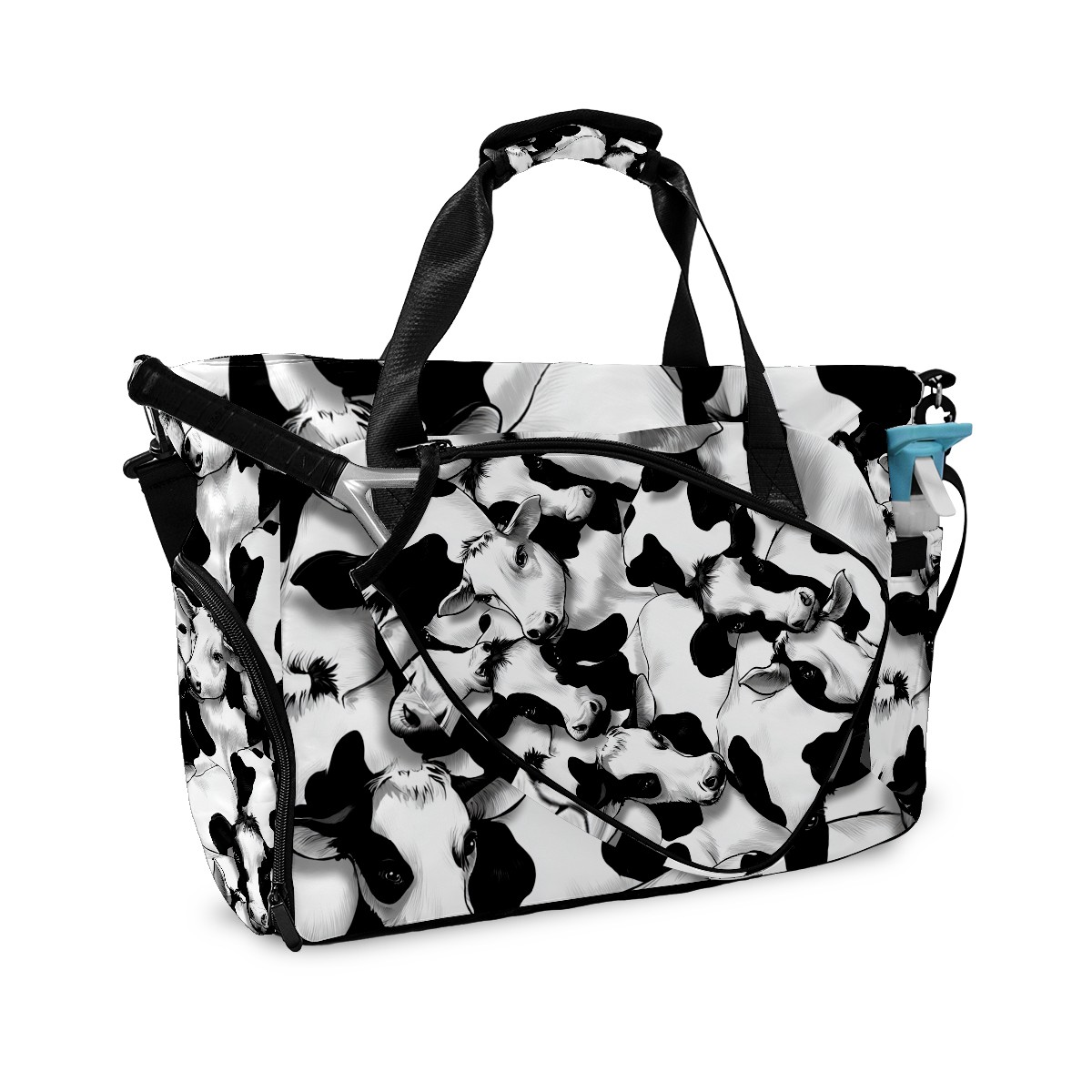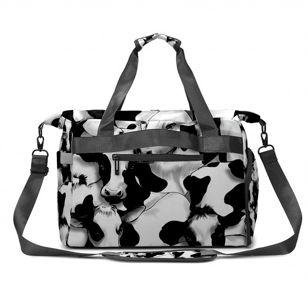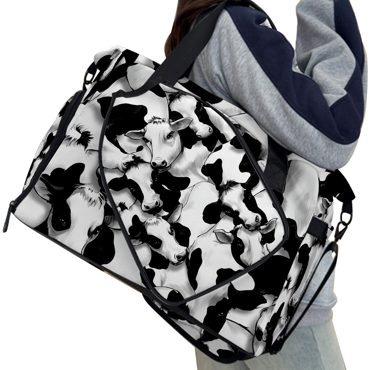 Women's Tennis Bag Large Capacity - Ventilated Shoe Compartment & Waterproof Wet Pocket, Multi-Functional Gym Duffel Bag for Tennis, Yoga, Travel (Trendy Black White Cow)