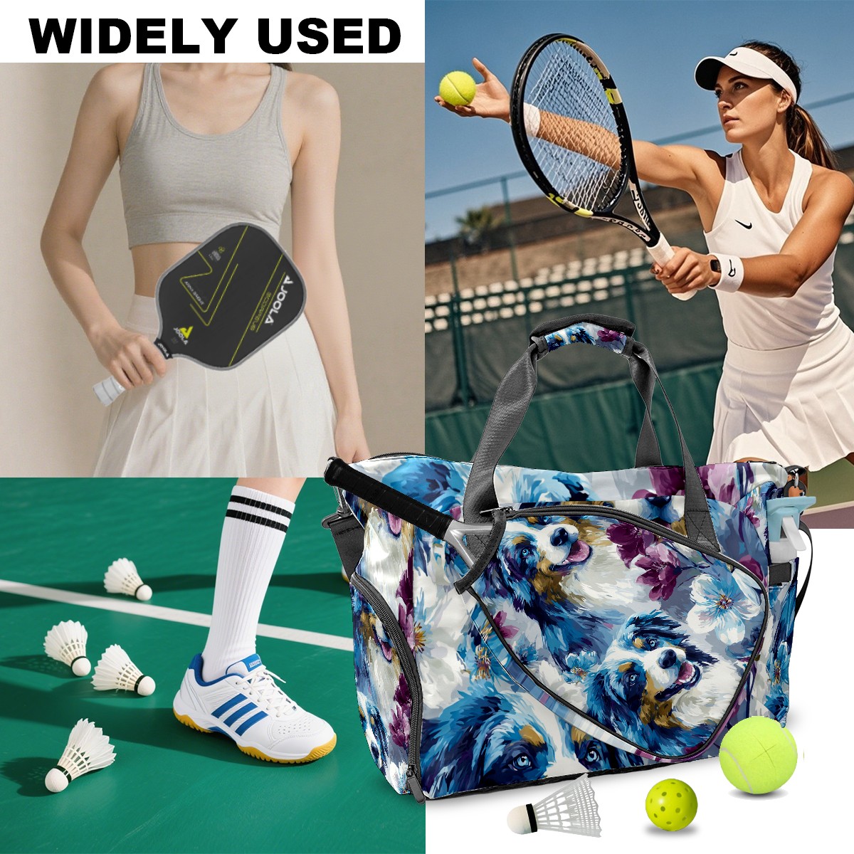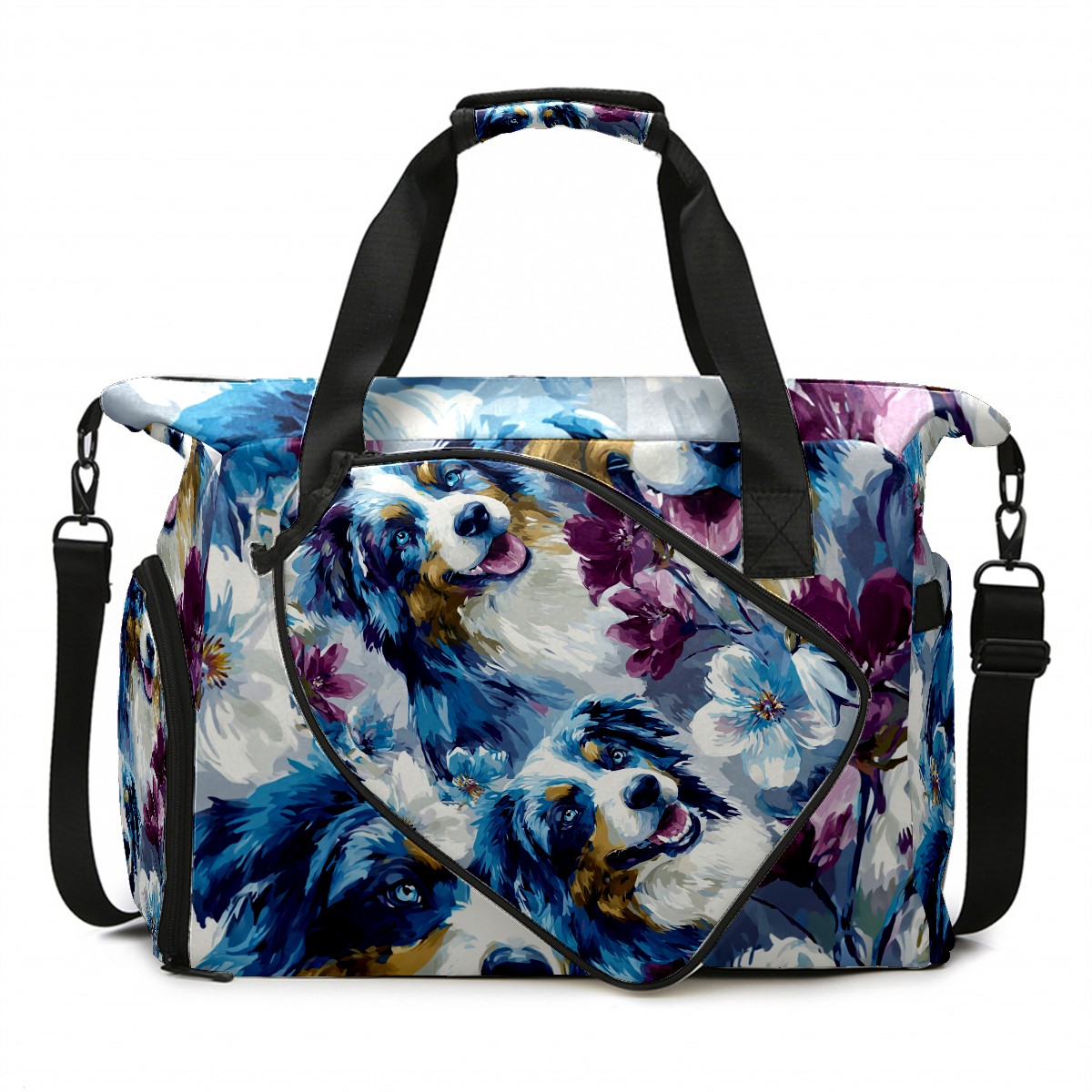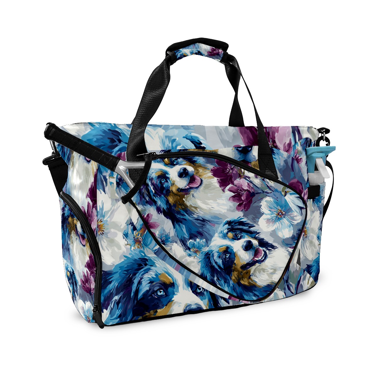 Women's Tennis Bag Large Capacity - Ventilated Shoe Compartment & Waterproof Wet Pocket, Multi-Functional Gym Duffel Bag for Tennis, Yoga, Travel (Playful Blue Dog)