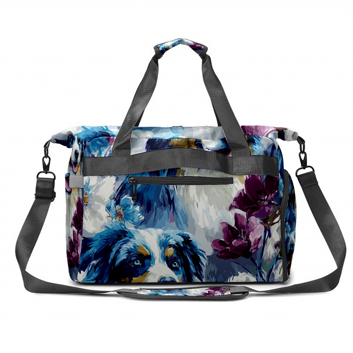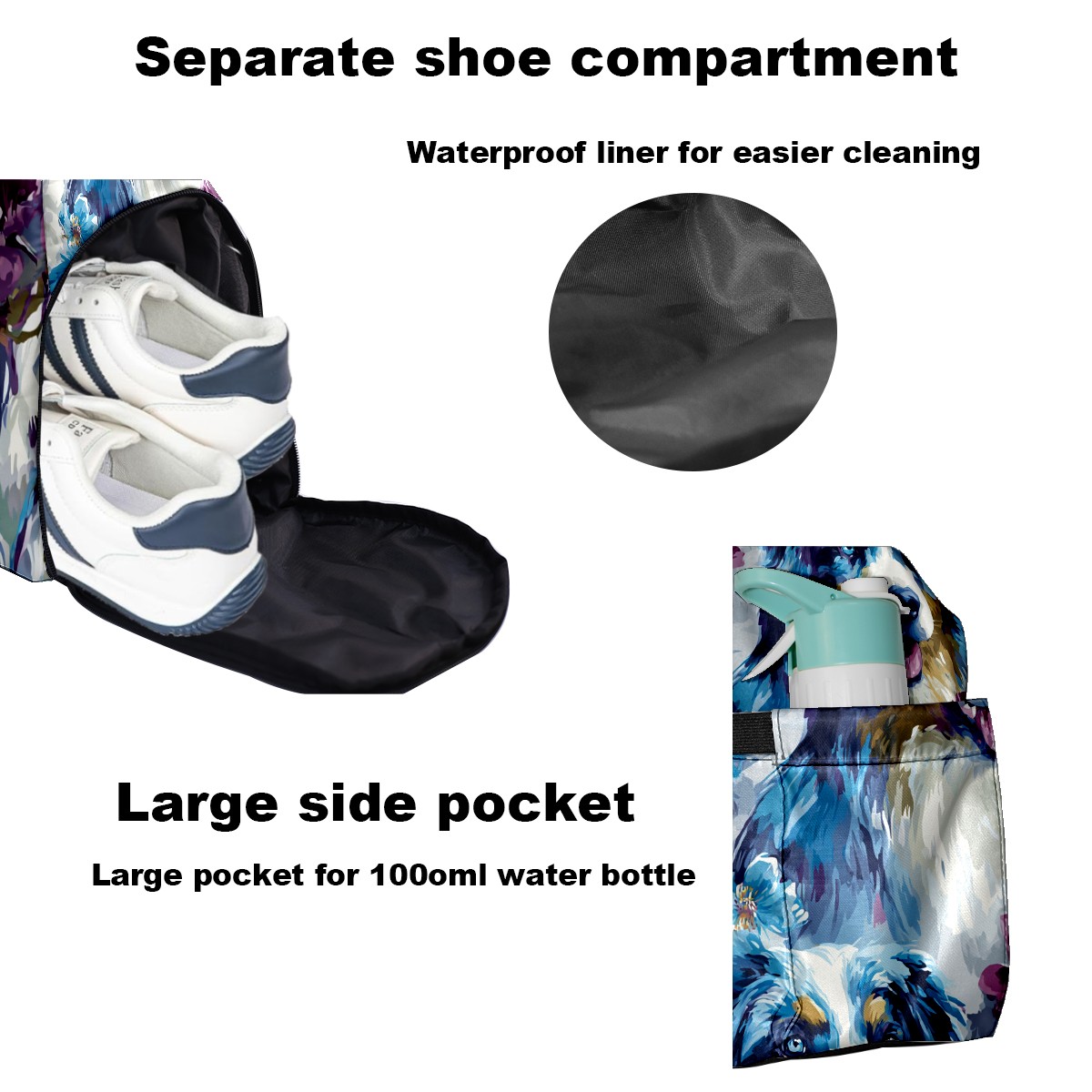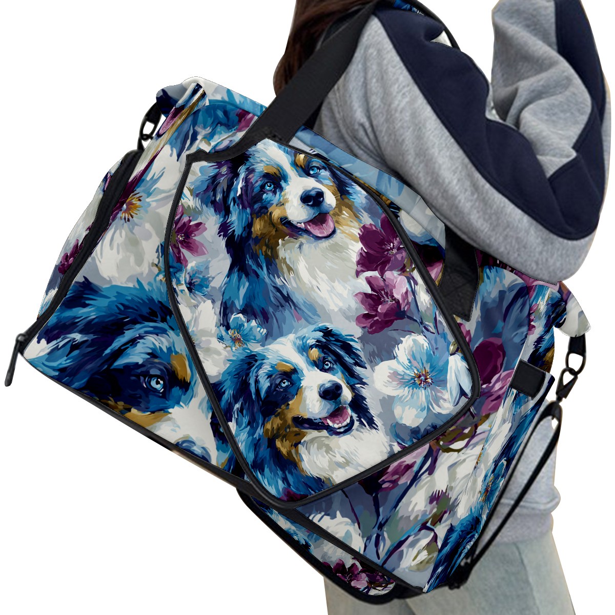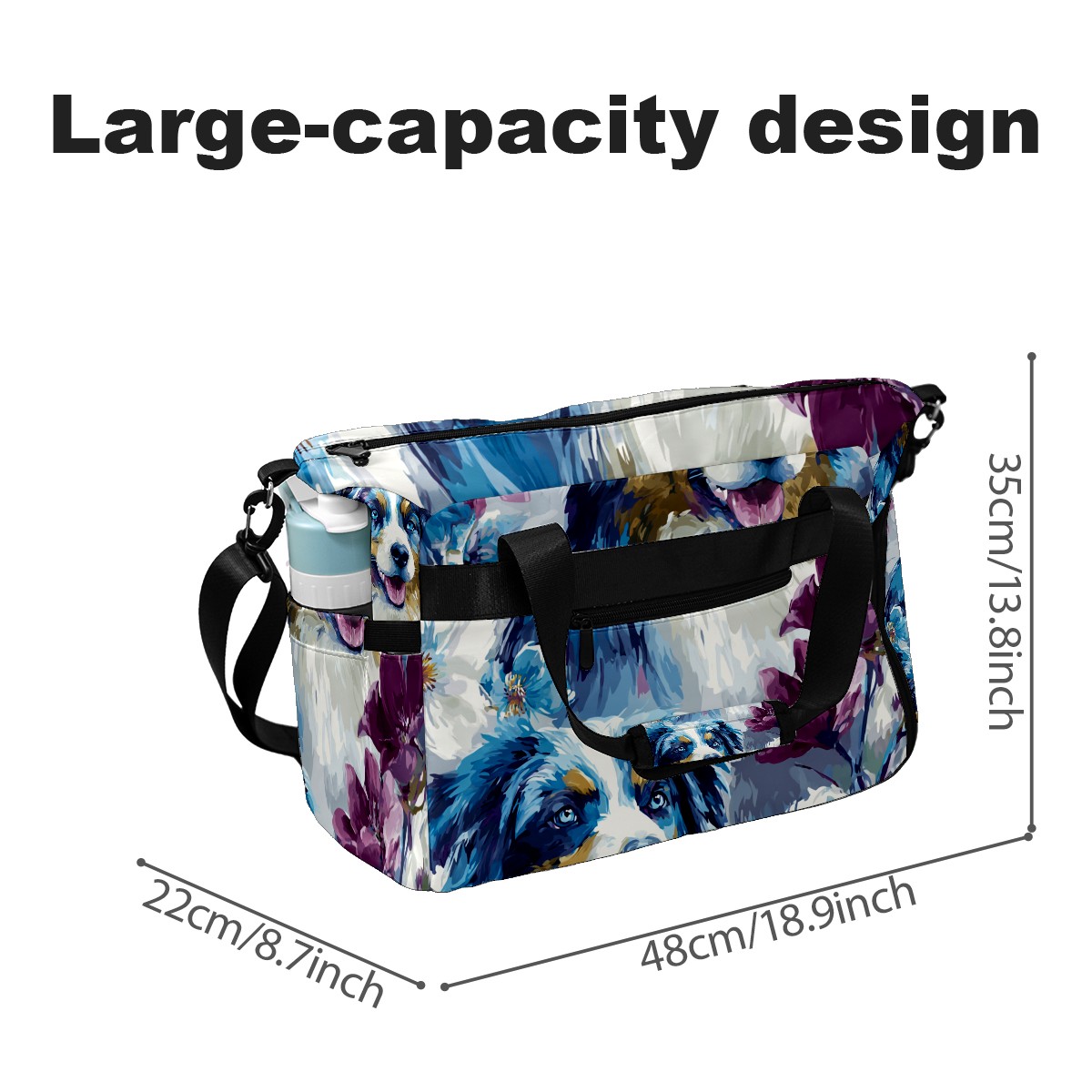 Women's Tennis Bag Large Capacity - Ventilated Shoe Compartment & Waterproof Wet Pocket, Multi-Functional Gym Duffel Bag for Tennis, Yoga, Travel (Playful Blue Dog)