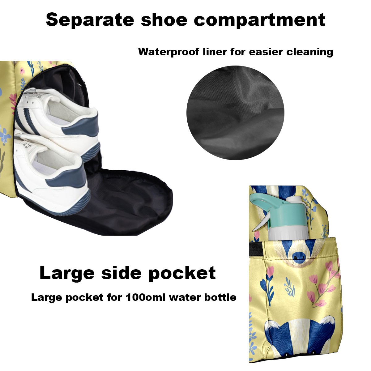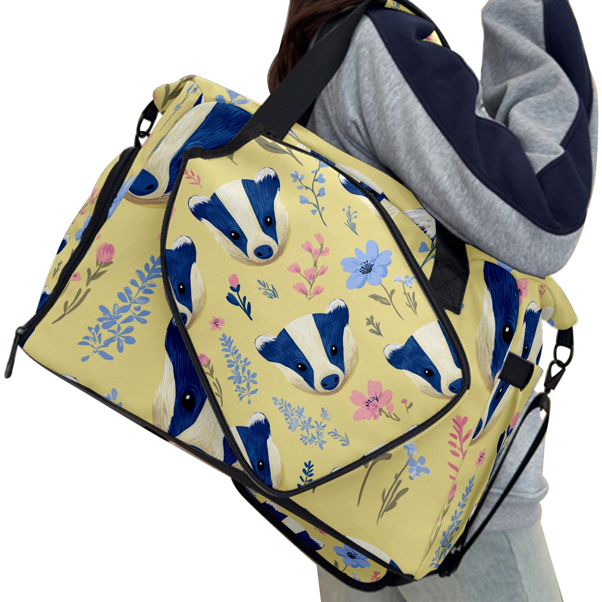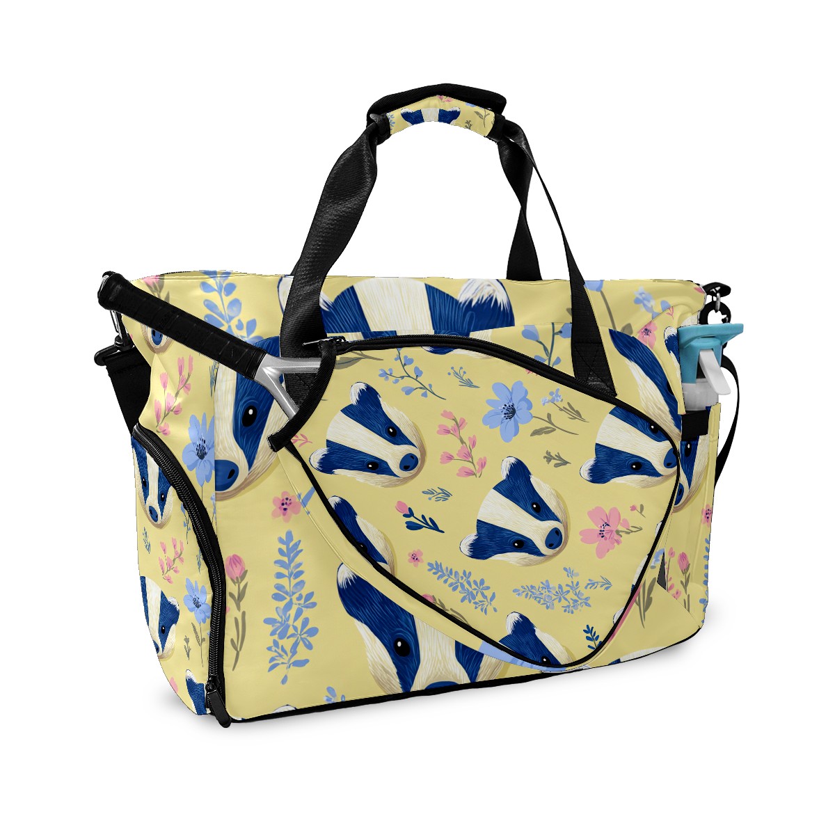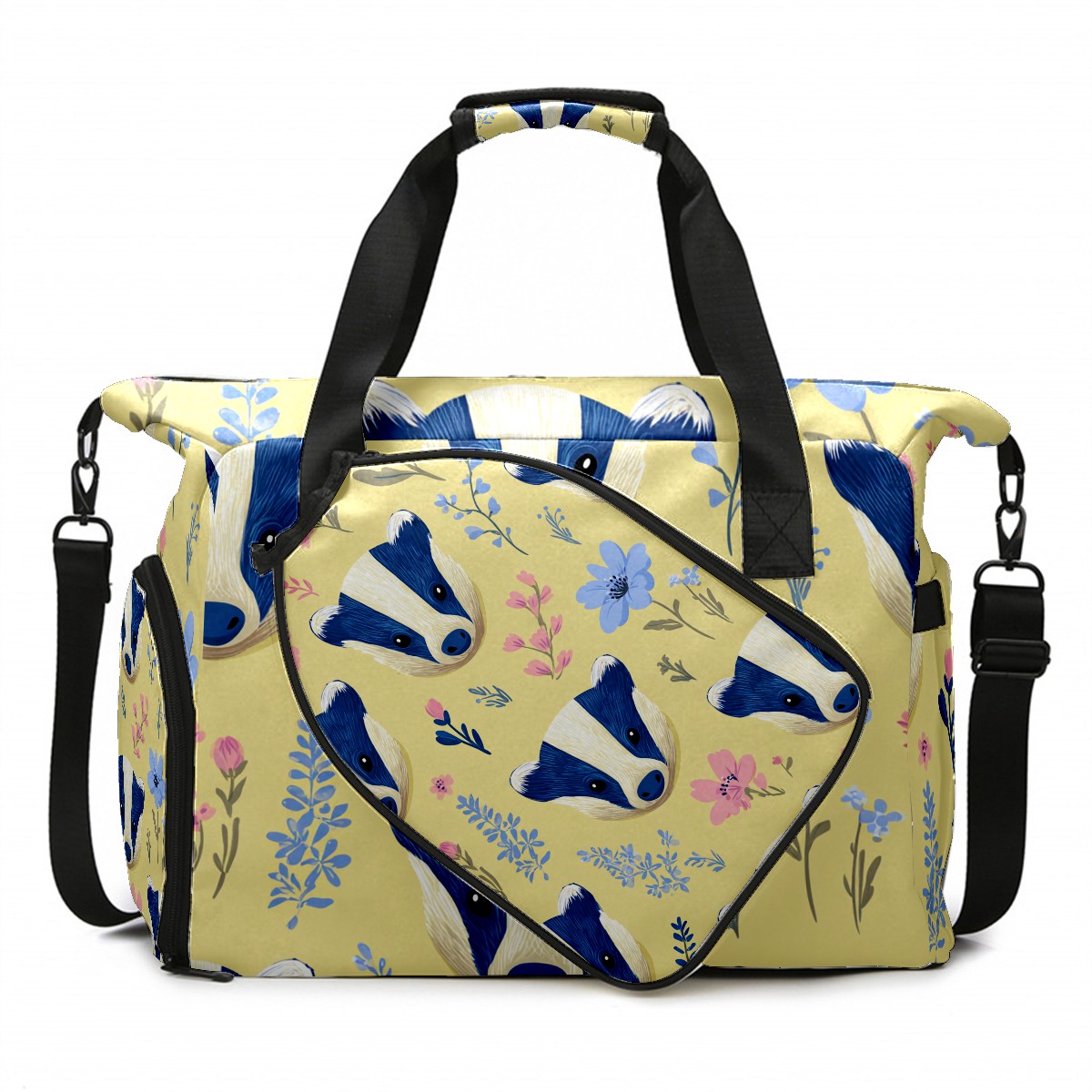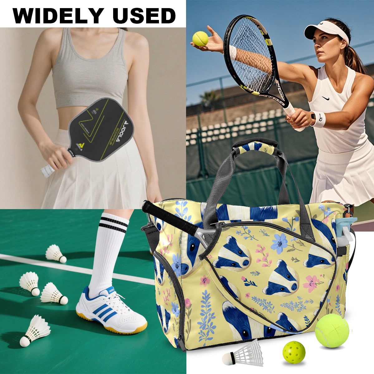 Women's Tennis Bag Large Capacity - Ventilated Shoe Compartment & Waterproof Wet Pocket, Multi-Functional Gym Duffel Bag for Tennis, Yoga, Travel (Cute Badger Yellow)