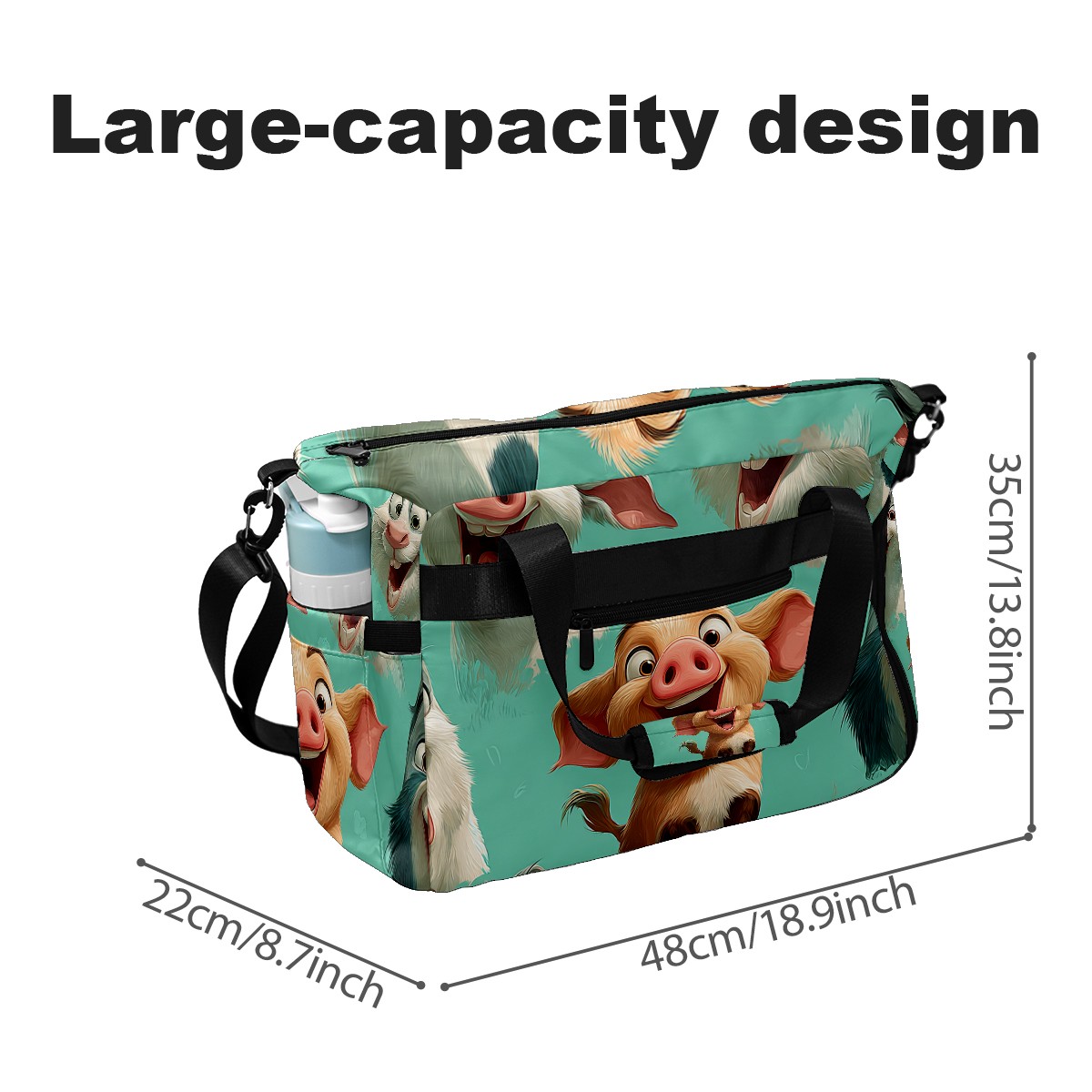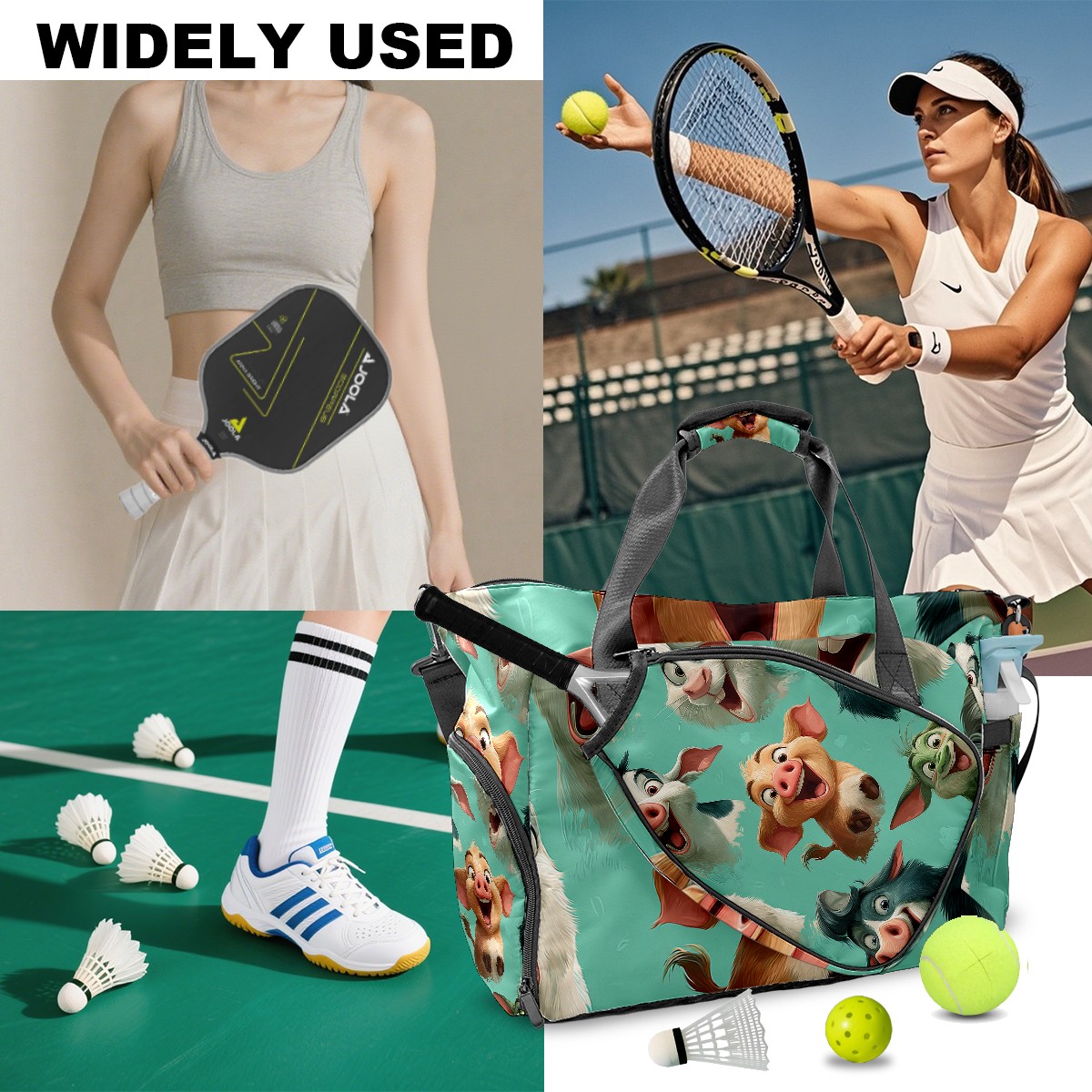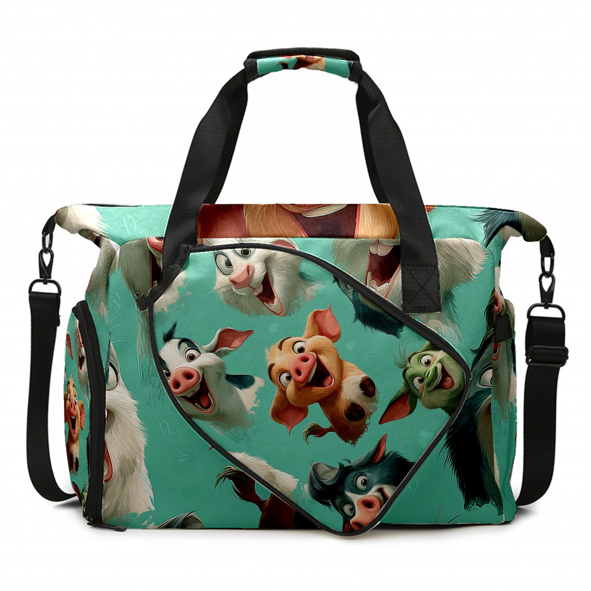 Women's Tennis Bag Large Capacity - Ventilated Shoe Compartment & Waterproof Wet Pocket, Multi-Functional Gym Duffel Bag for Tennis, Yoga, Travel (Playful Pig Green)