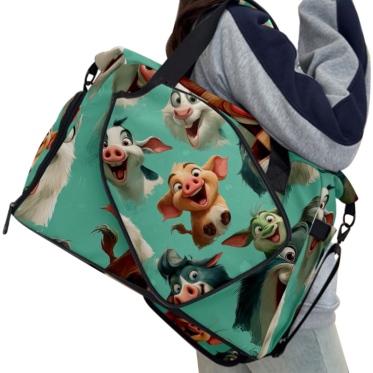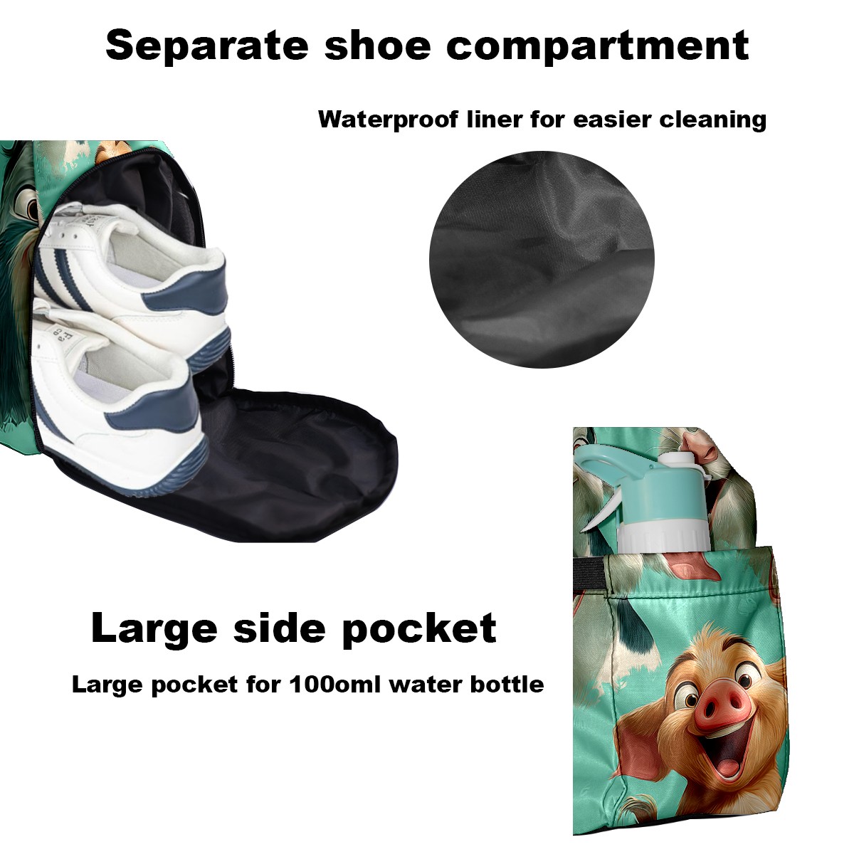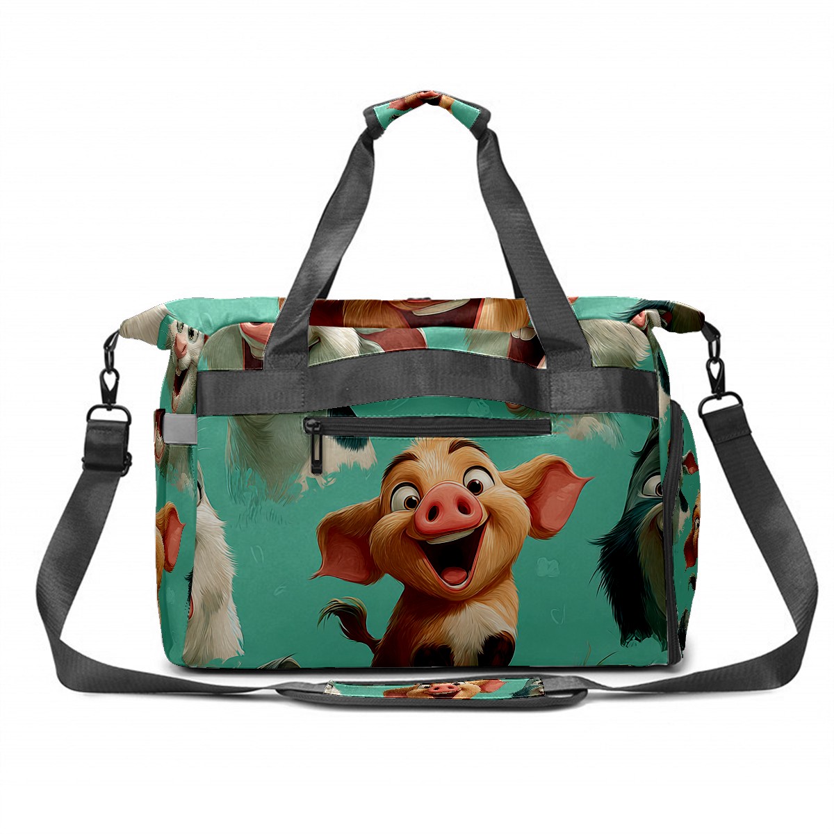 Women's Tennis Bag Large Capacity - Ventilated Shoe Compartment & Waterproof Wet Pocket, Multi-Functional Gym Duffel Bag for Tennis, Yoga, Travel (Playful Pig Green)
