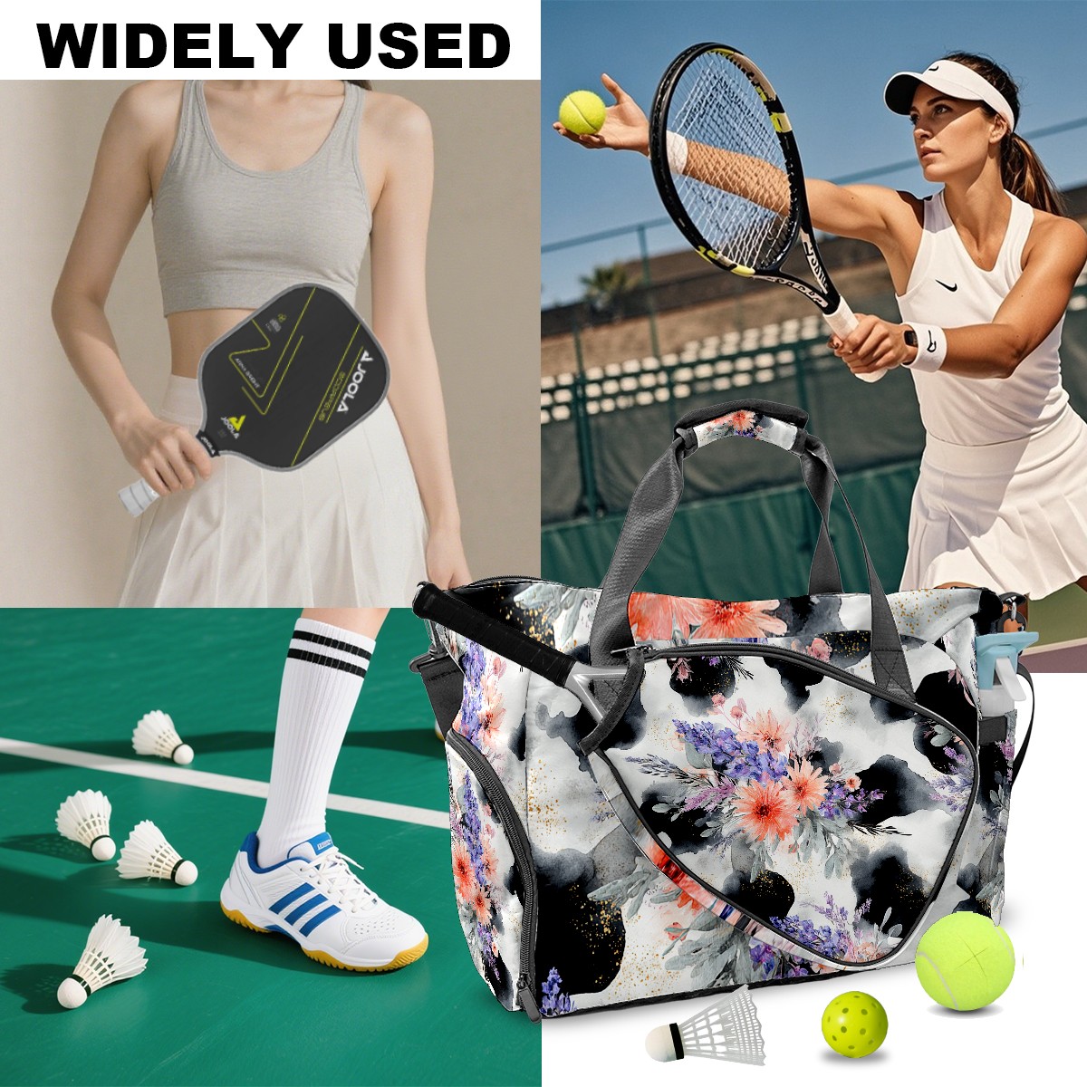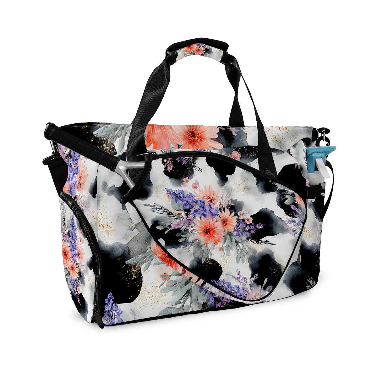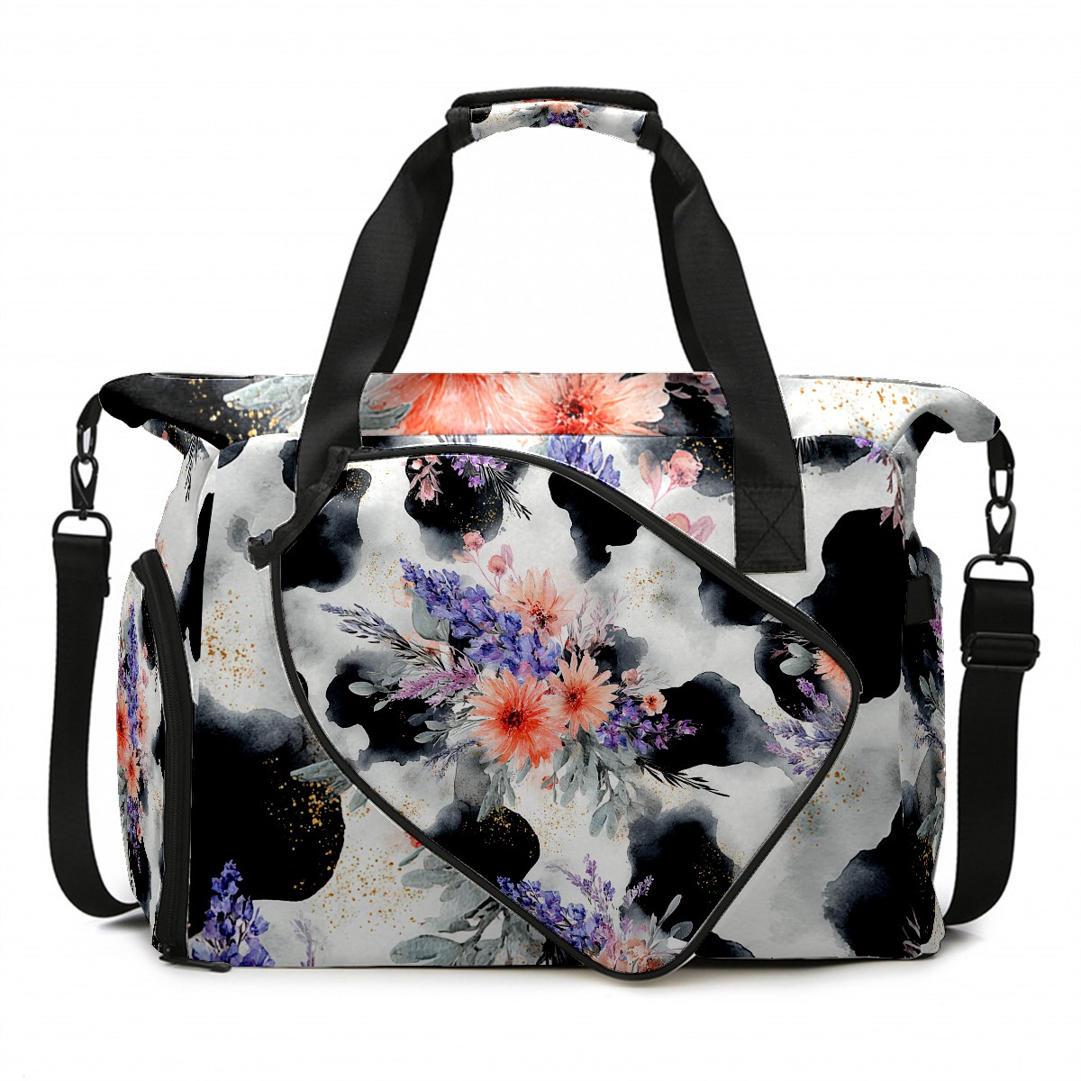 Women's Tennis Bag Large Capacity - Ventilated Shoe Compartment & Waterproof Wet Pocket, Multi-Functional Gym Duffel Bag for Tennis, Yoga, Travel (CatFlower Black)