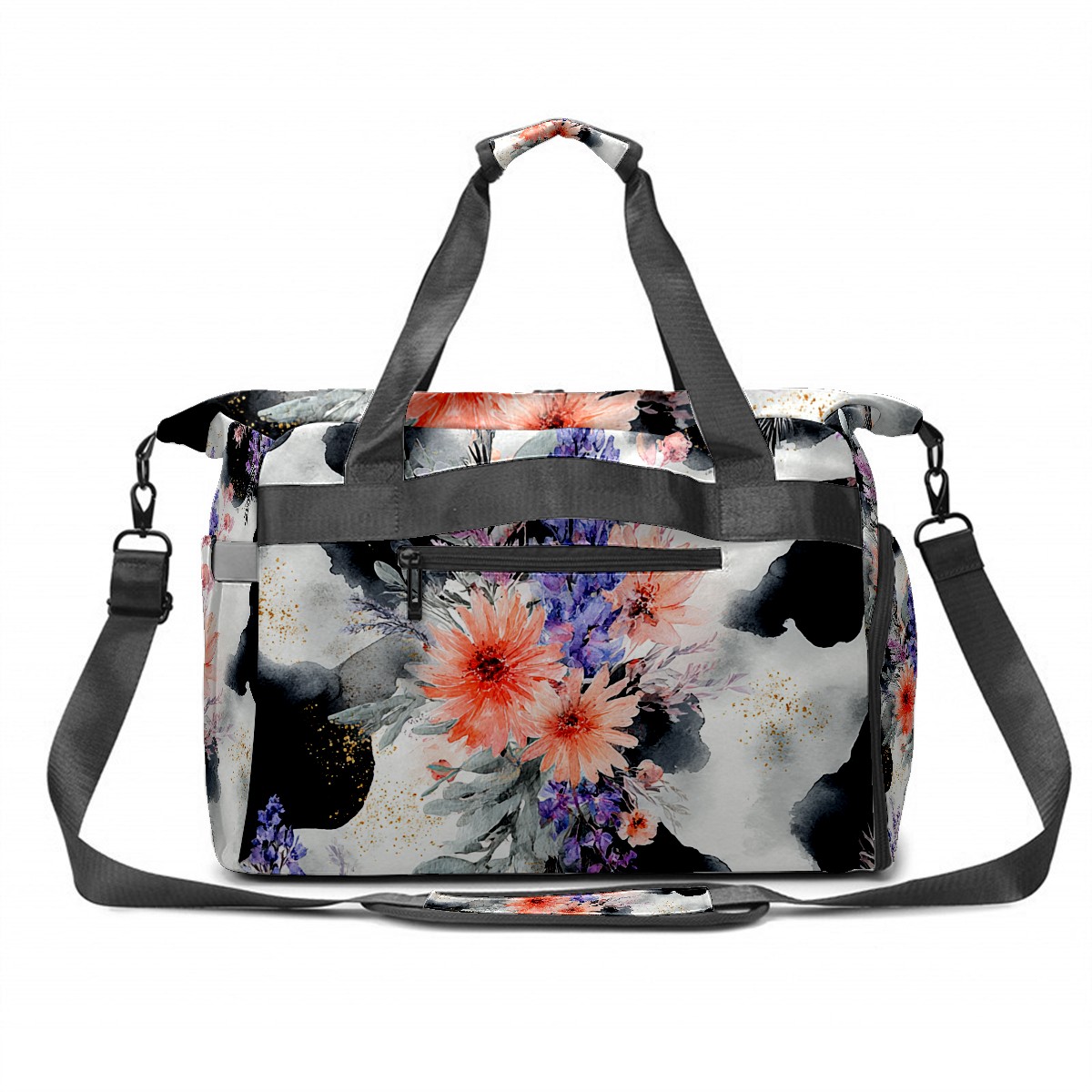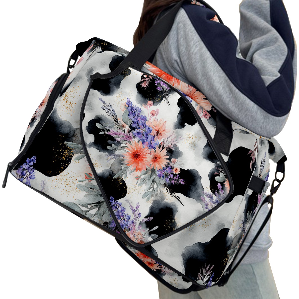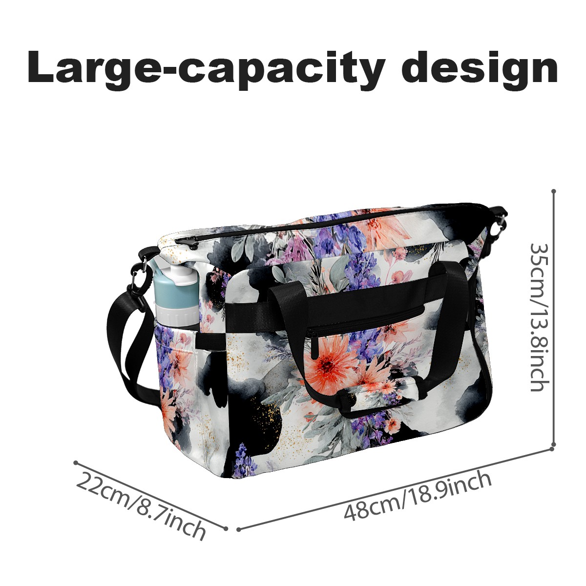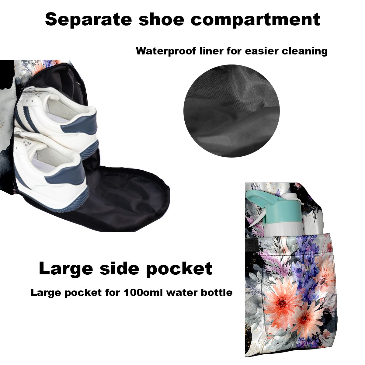 Women's Tennis Bag Large Capacity - Ventilated Shoe Compartment & Waterproof Wet Pocket, Multi-Functional Gym Duffel Bag for Tennis, Yoga, Travel (CatFlower Black)