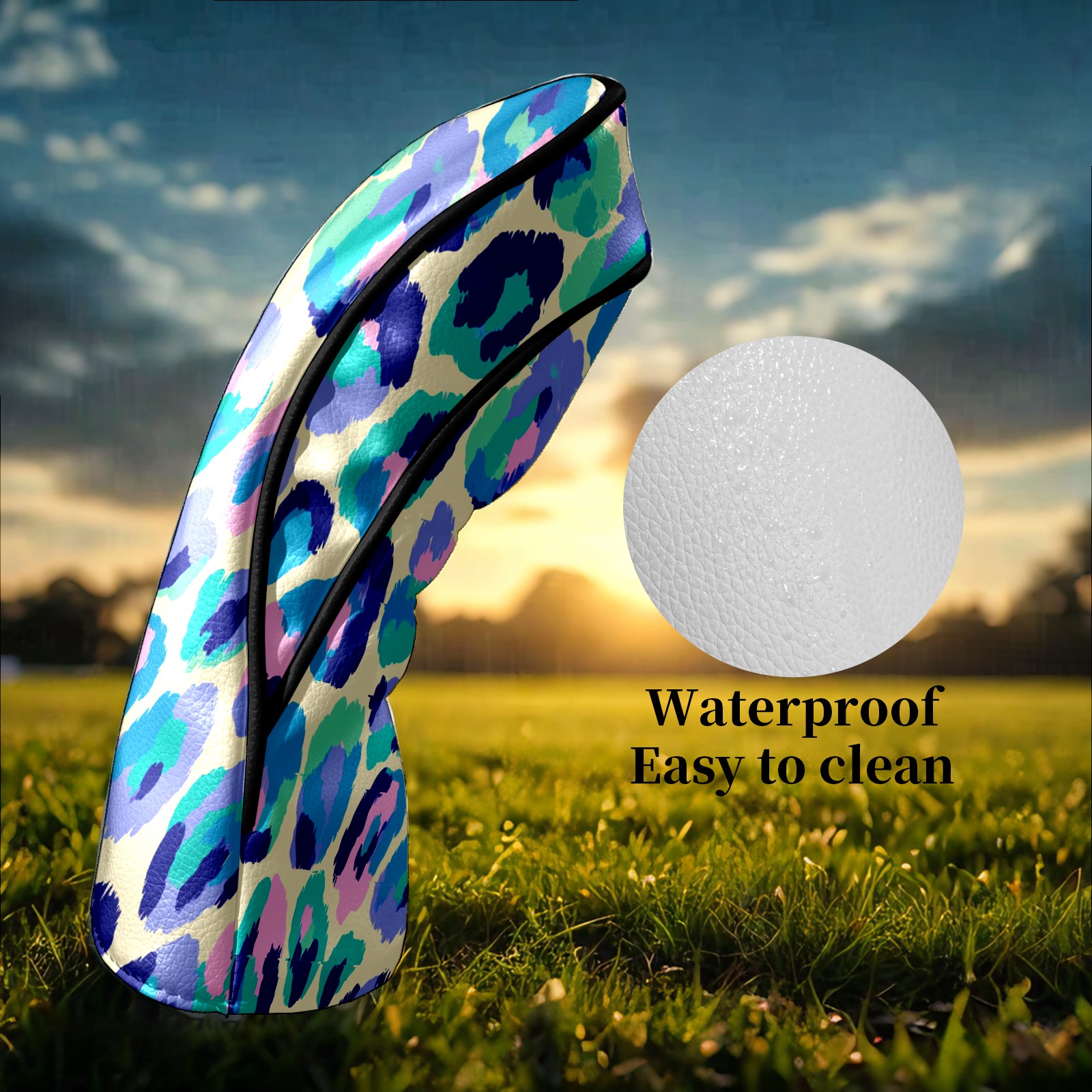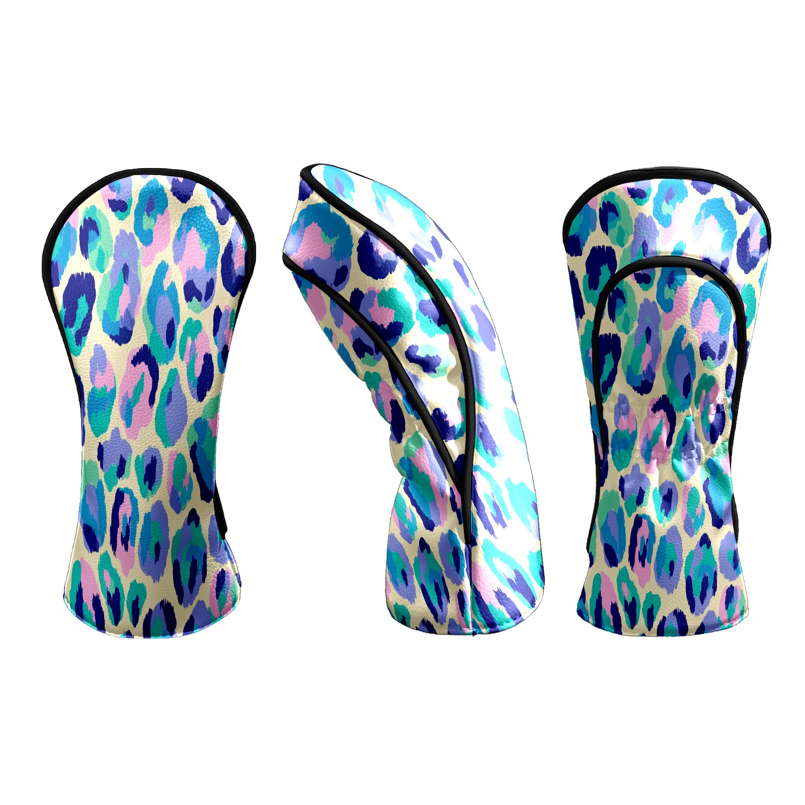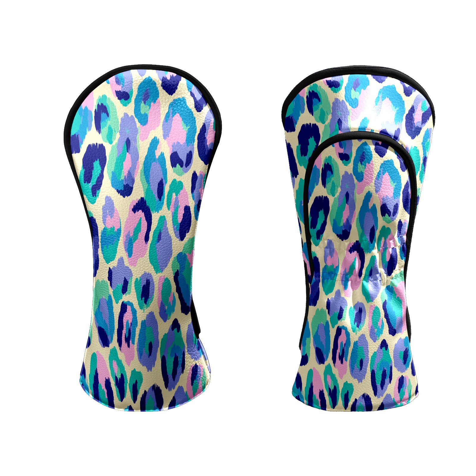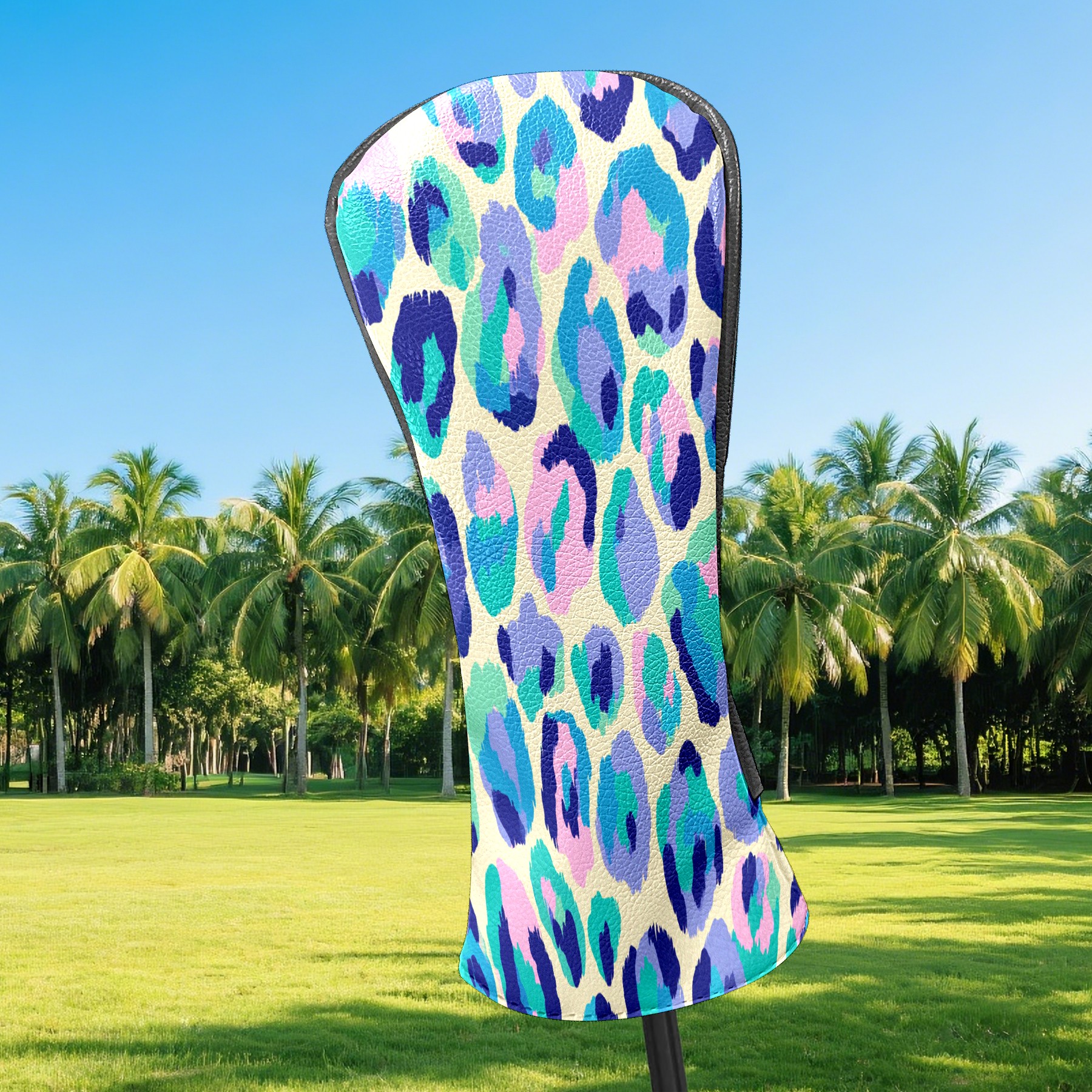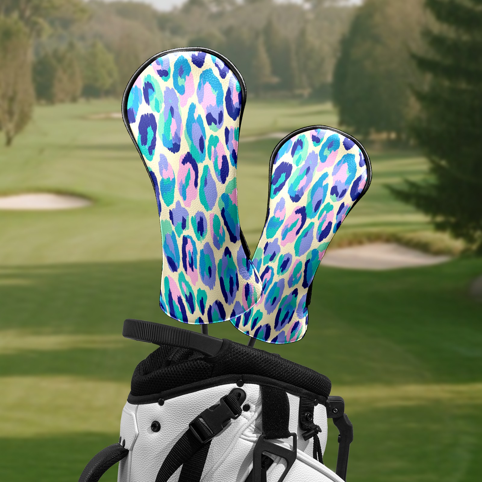 Golf Club Head Covers - Colorful Leopard Blue Driver Fairway Headcover, Premium PU Leather, Protective Velvet Lining, Secure Elastic Band, Fits All Golf Brands, Perfect Gift for Golfers Men Women