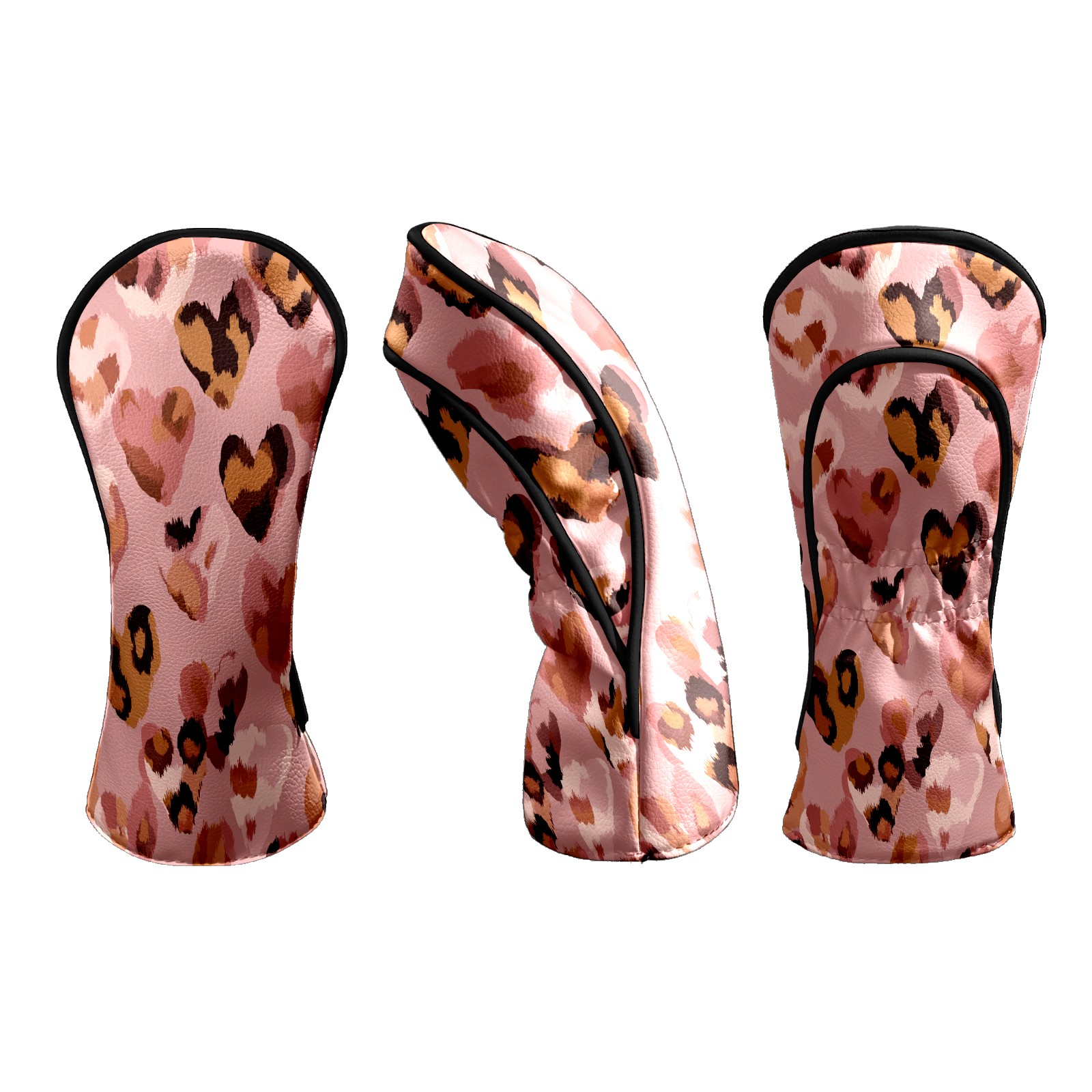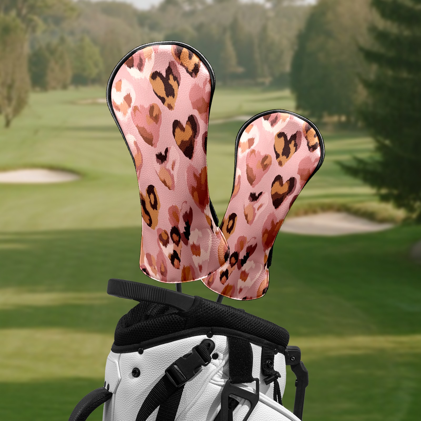 Golf Club Head Covers - Heart Shape Pink Driver Fairway Headcover, Premium PU Leather, Protective Velvet Lining, Secure Elastic Band, Fits All Golf Brands, Perfect Gift for Golfers Men Women