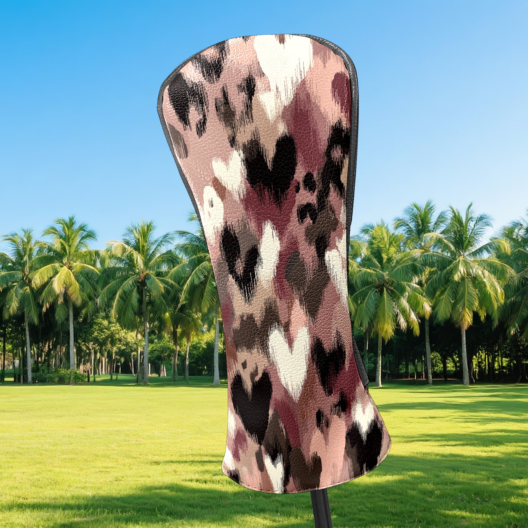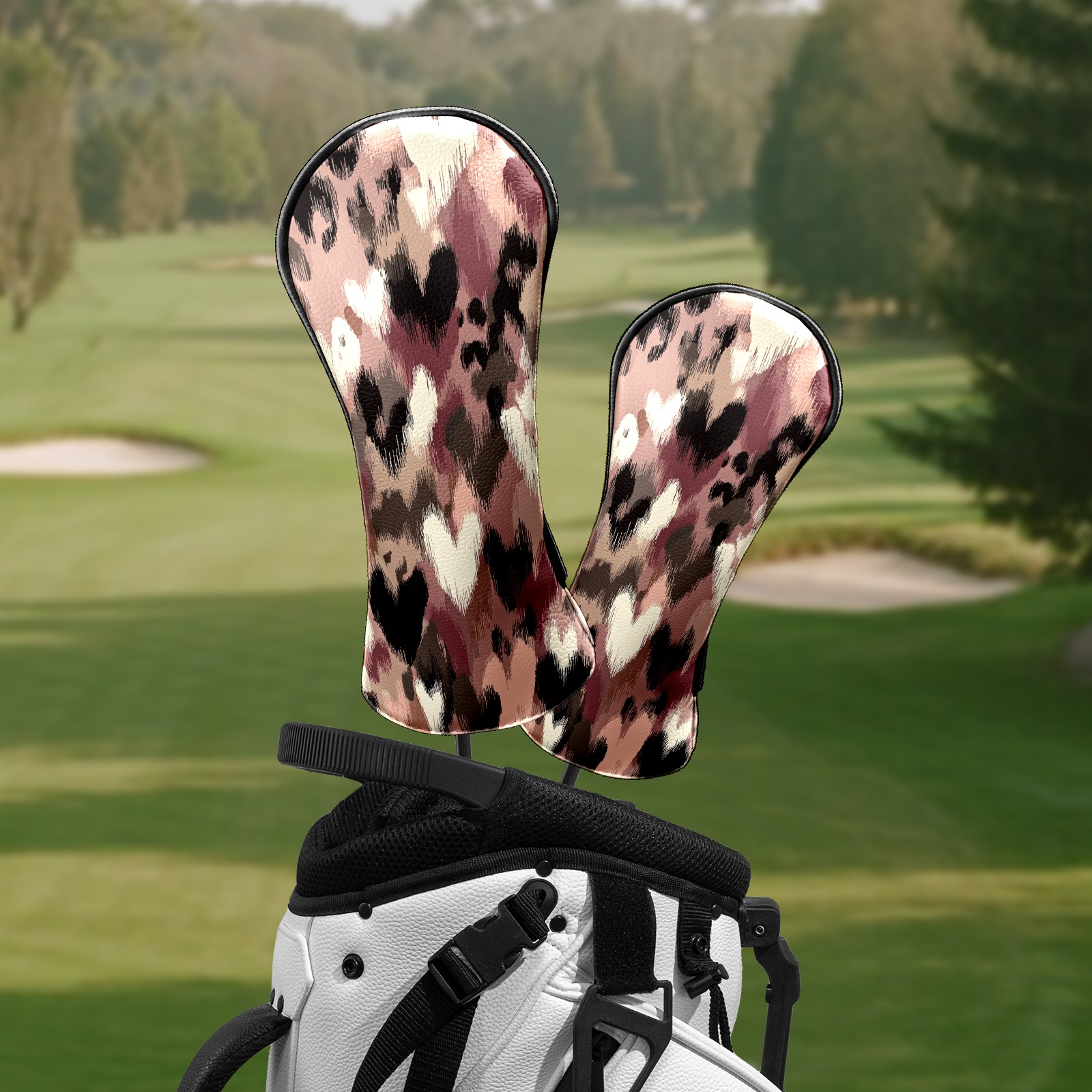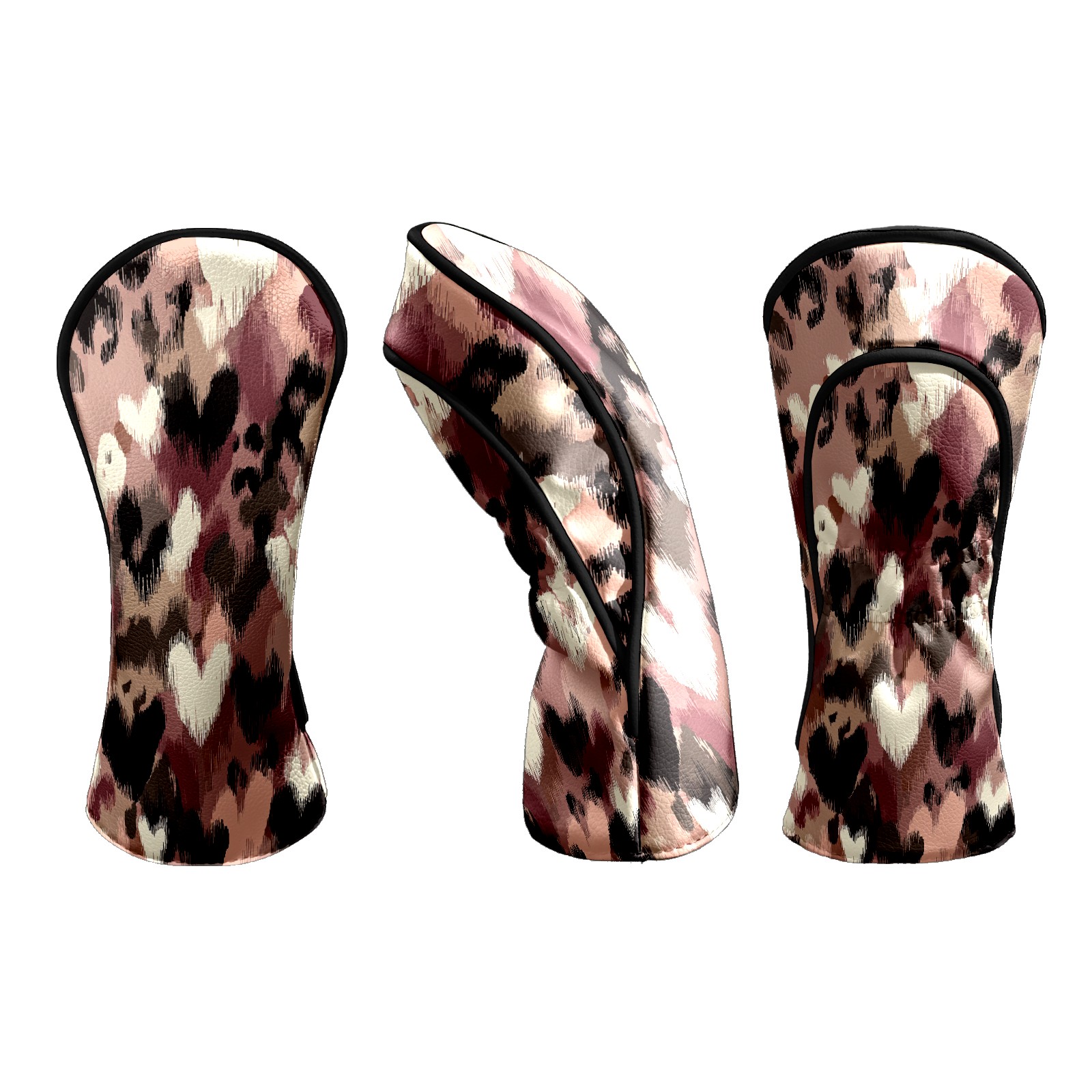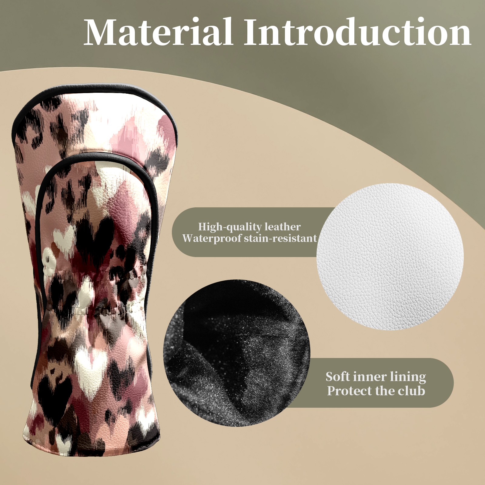 Golf Club Head Covers - Heart Leopard Pink Driver Fairway Headcover, Premium PU Leather, Protective Velvet Lining, Secure Elastic Band, Fits All Golf Brands, Perfect Gift for Golfers Men Women