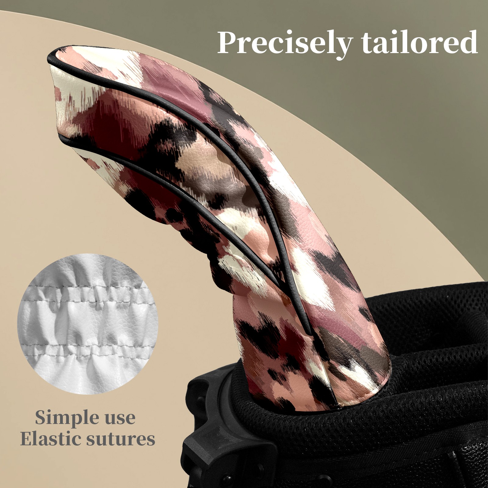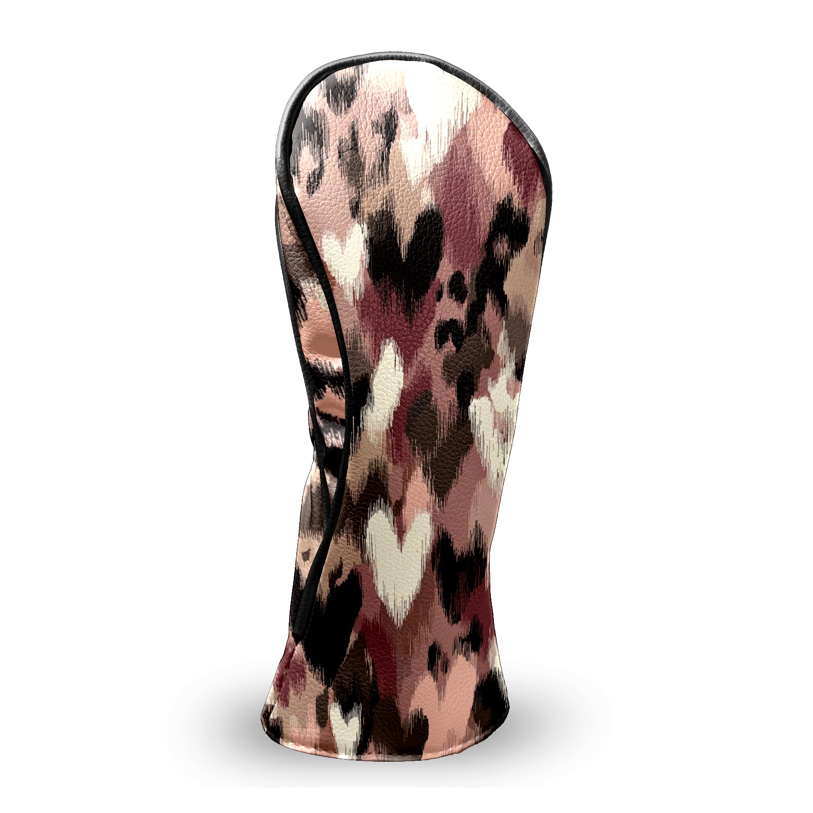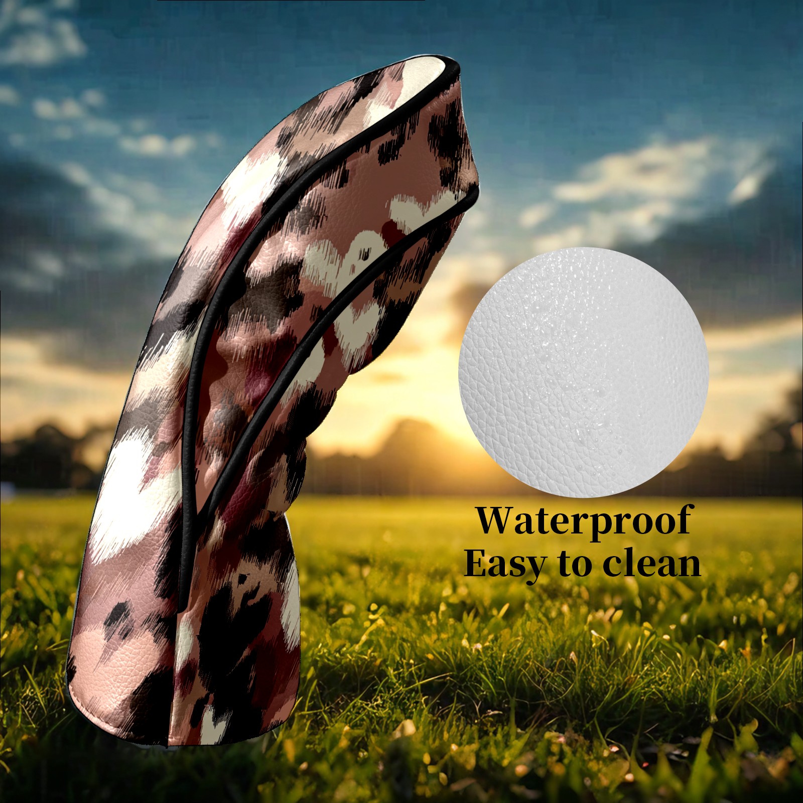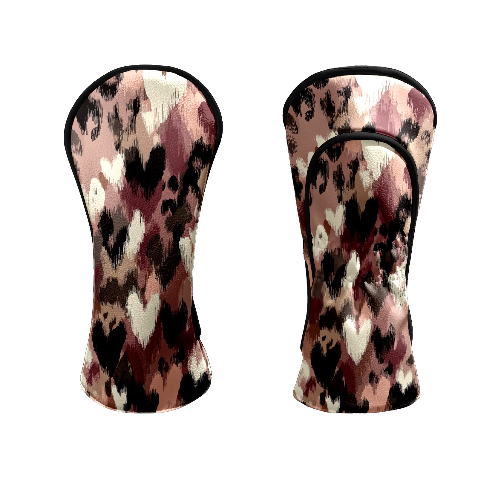 Golf Club Head Covers - Heart Leopard Pink Driver Fairway Headcover, Premium PU Leather, Protective Velvet Lining, Secure Elastic Band, Fits All Golf Brands, Perfect Gift for Golfers Men Women