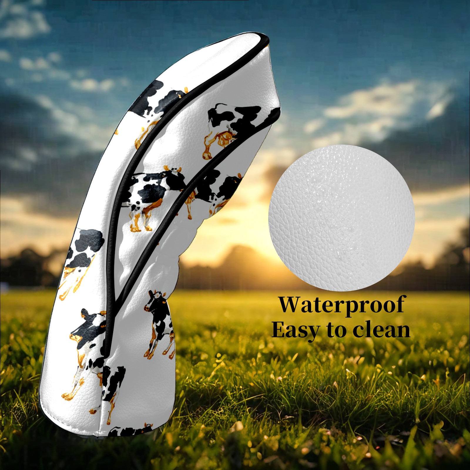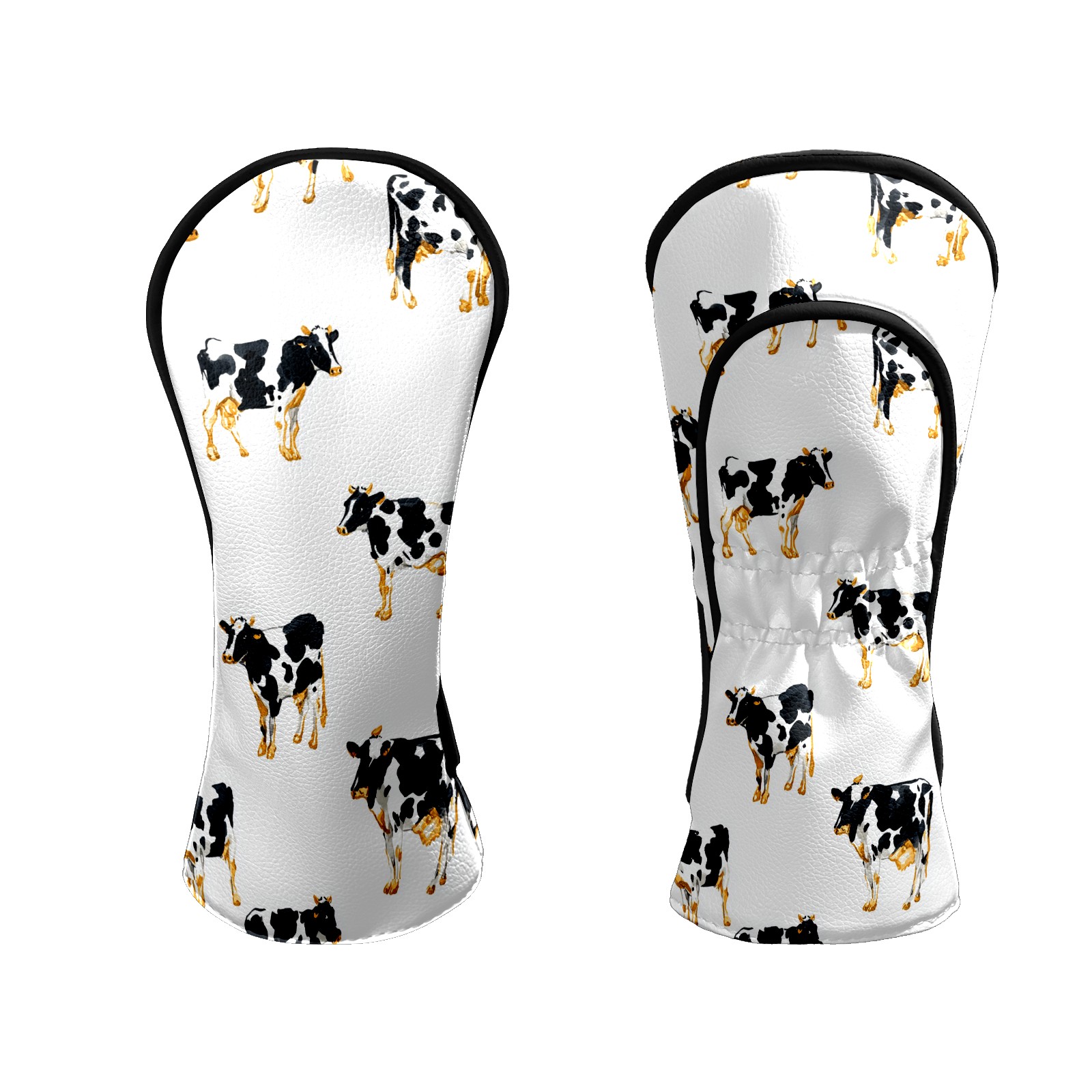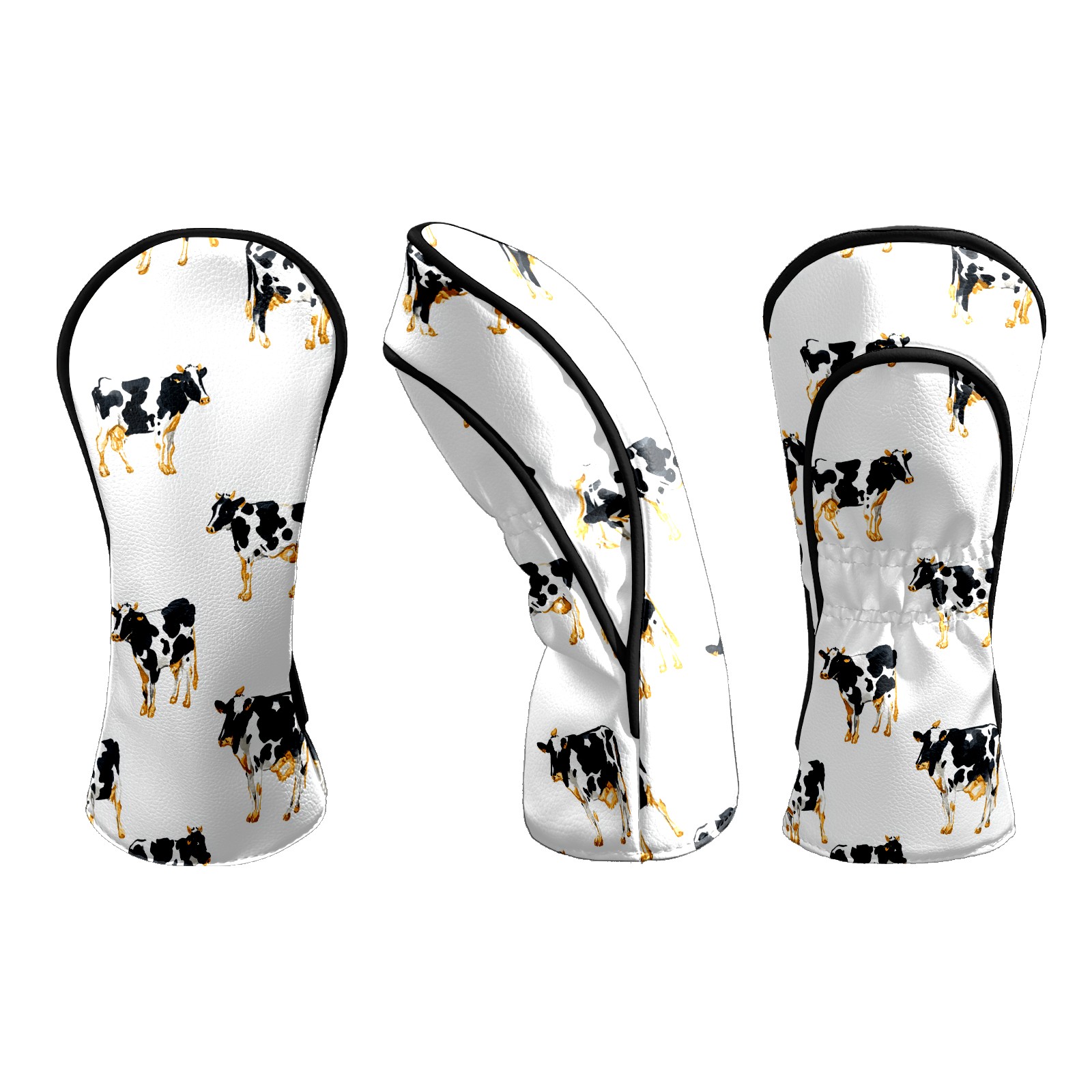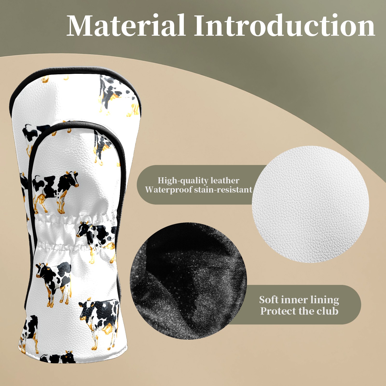 Golf Club Head Covers - Fresh Cow White Driver Fairway Headcover, Premium PU Leather, Protective Velvet Lining, Secure Elastic Band, Fits All Golf Brands, Perfect Gift for Golfers Men Women