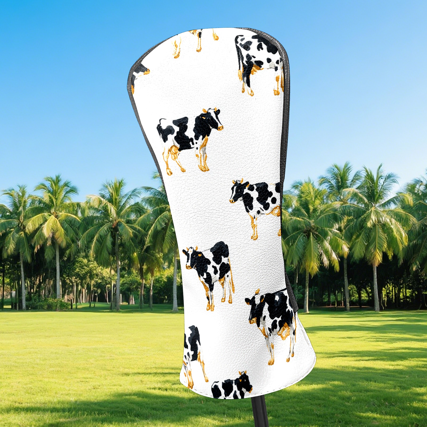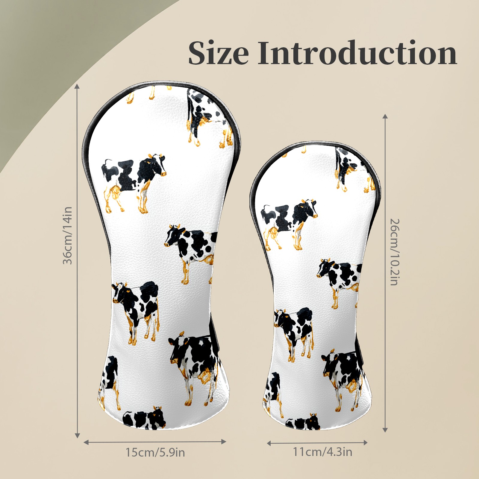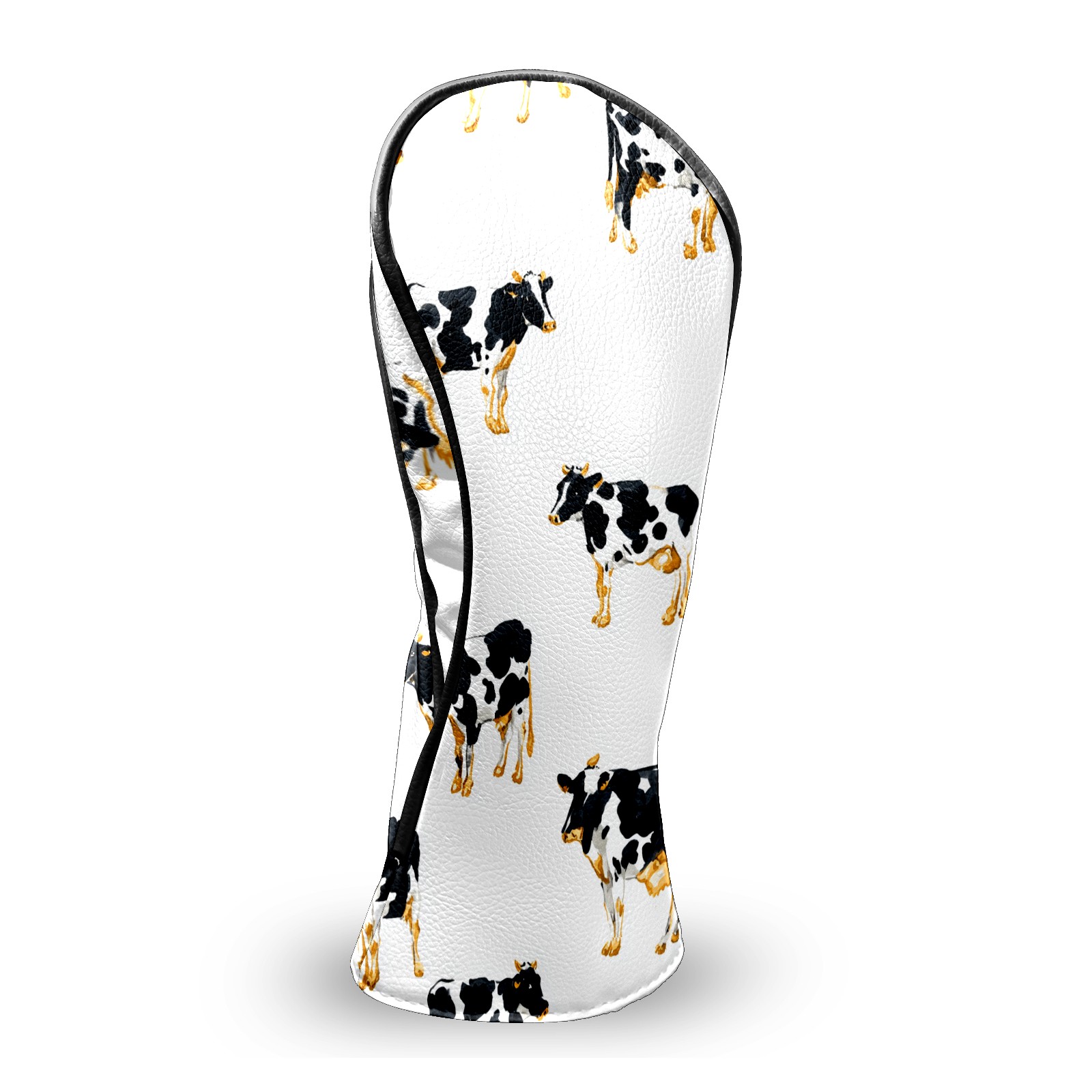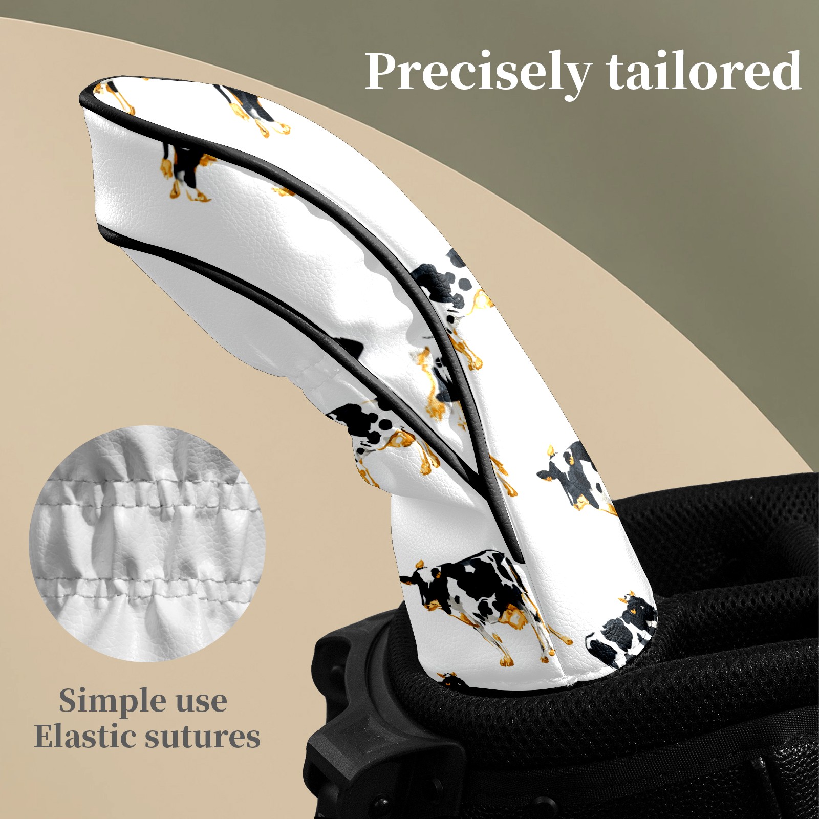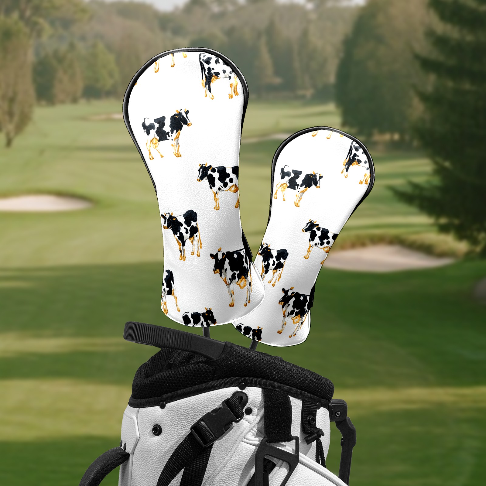 Golf Club Head Covers - Fresh Cow White Driver Fairway Headcover, Premium PU Leather, Protective Velvet Lining, Secure Elastic Band, Fits All Golf Brands, Perfect Gift for Golfers Men Women