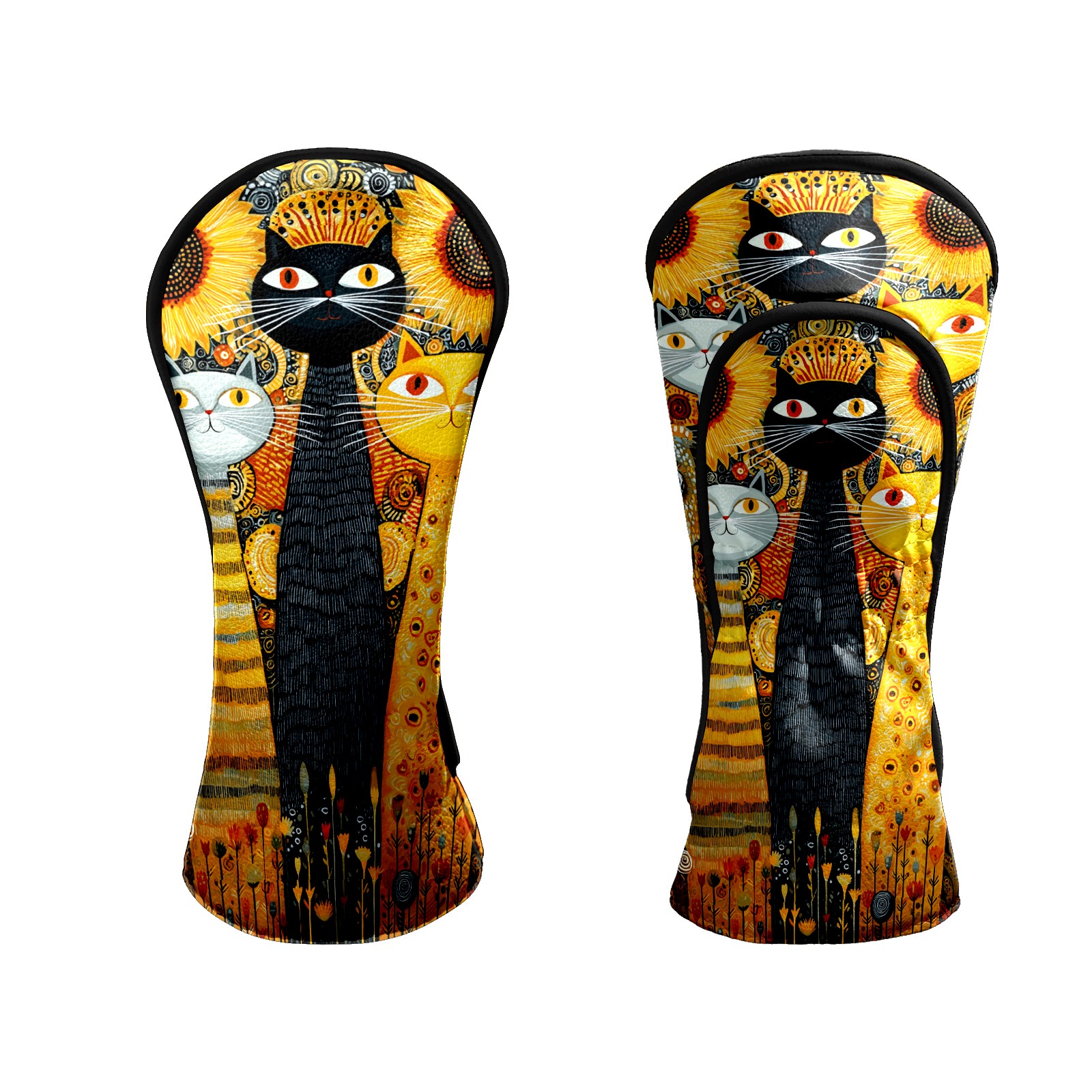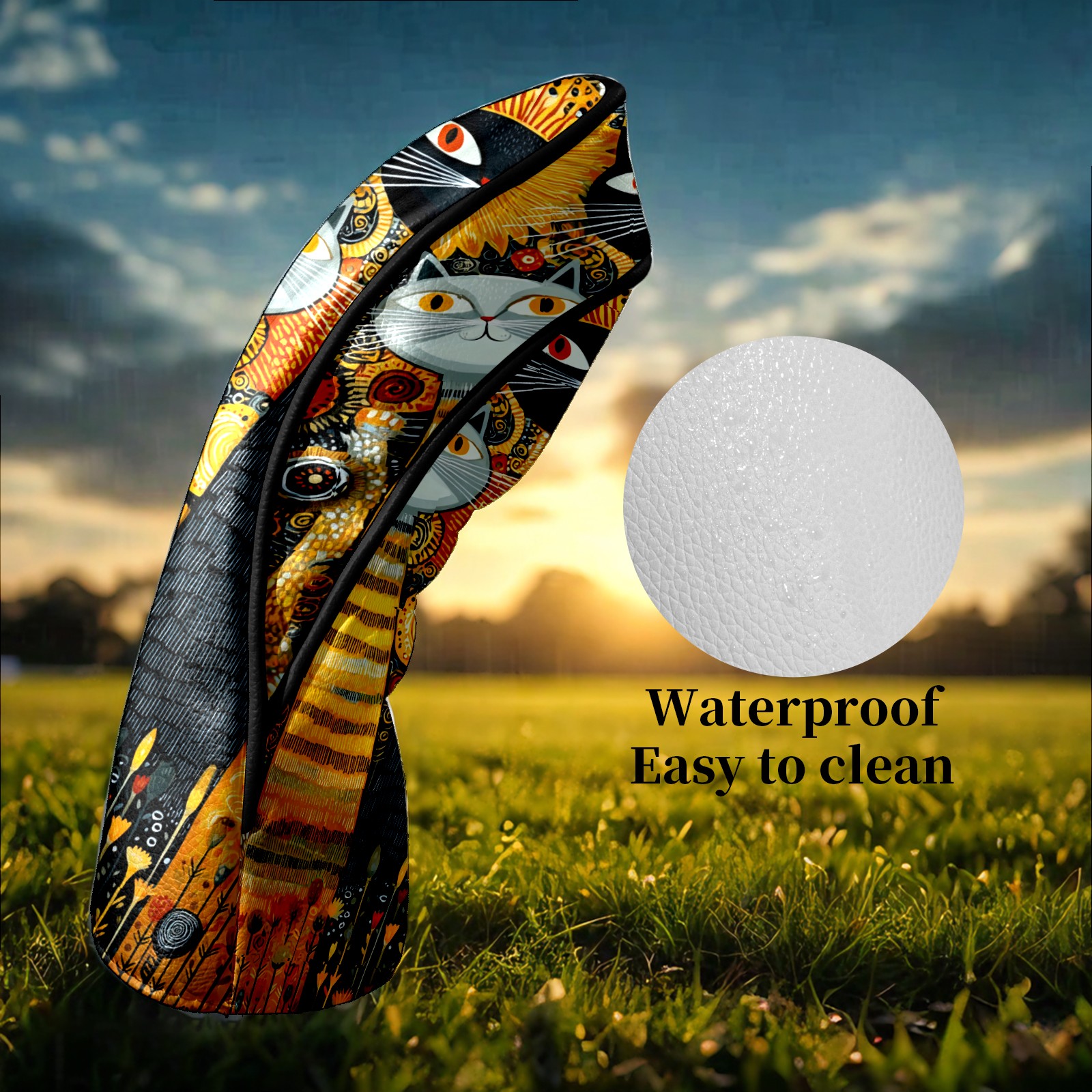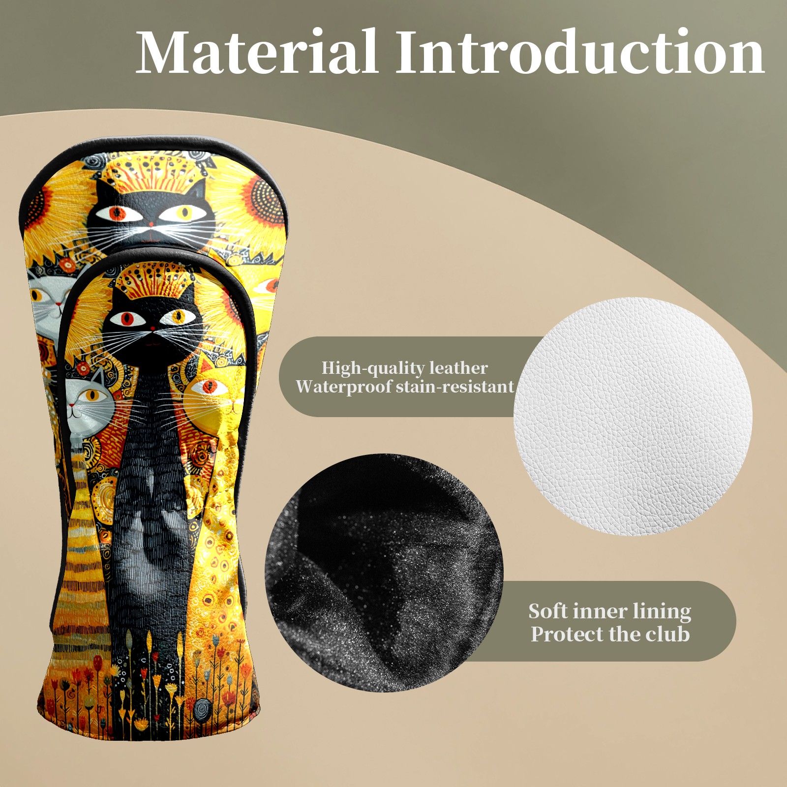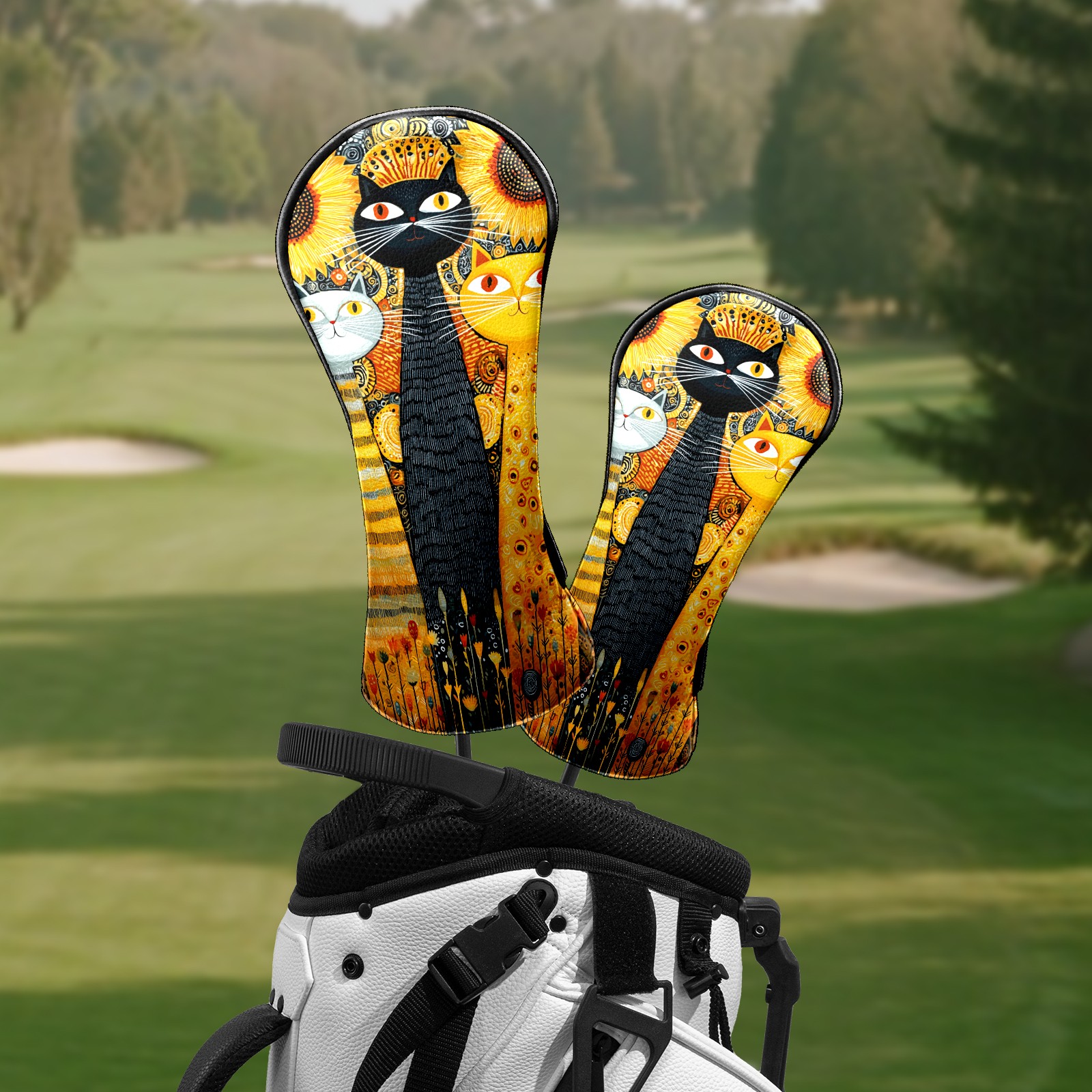Golf Club Head Covers - Cat Sunflower Yellow Driver Fairway Headcover, Premium PU Leather, Protective Velvet Lining, Secure Elastic Band, Fits All Golf Brands, Perfect Gift for Golfers Men Women