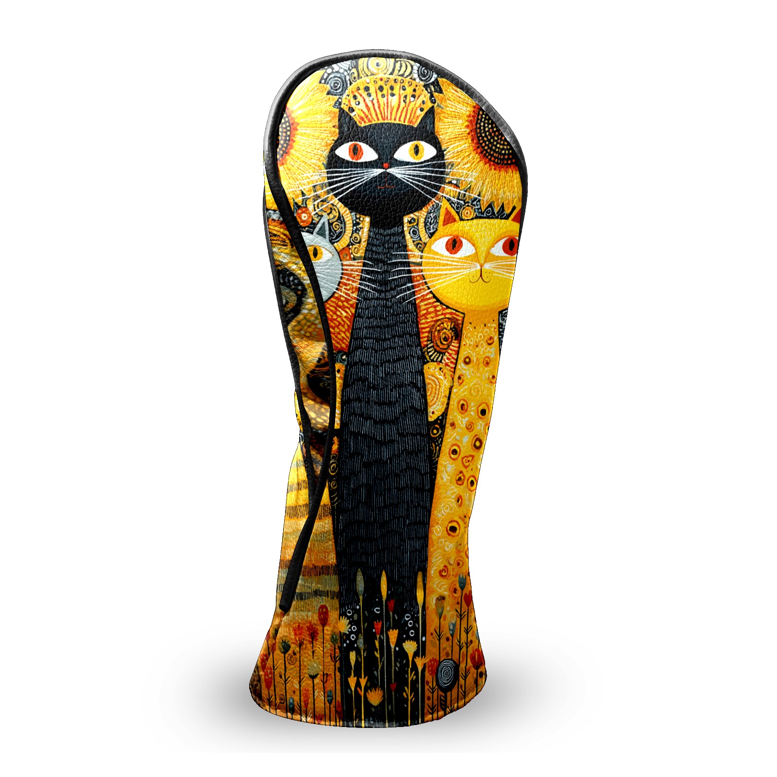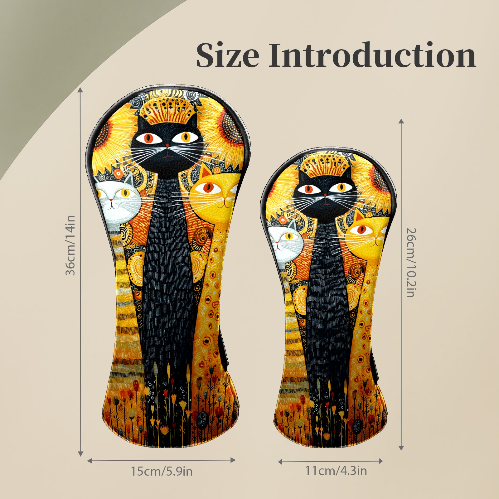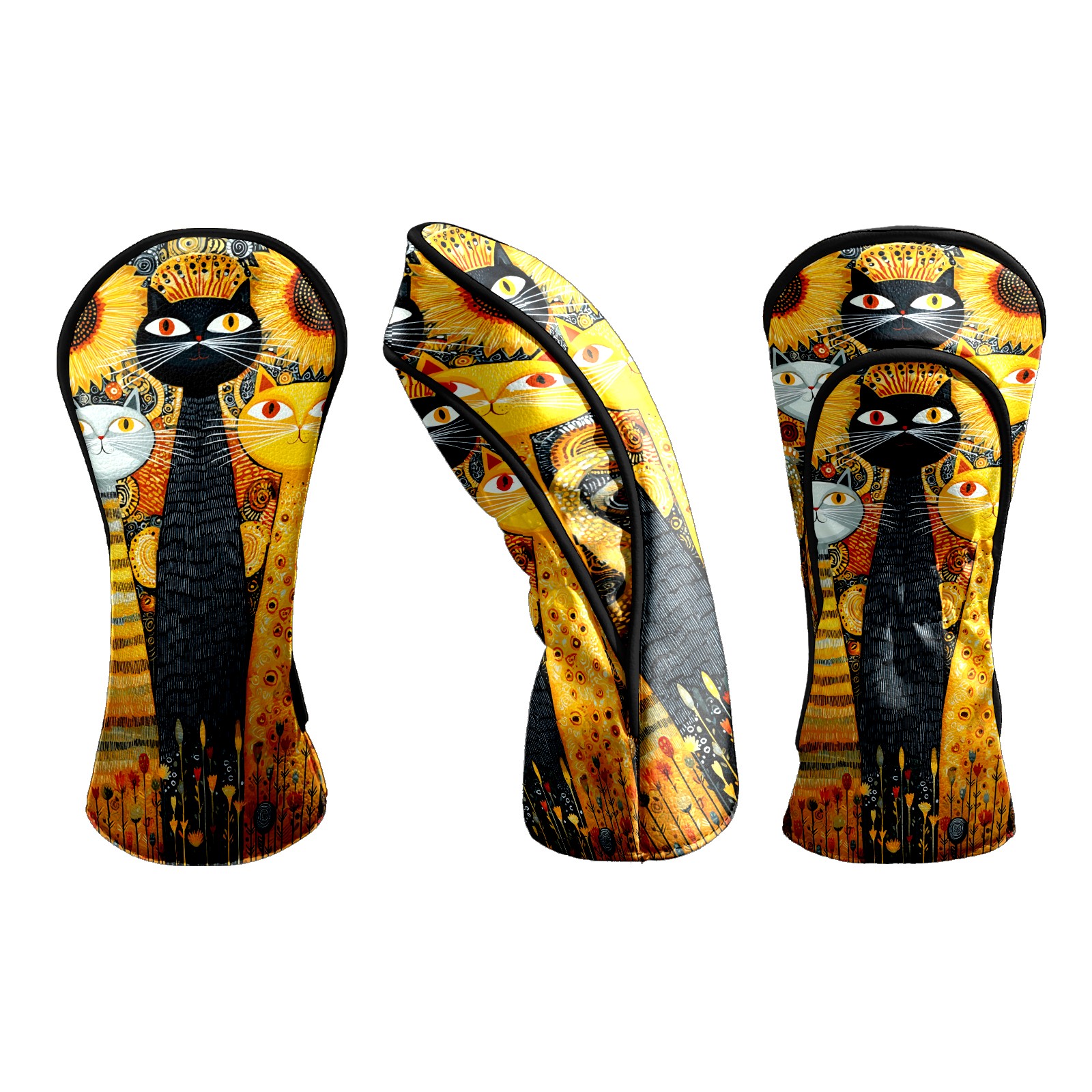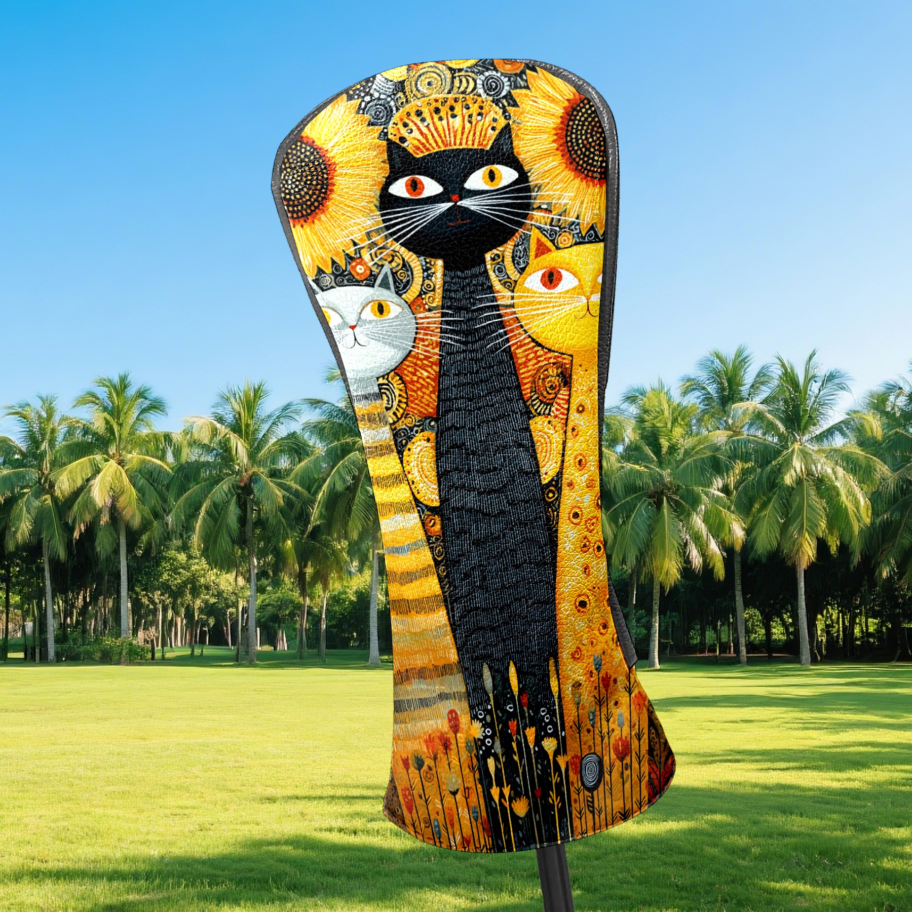 Golf Club Head Covers - Cat Sunflower Yellow Driver Fairway Headcover, Premium PU Leather, Protective Velvet Lining, Secure Elastic Band, Fits All Golf Brands, Perfect Gift for Golfers Men Women