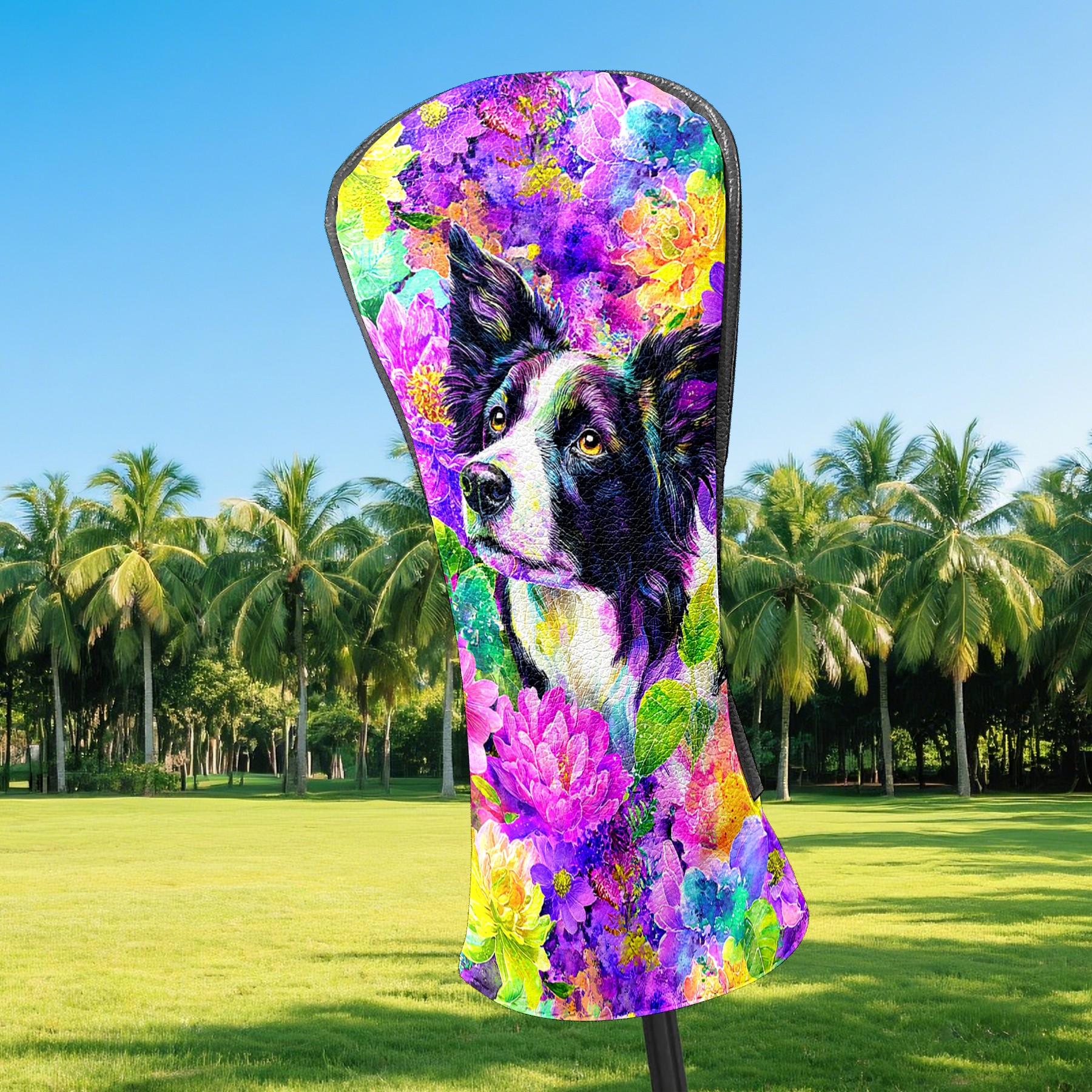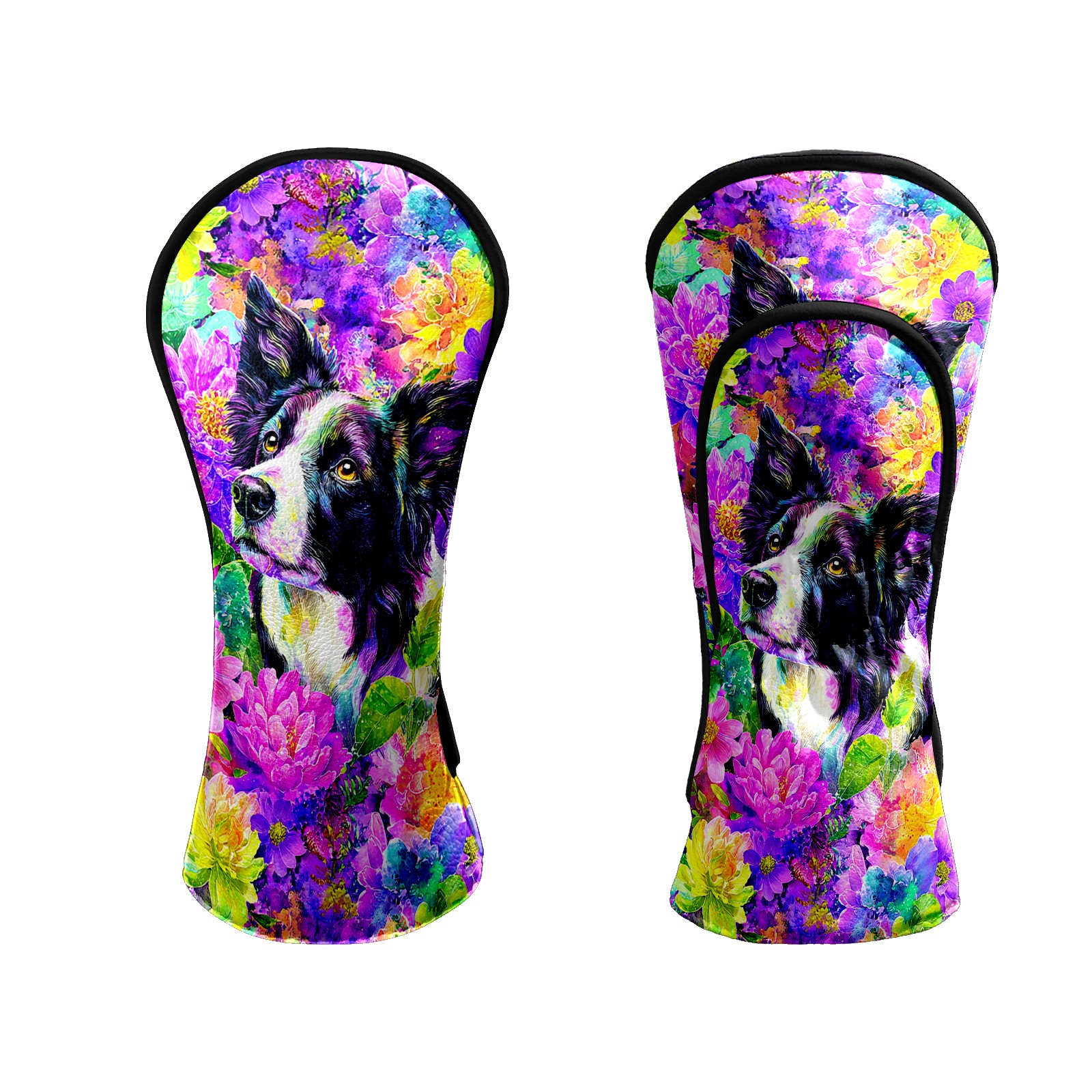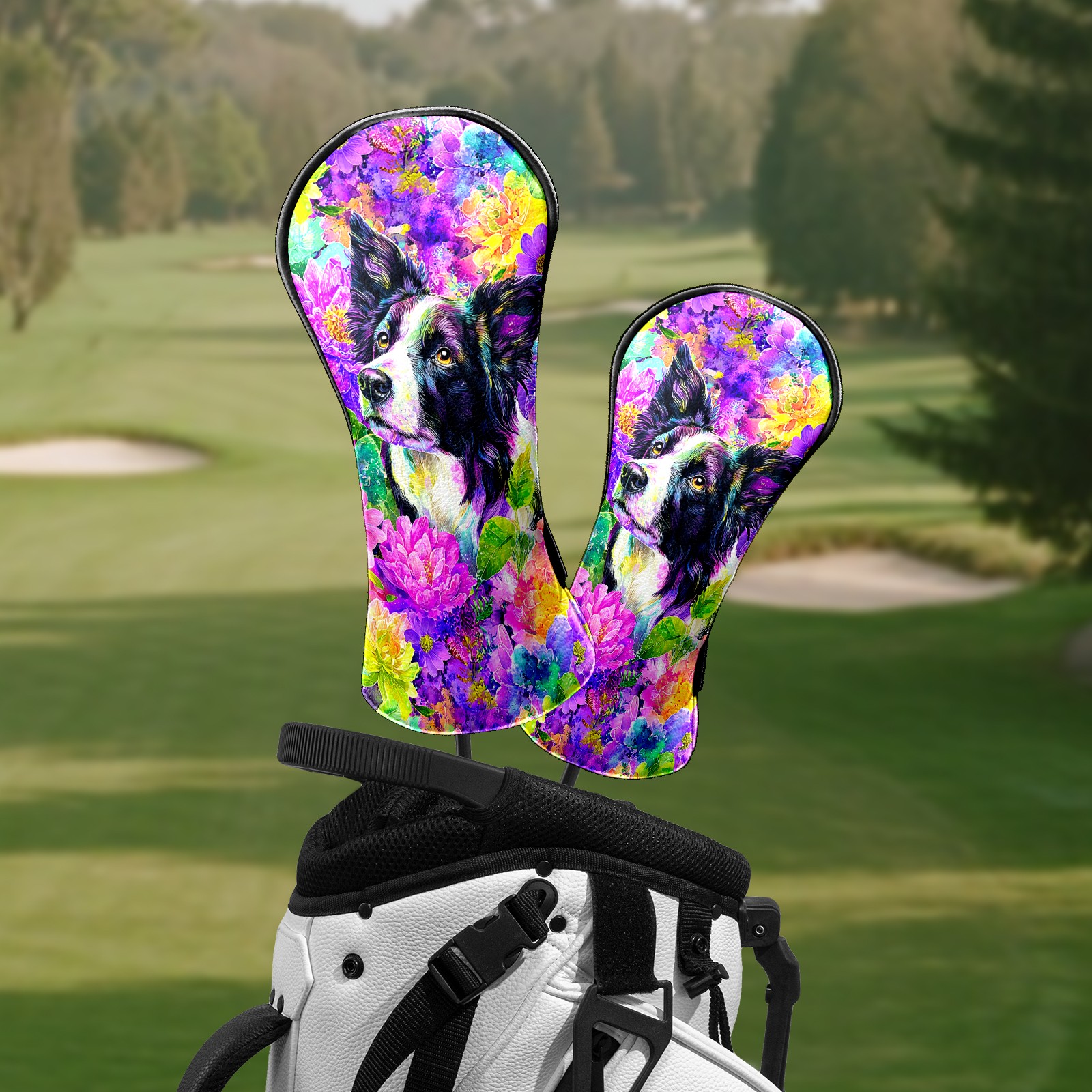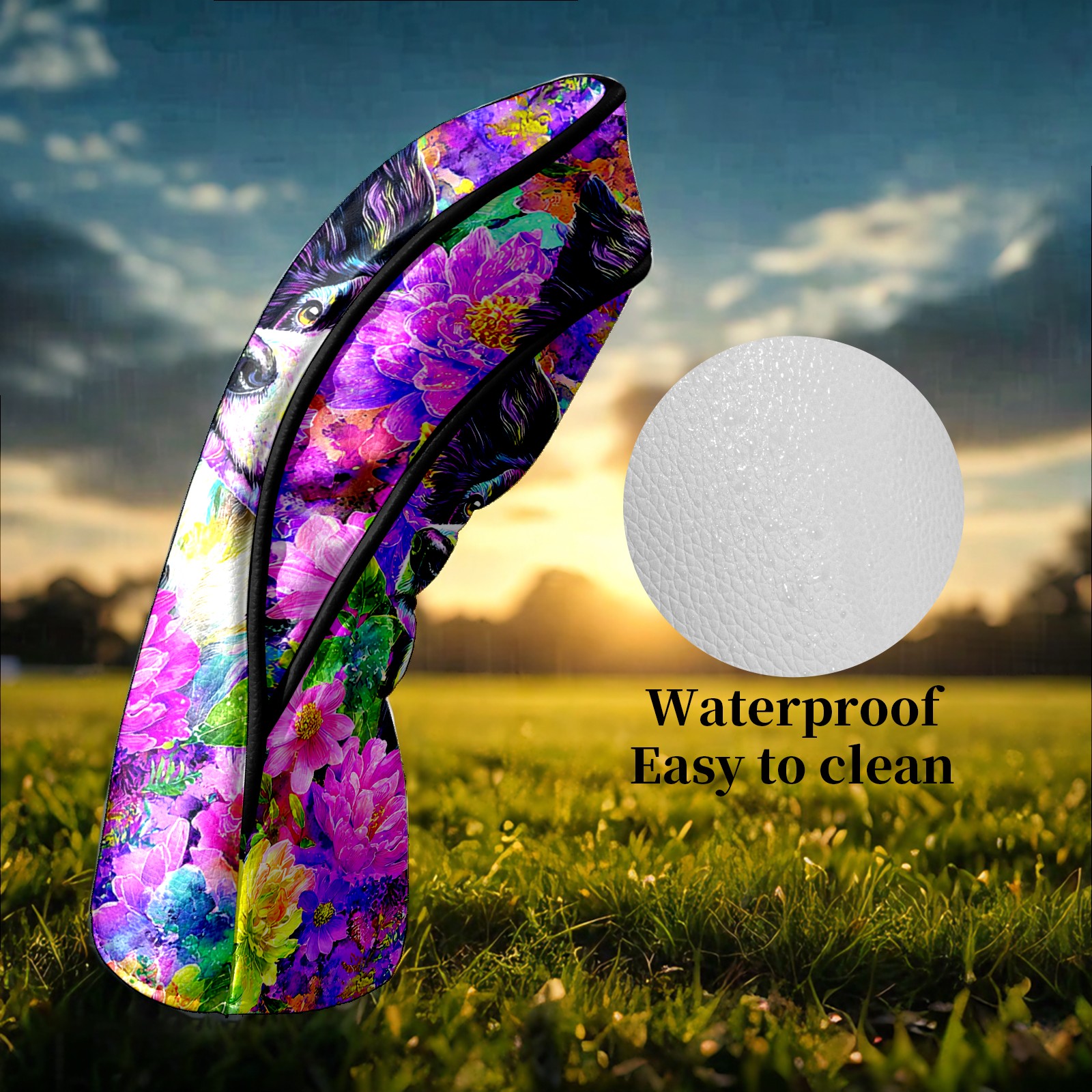 Golf Club Head Covers - Dog Flower Purple Driver Fairway Headcover, Premium PU Leather, Protective Velvet Lining, Secure Elastic Band, Fits All Golf Brands, Perfect Gift for Golfers Men Women