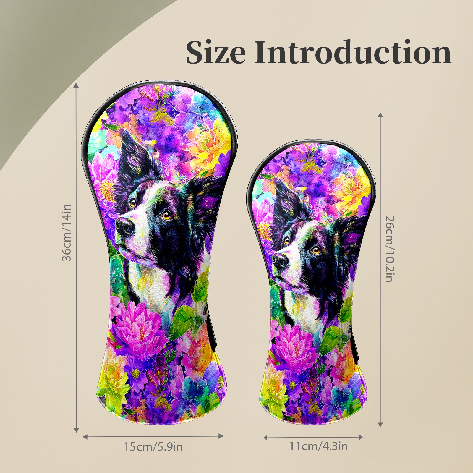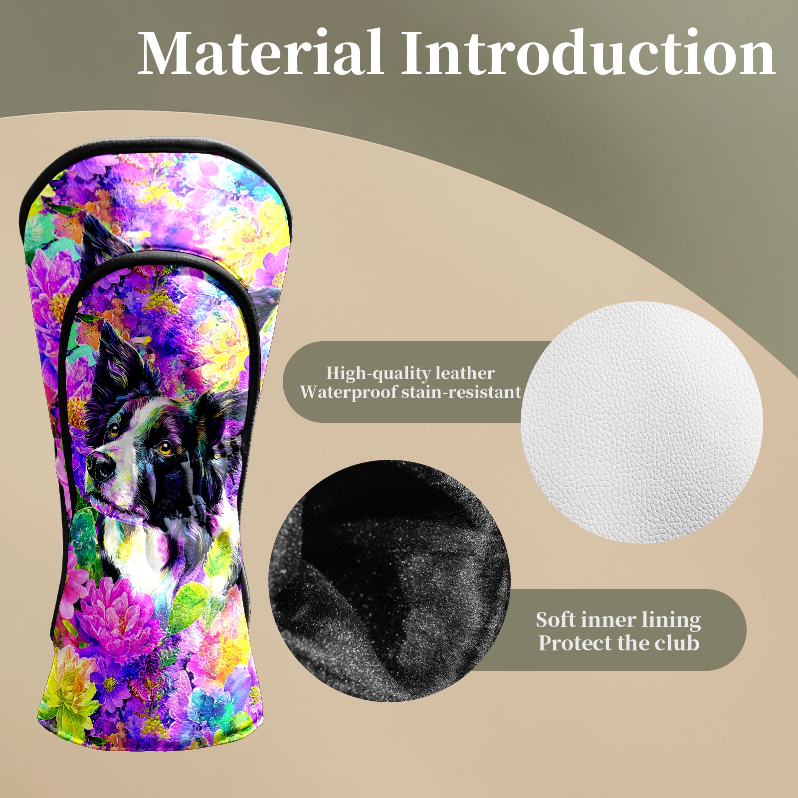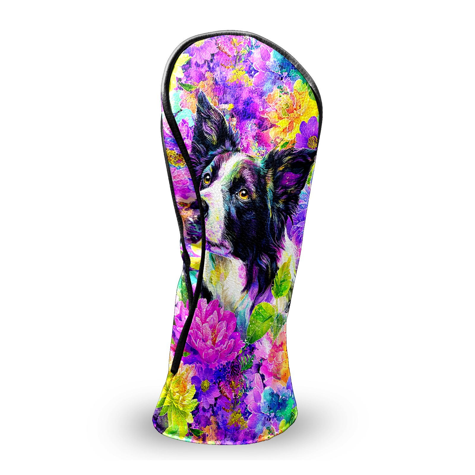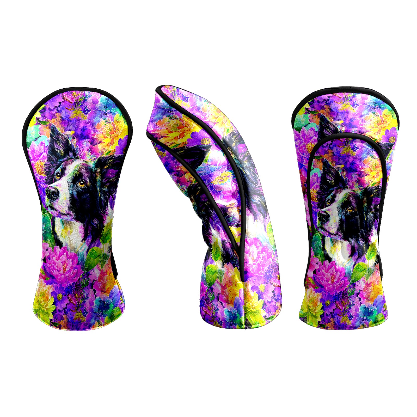 Golf Club Head Covers - Dog Flower Purple Driver Fairway Headcover, Premium PU Leather, Protective Velvet Lining, Secure Elastic Band, Fits All Golf Brands, Perfect Gift for Golfers Men Women