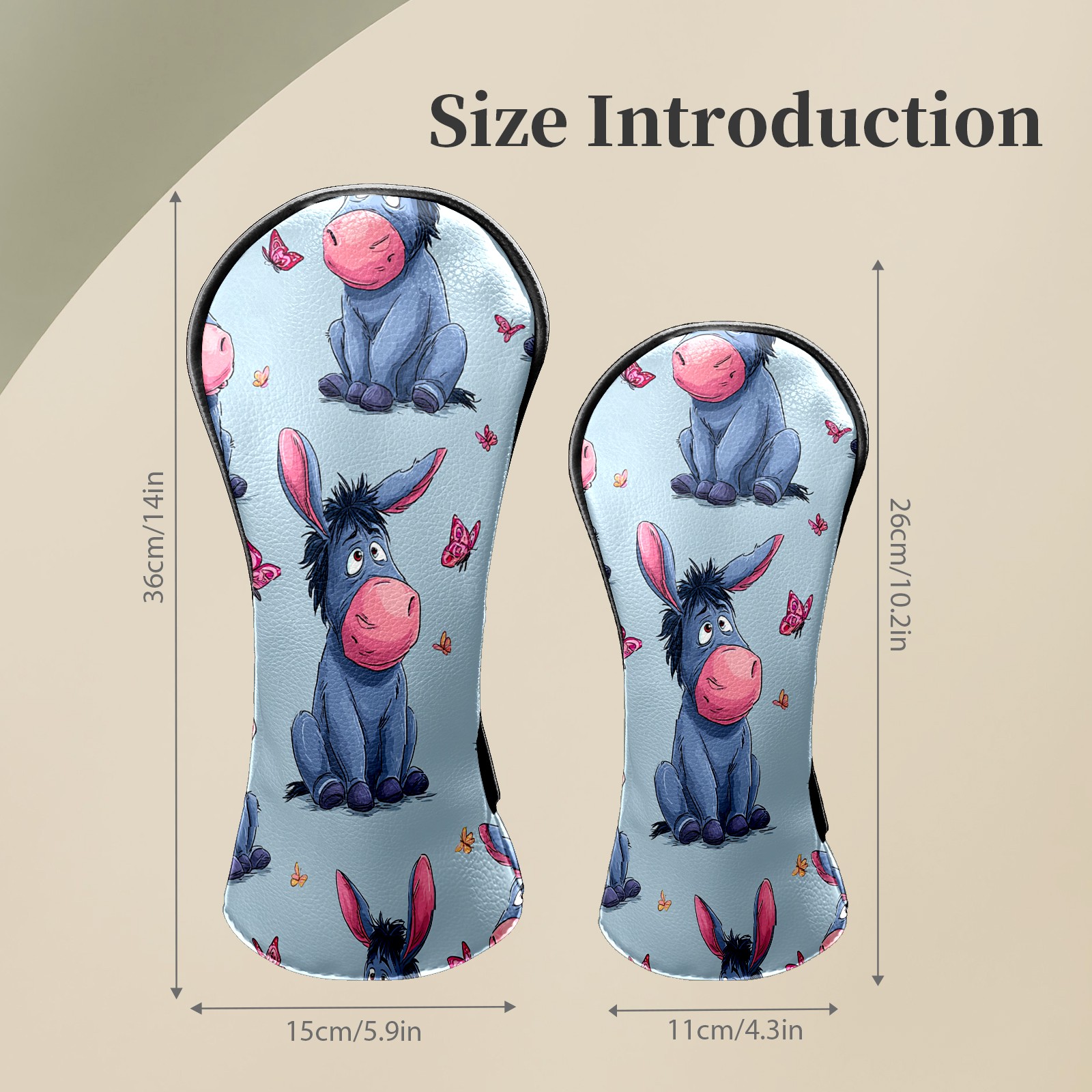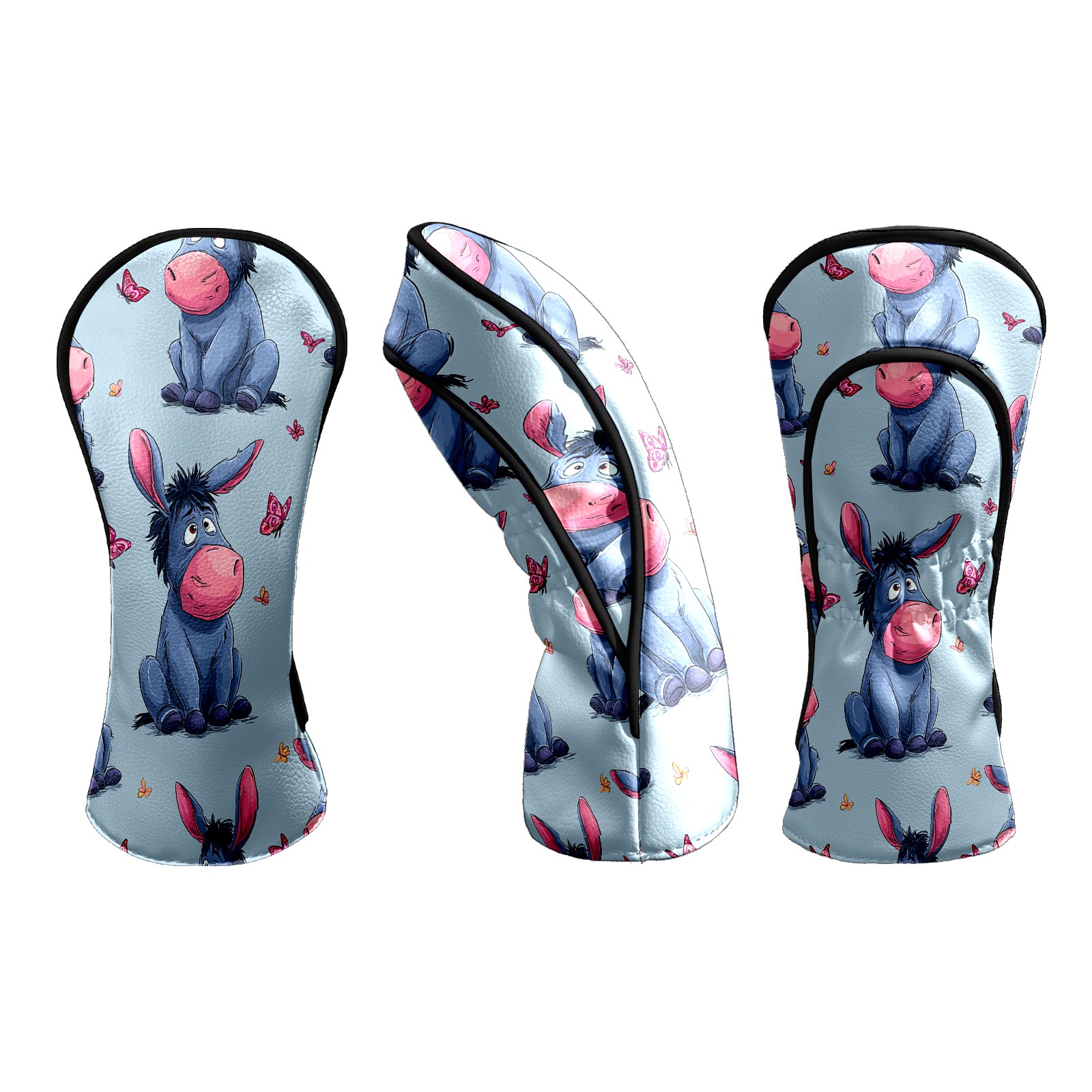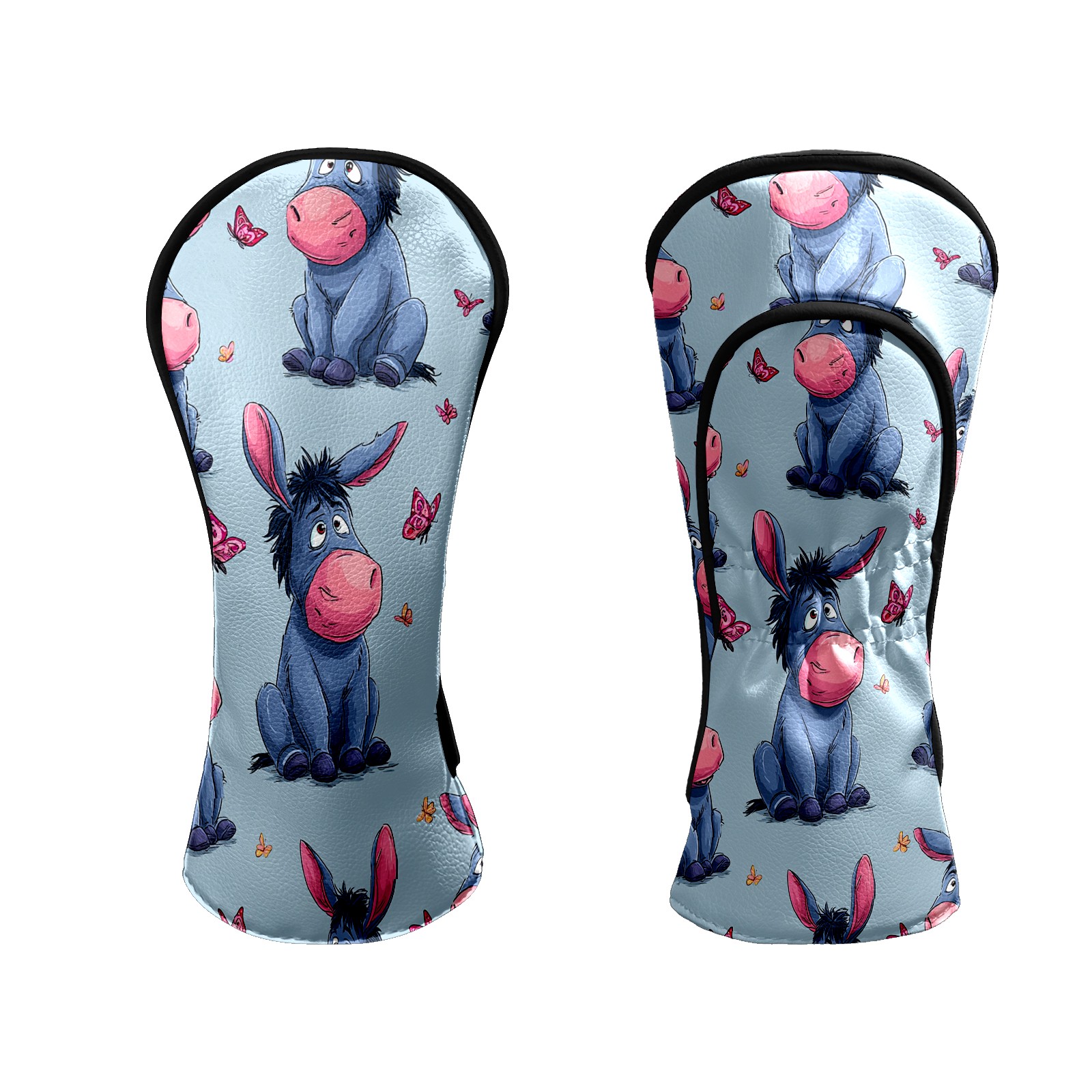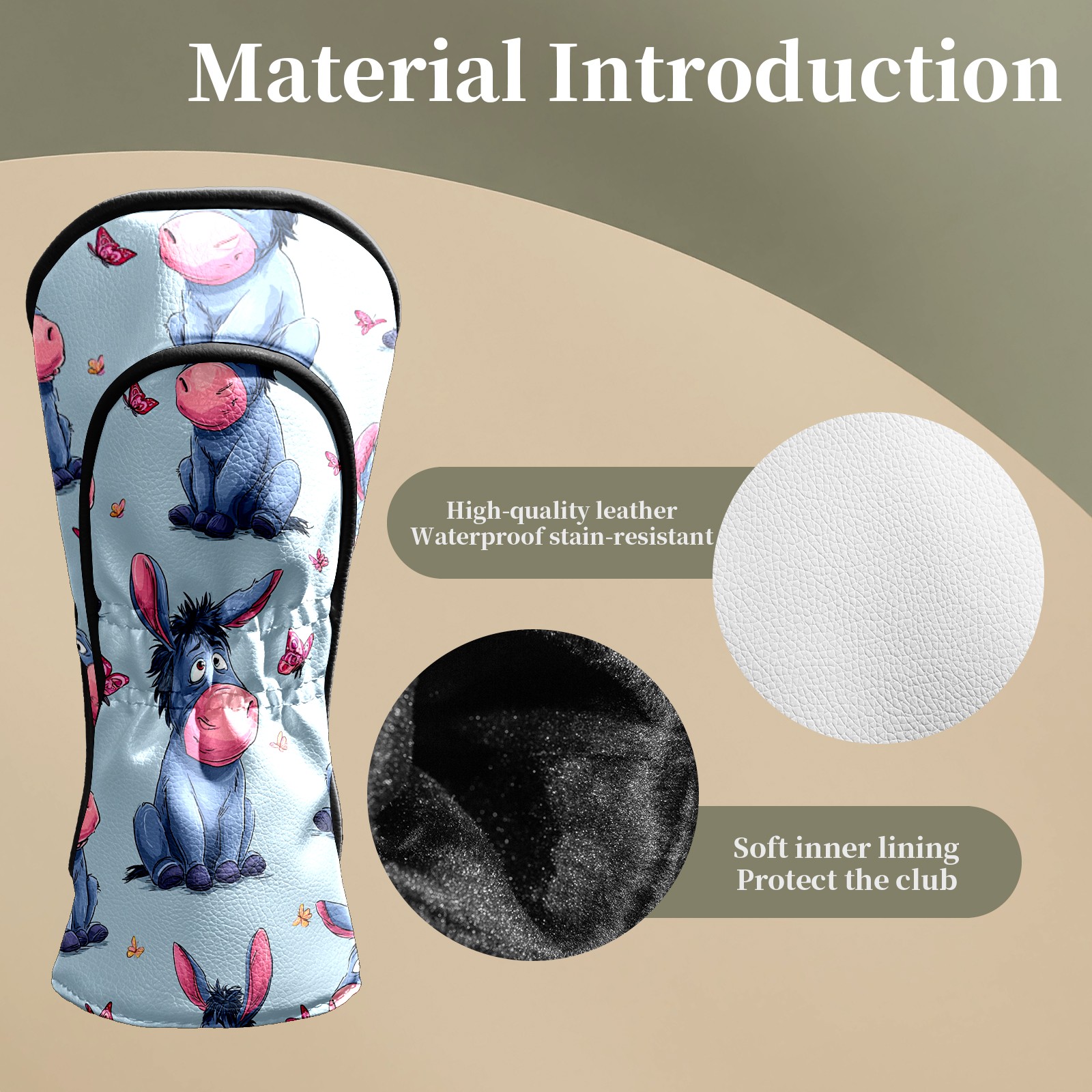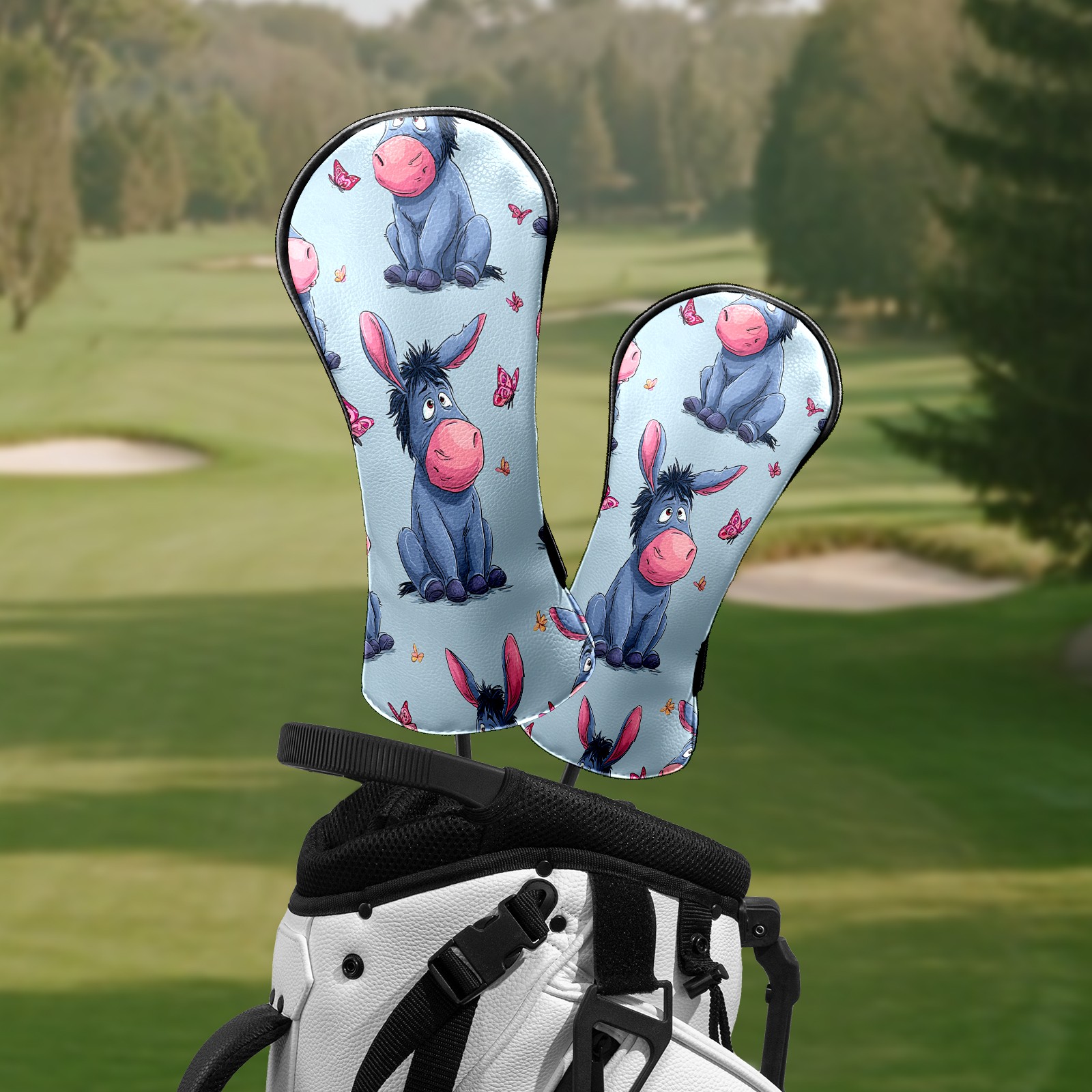 Golf Club Head Covers - Cute Blue Donkey Driver Fairway Headcover, Premium PU Leather, Protective Velvet Lining, Secure Elastic Band, Fits All Golf Brands, Perfect Gift for Golfers Men Women