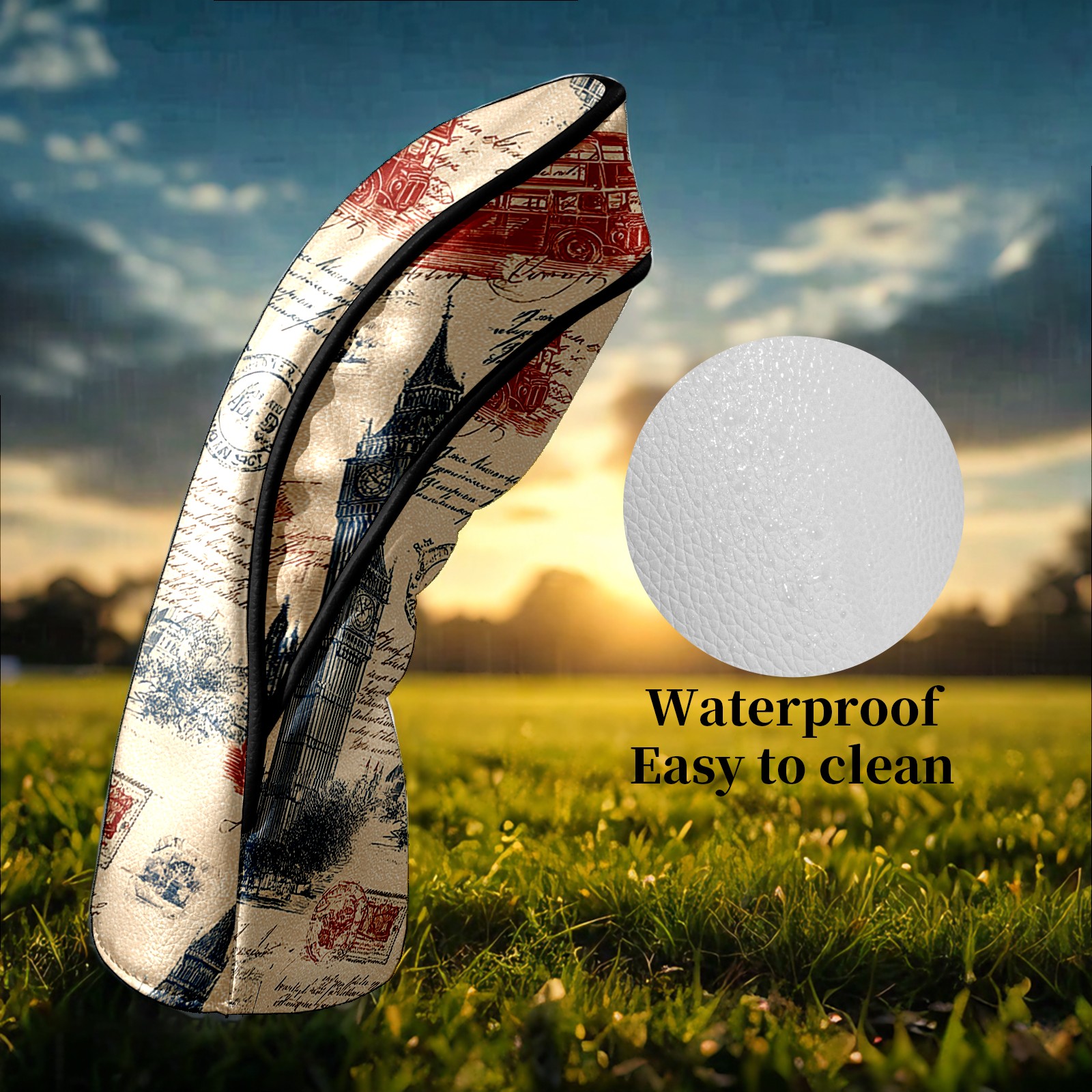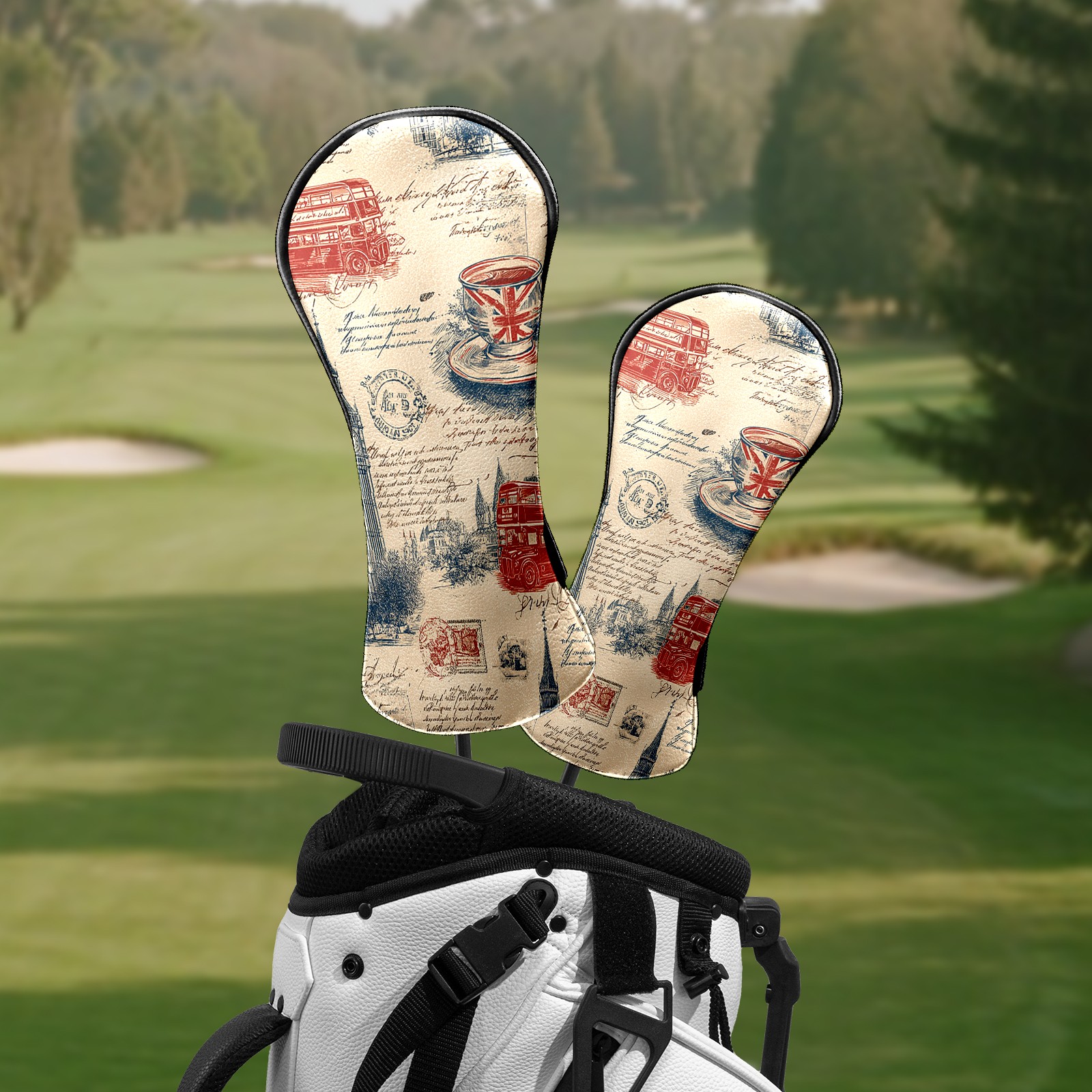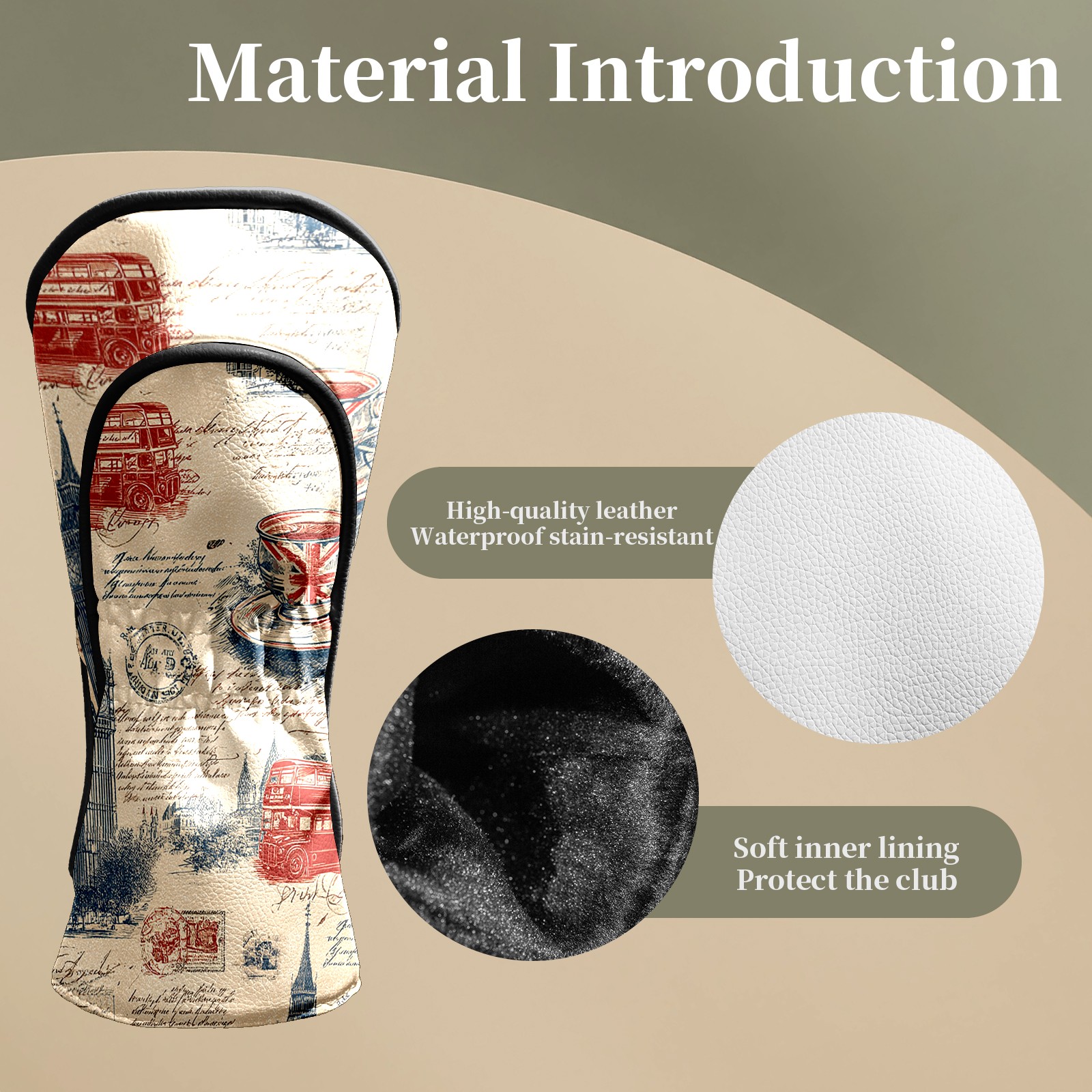 Golf Club Head Covers - Vintage Stamp Beige Driver Fairway Headcover, Premium PU Leather, Protective Velvet Lining, Secure Elastic Band, Fits All Golf Brands, Perfect Gift for Golfers Men Women
