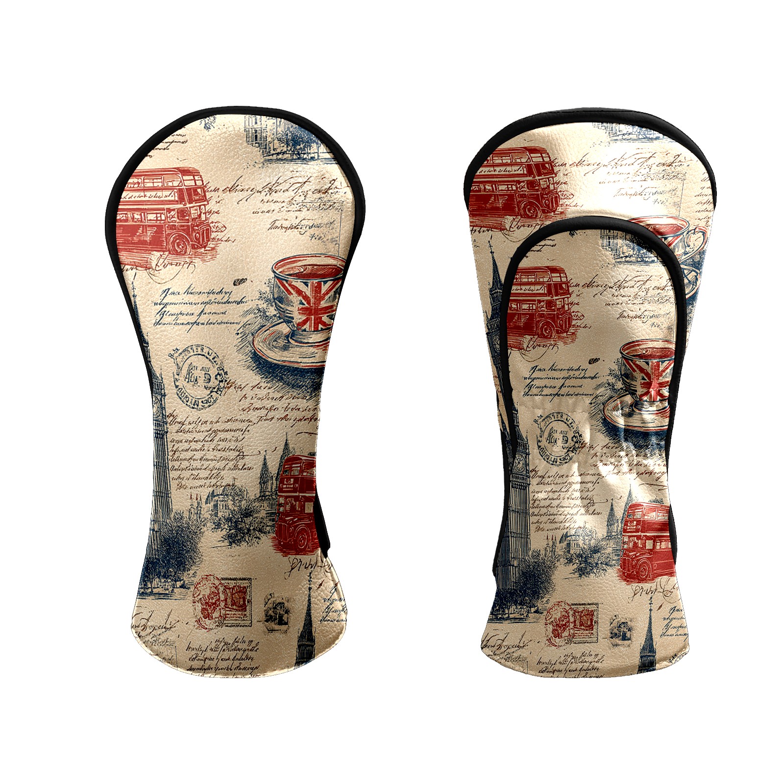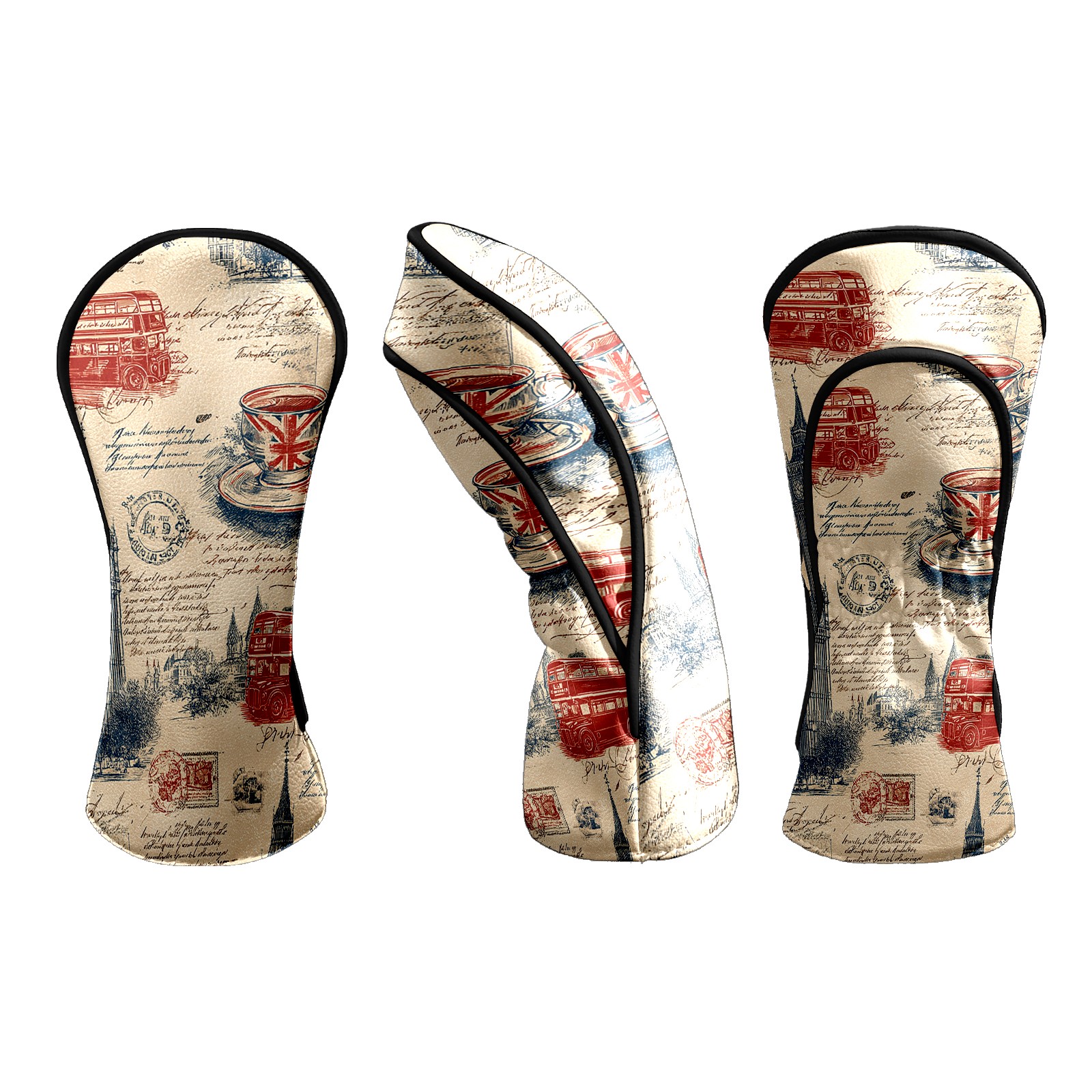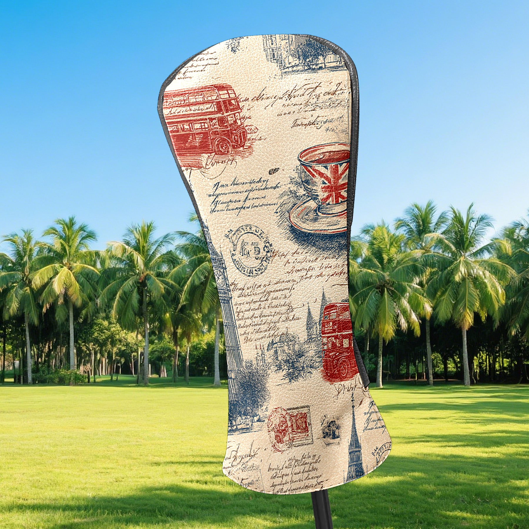 Golf Club Head Covers - Vintage Stamp Beige Driver Fairway Headcover, Premium PU Leather, Protective Velvet Lining, Secure Elastic Band, Fits All Golf Brands, Perfect Gift for Golfers Men Women