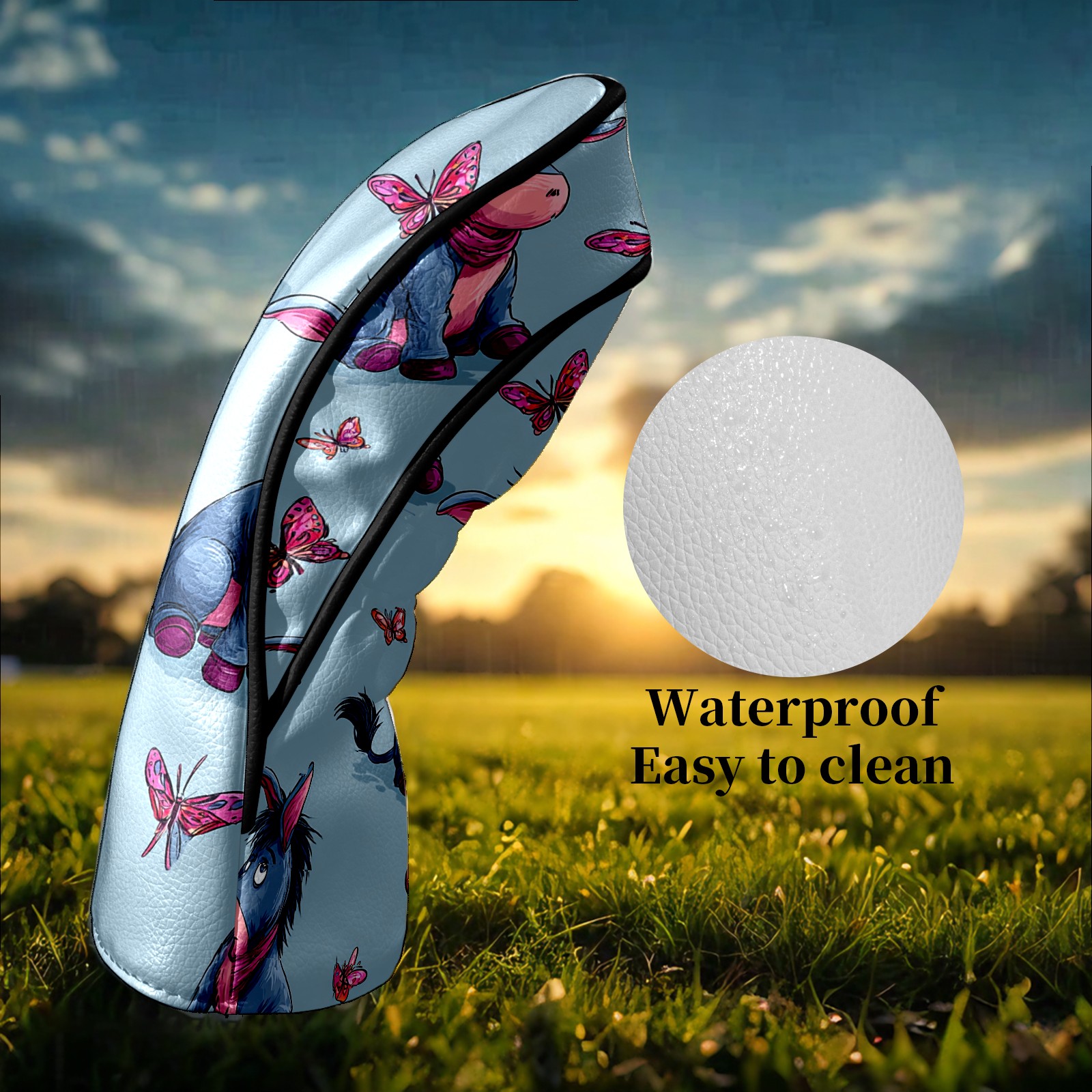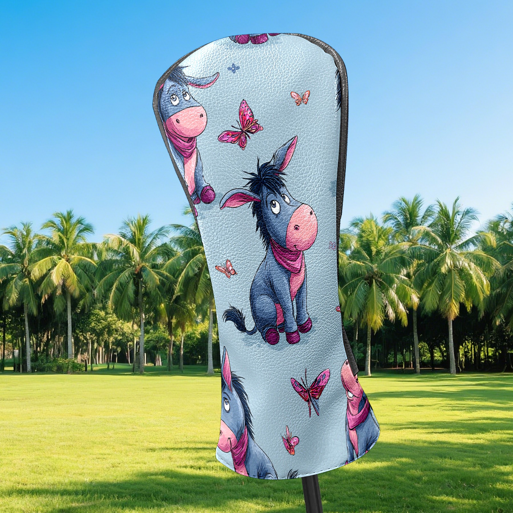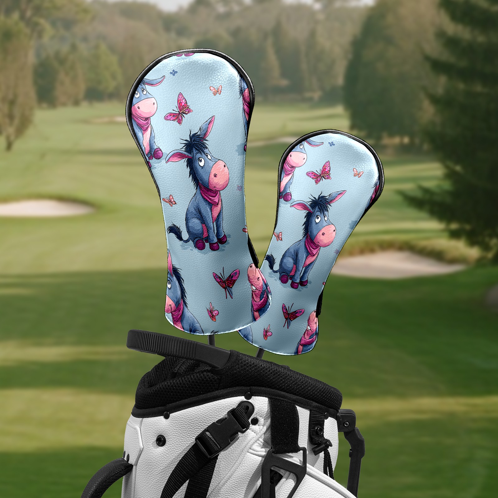 Golf Club Head Covers - Donkey Butterfly Blue Driver Fairway Headcover, Premium PU Leather, Protective Velvet Lining, Secure Elastic Band, Fits All Golf Brands, Perfect Gift for Golfers Men Women