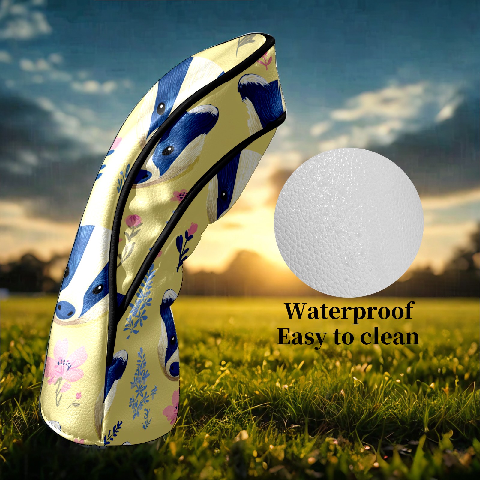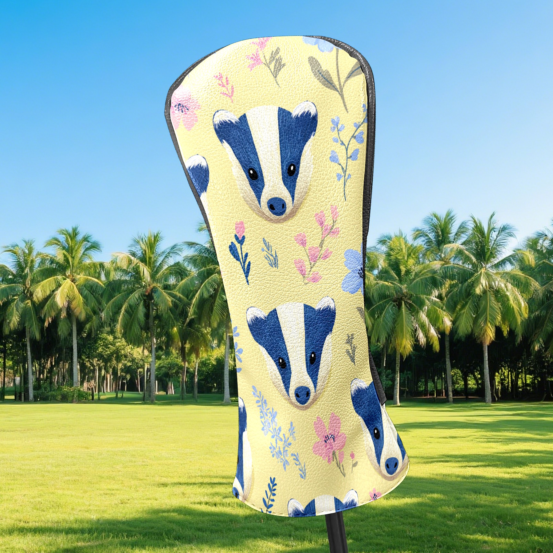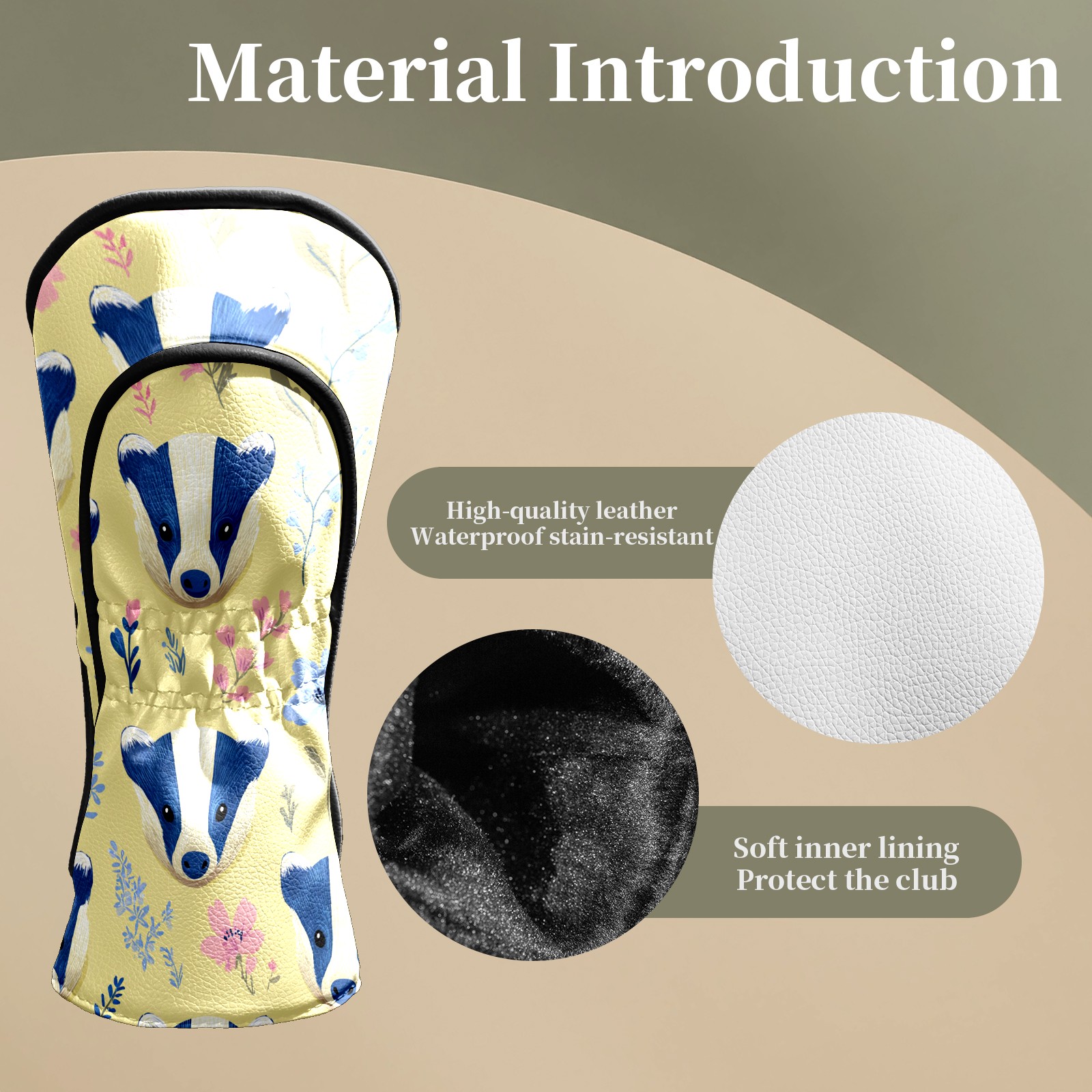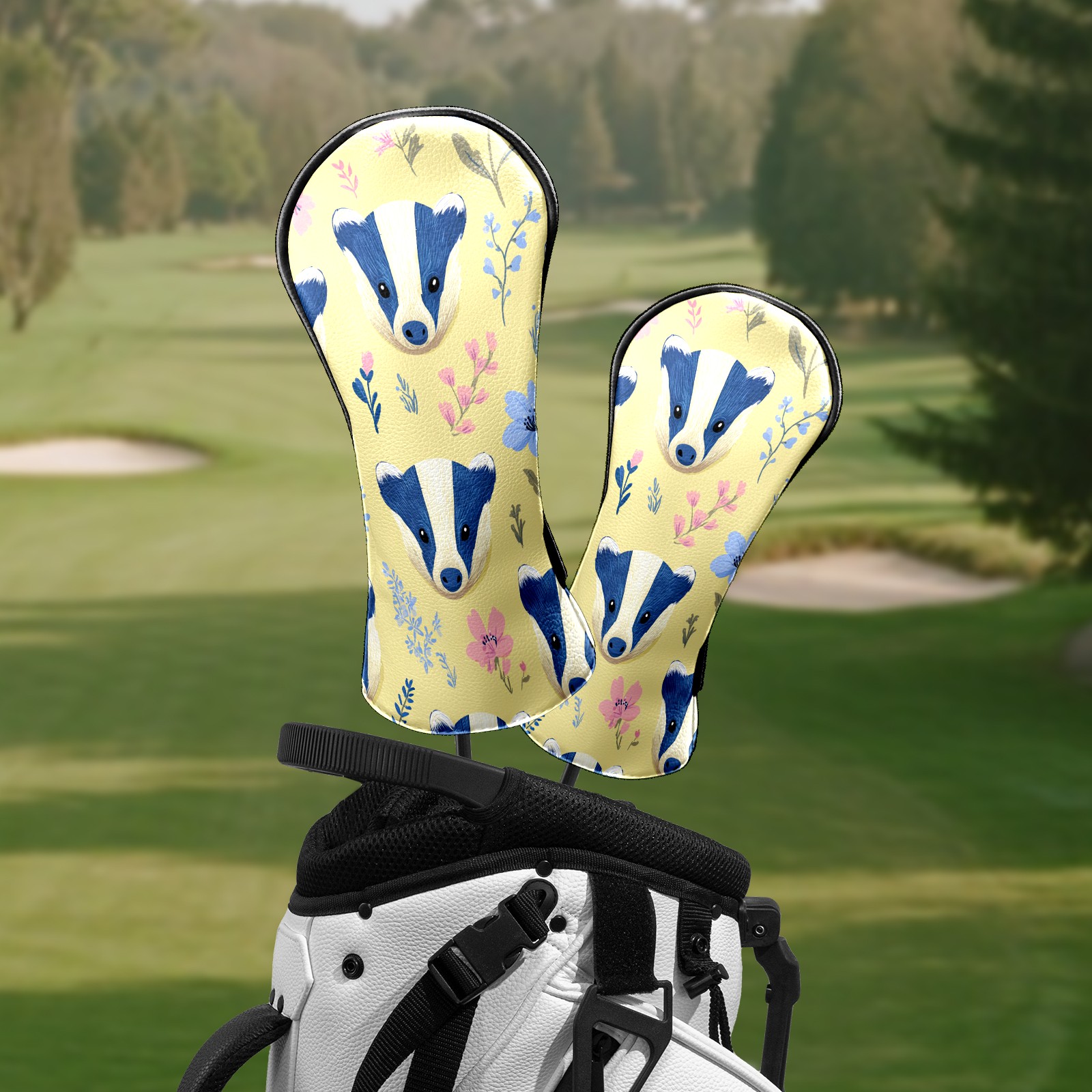 Golf Club Head Covers - Cute Badger Yellow Driver Fairway Headcover, Premium PU Leather, Protective Velvet Lining, Secure Elastic Band, Fits All Golf Brands, Perfect Gift for Golfers Men Women