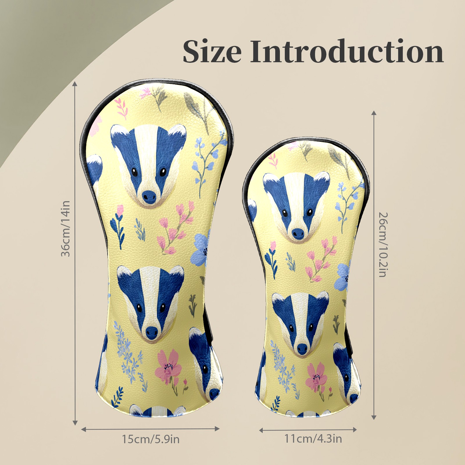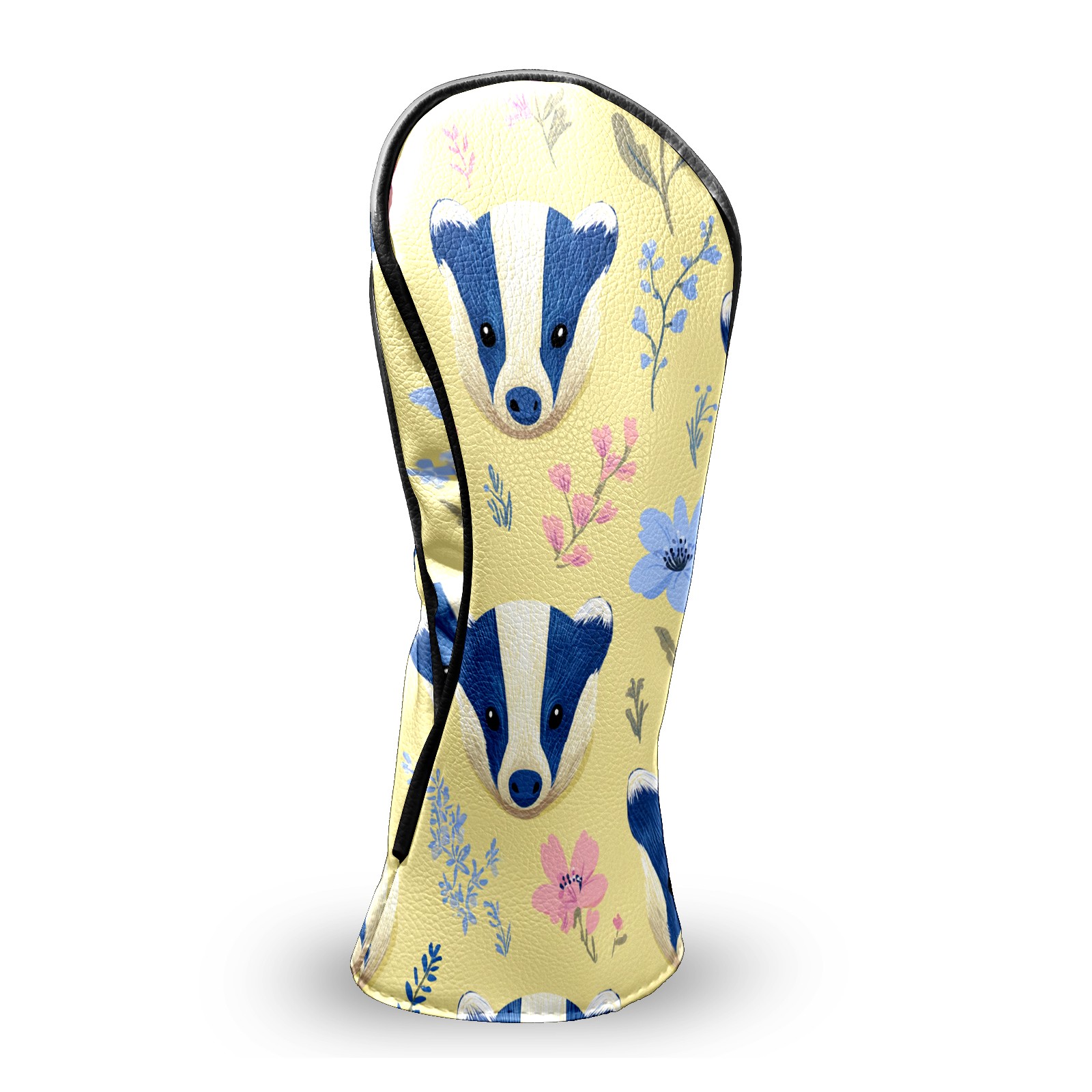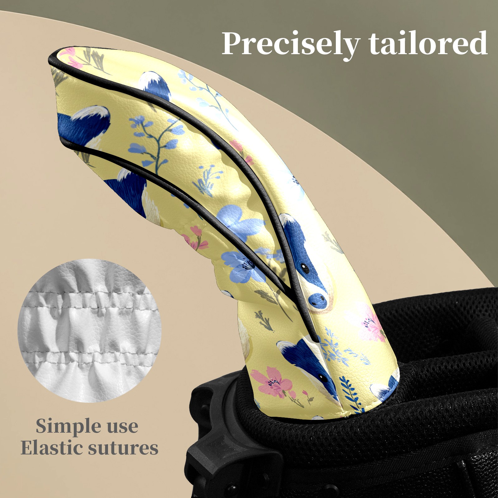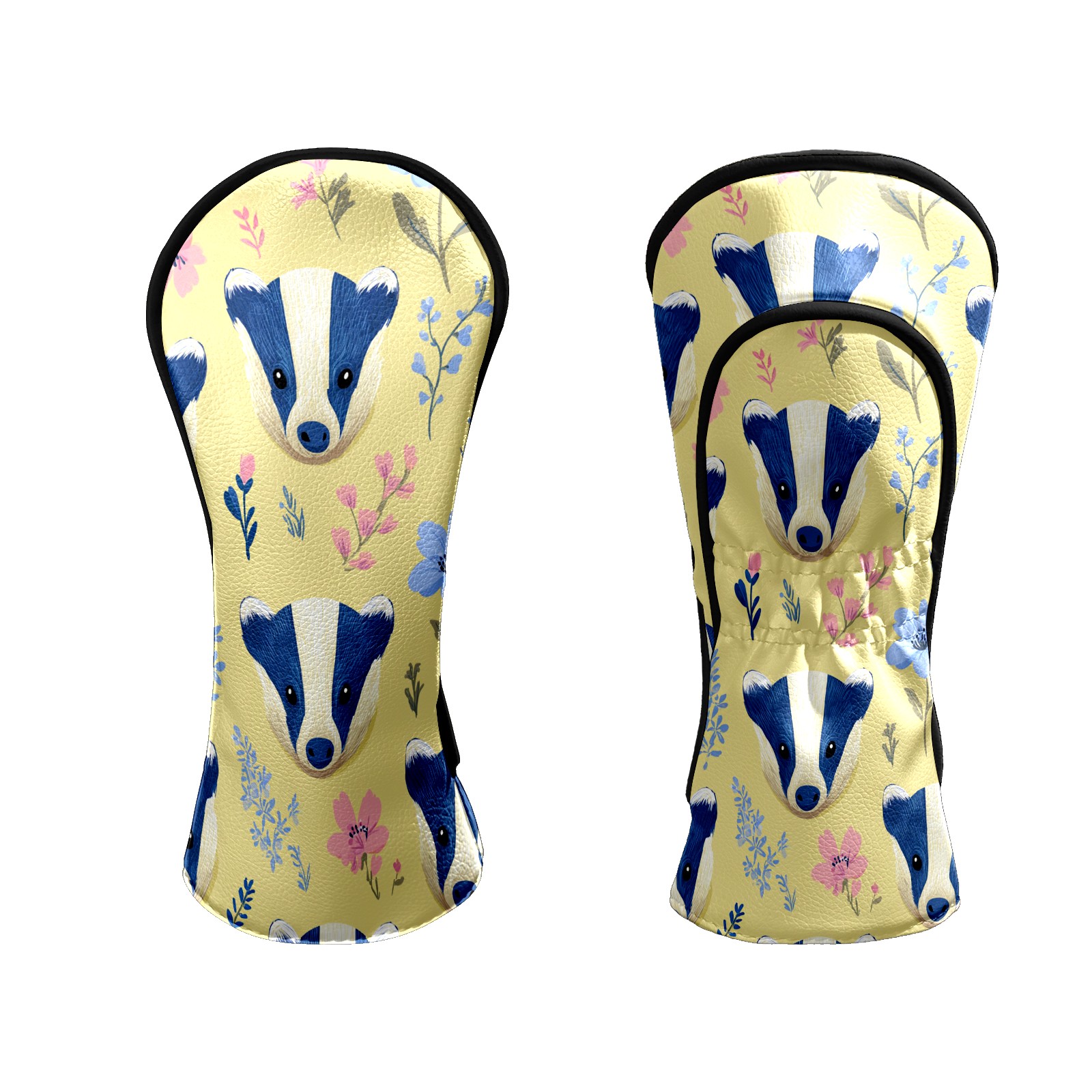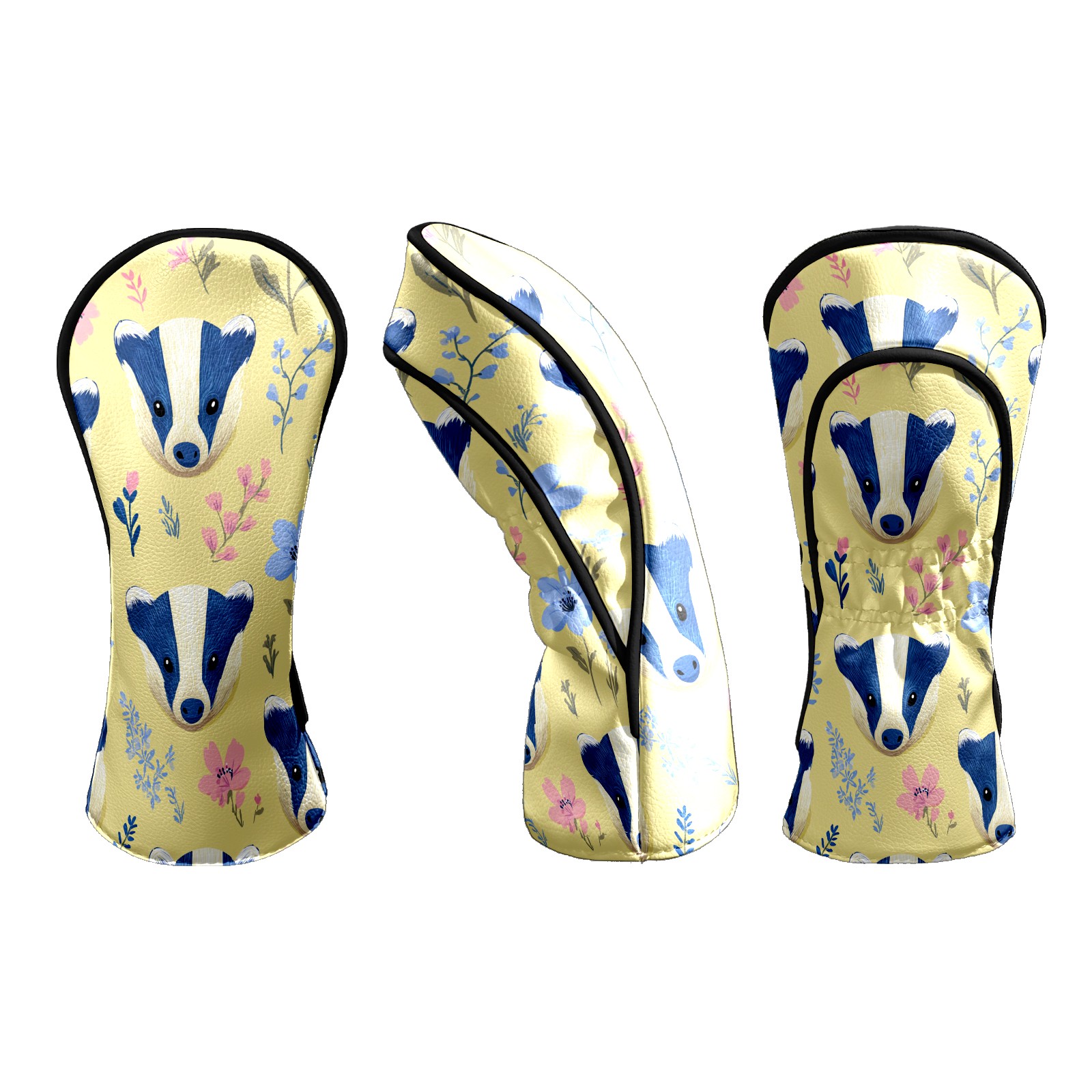 Golf Club Head Covers - Cute Badger Yellow Driver Fairway Headcover, Premium PU Leather, Protective Velvet Lining, Secure Elastic Band, Fits All Golf Brands, Perfect Gift for Golfers Men Women