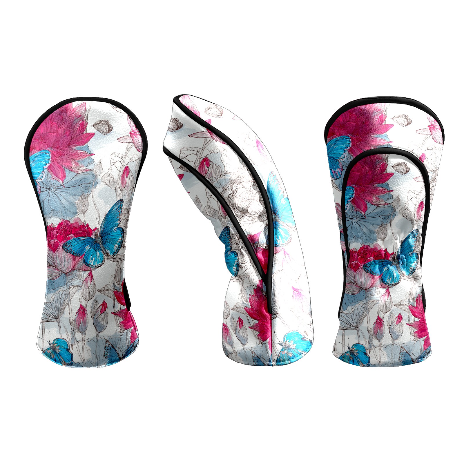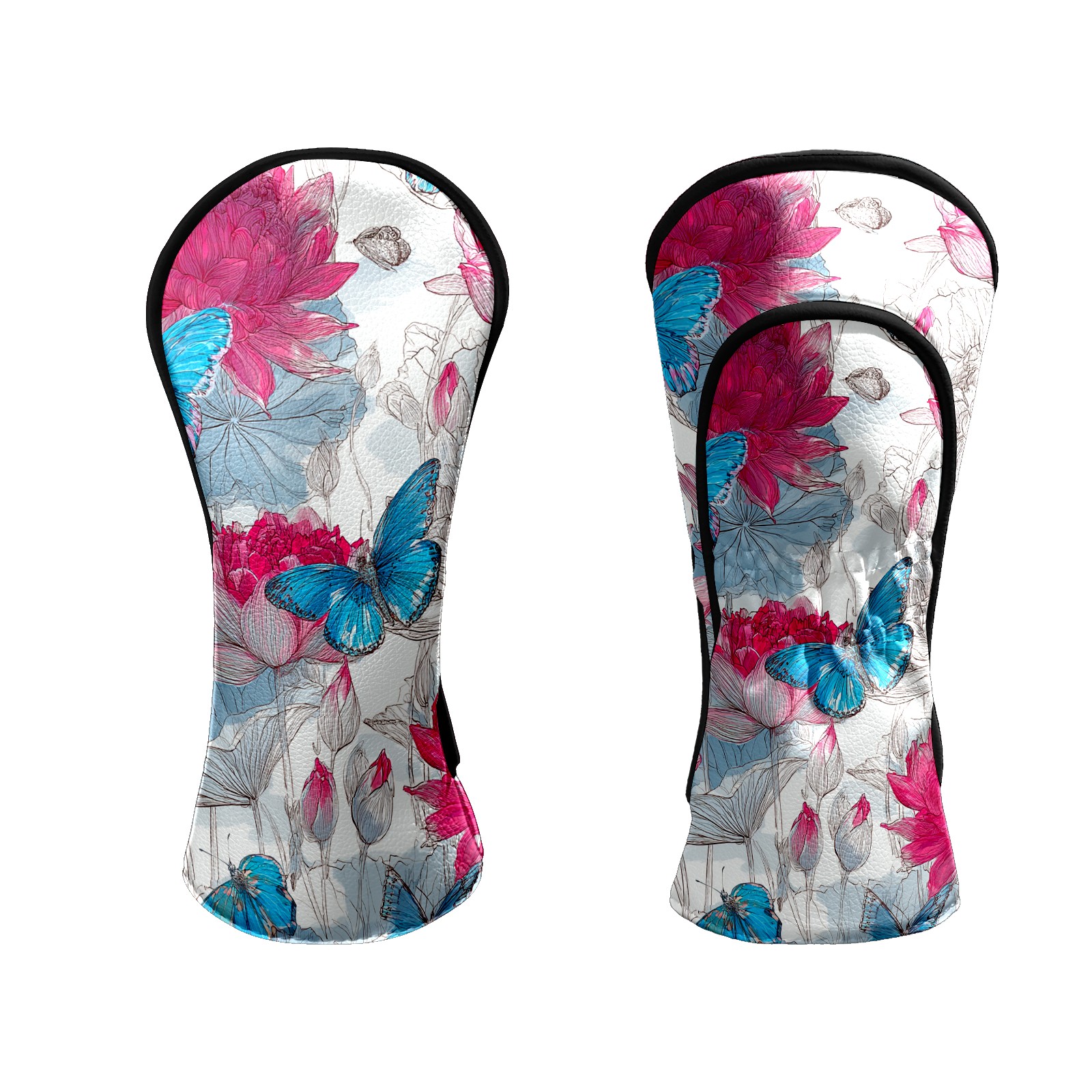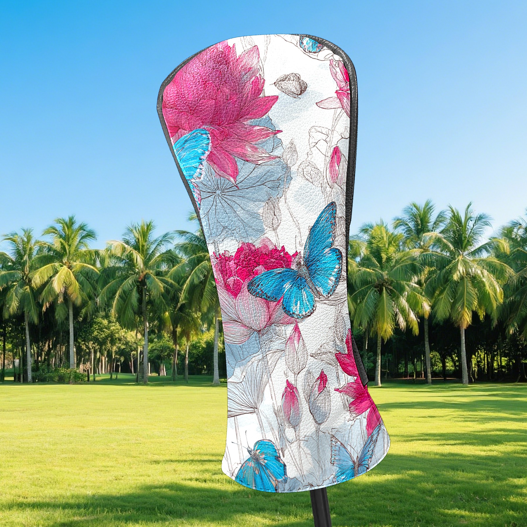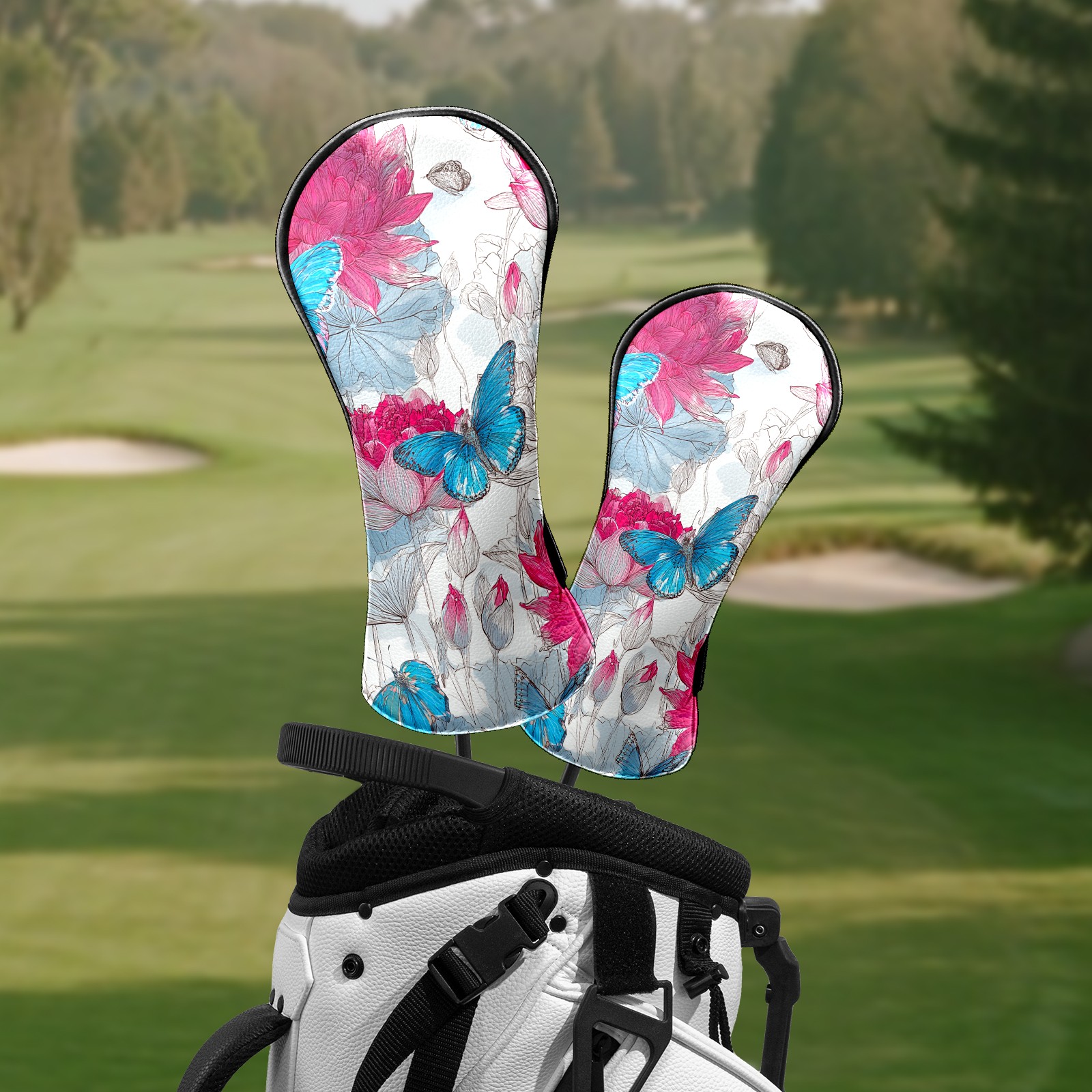 Golf Club Head Covers - Pink Blue Butterflies Driver Fairway Headcover, Premium PU Leather, Protective Velvet Lining, Secure Elastic Band, Fits All Golf Brands, Perfect Gift for Golfers Men Women