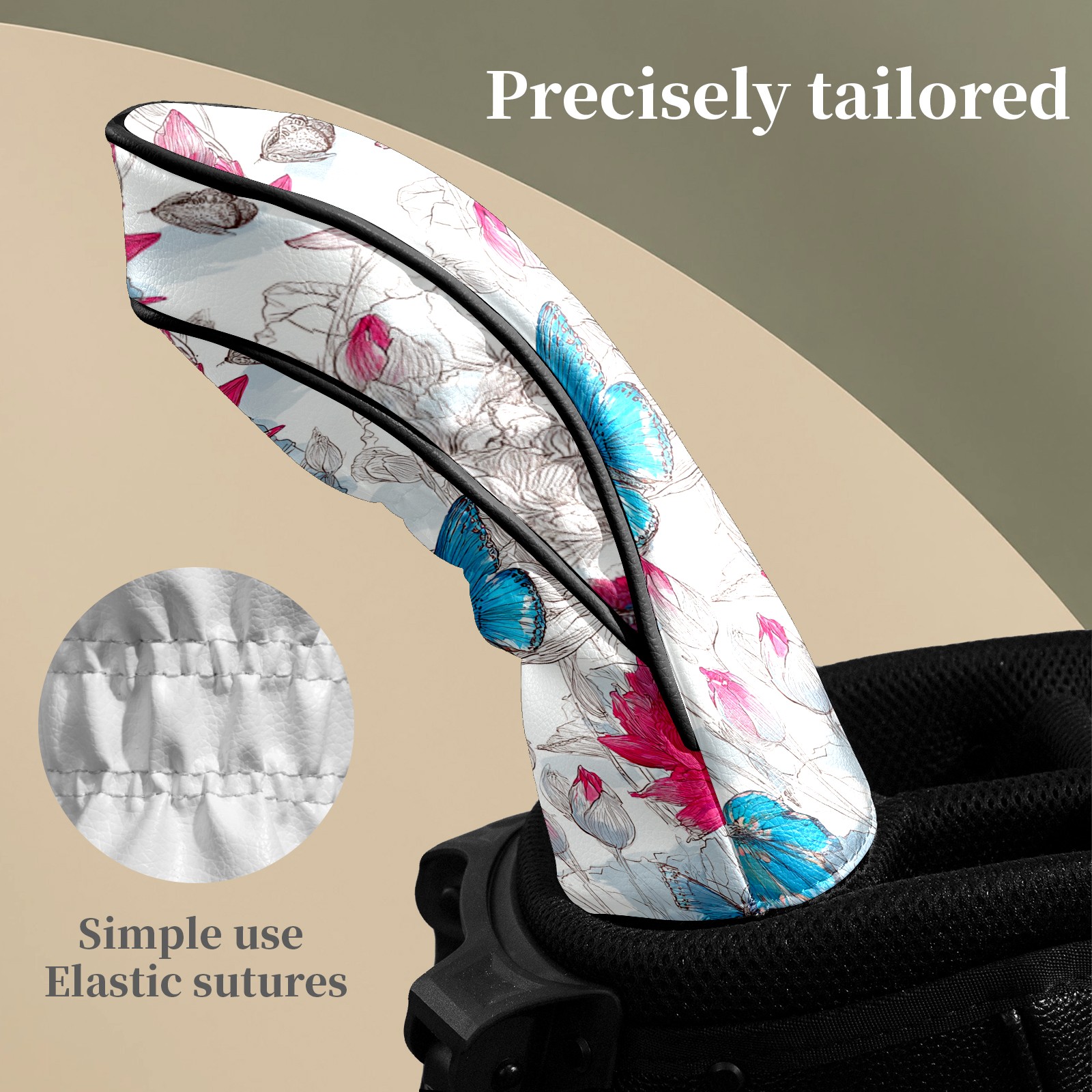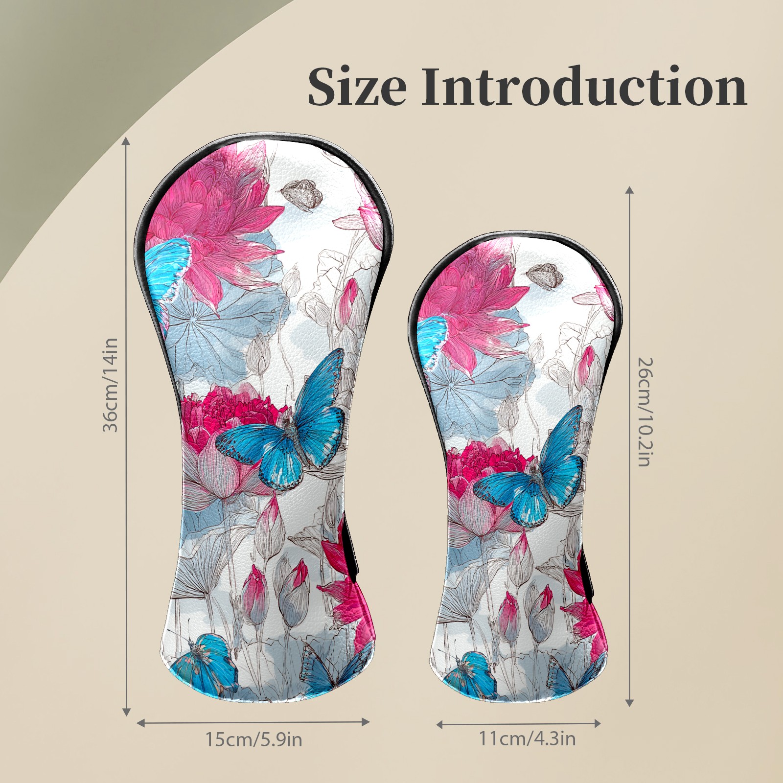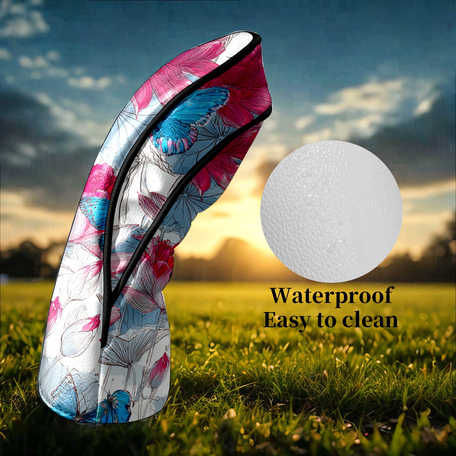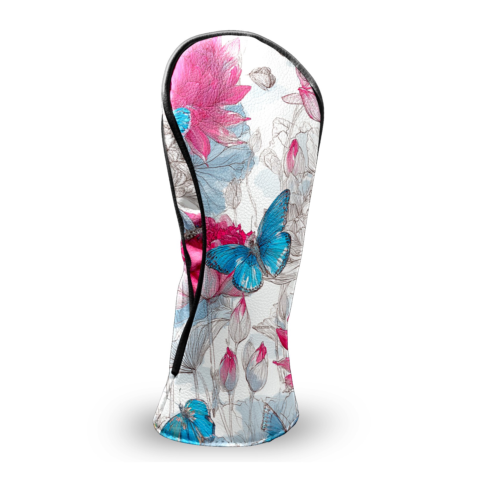 Golf Club Head Covers - Pink Blue Butterflies Driver Fairway Headcover, Premium PU Leather, Protective Velvet Lining, Secure Elastic Band, Fits All Golf Brands, Perfect Gift for Golfers Men Women