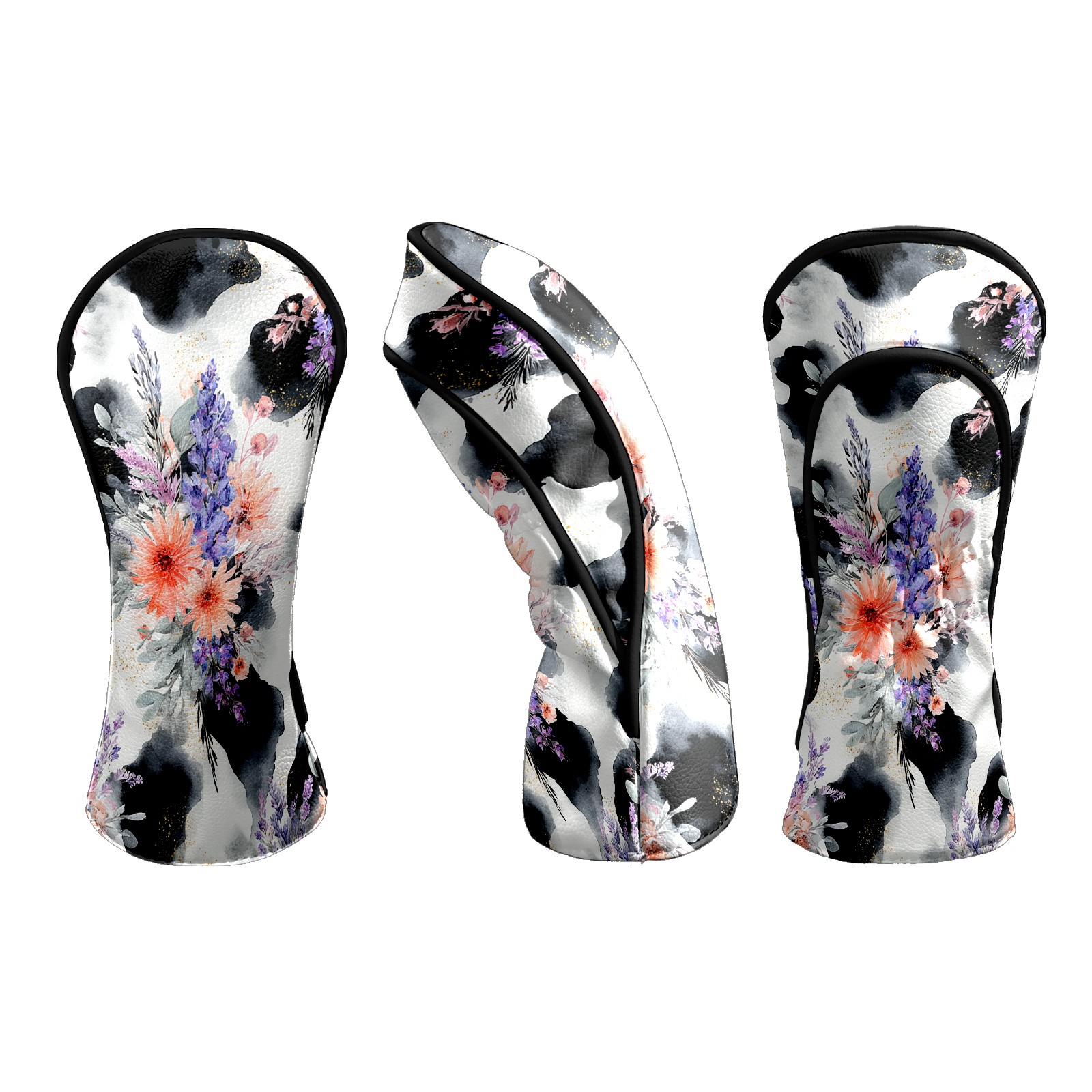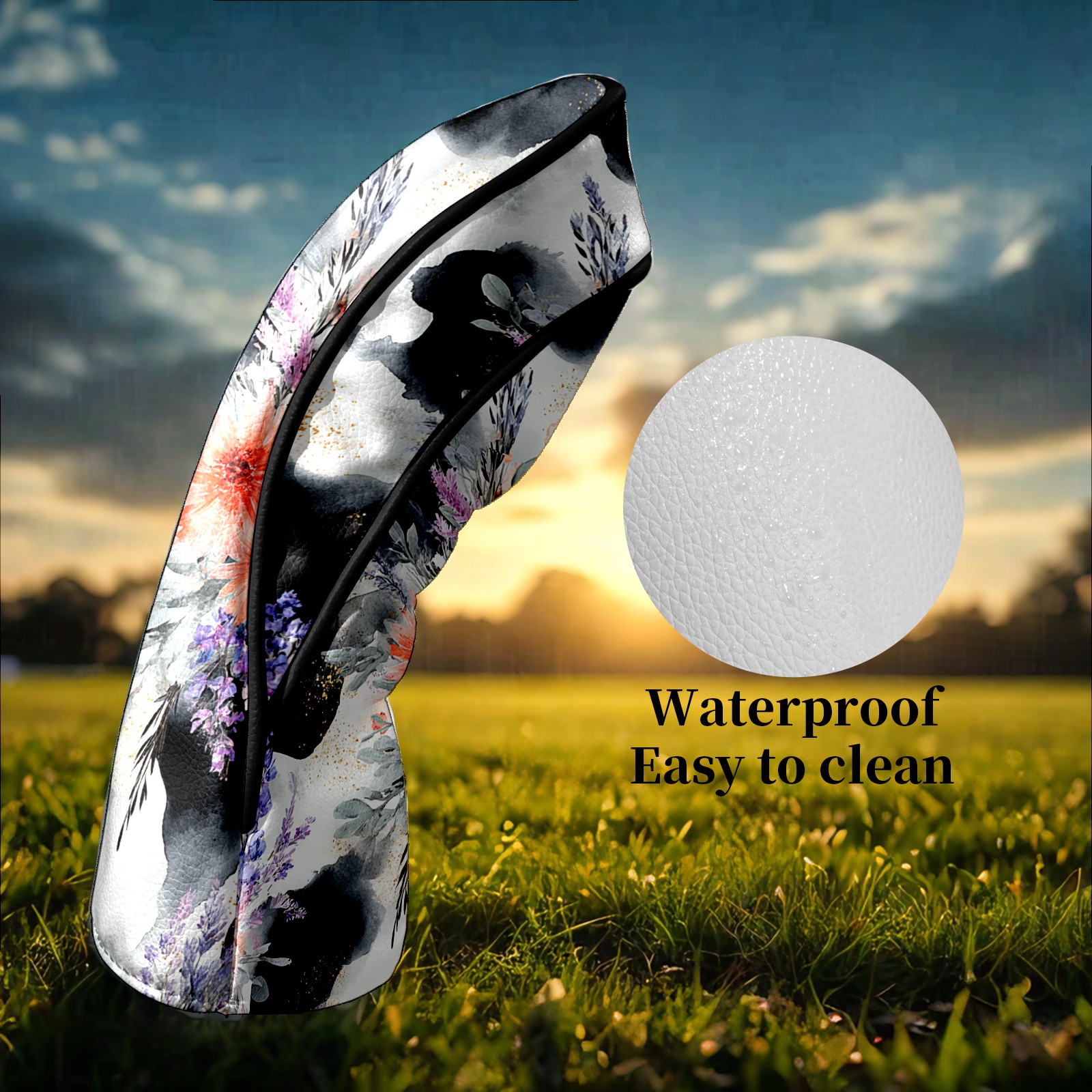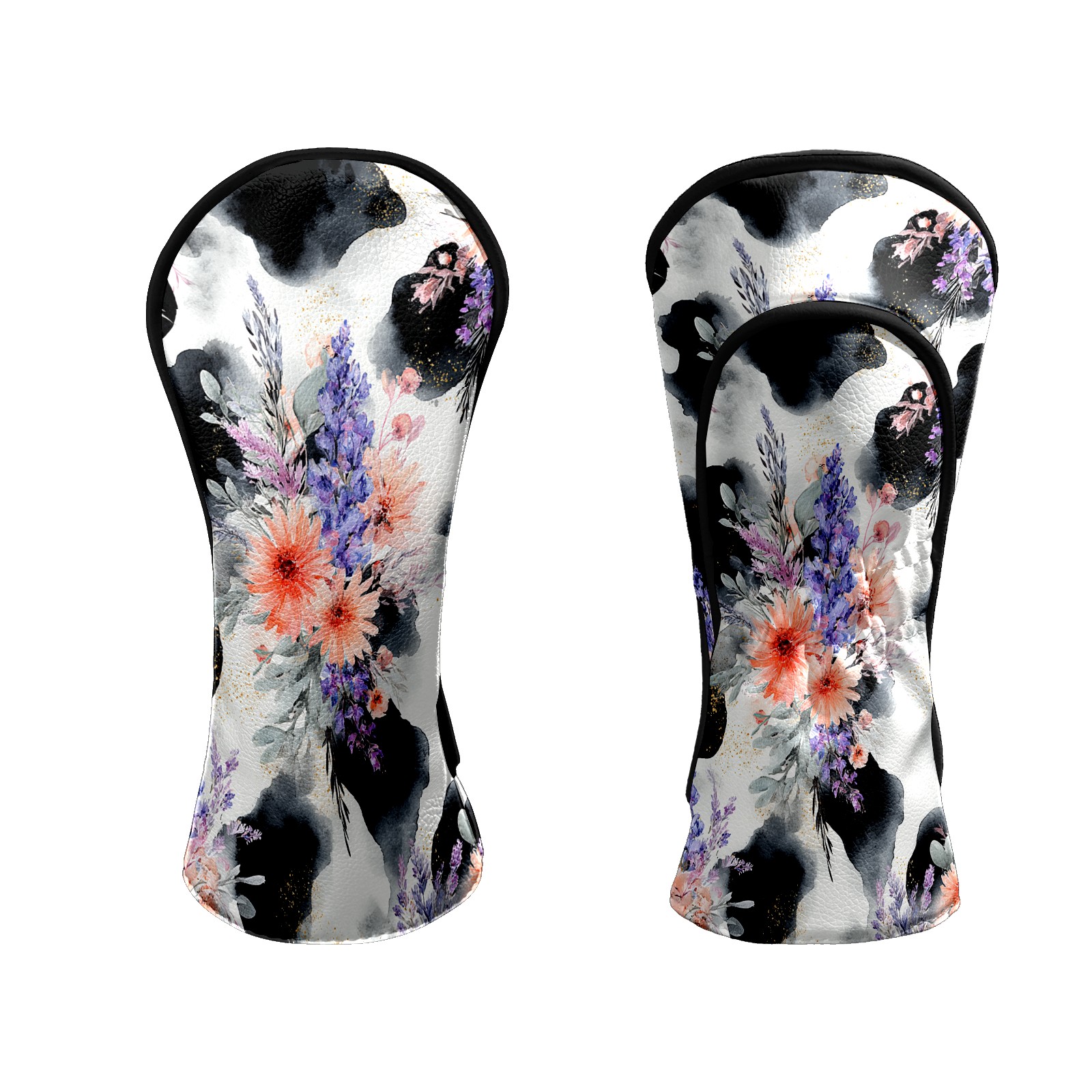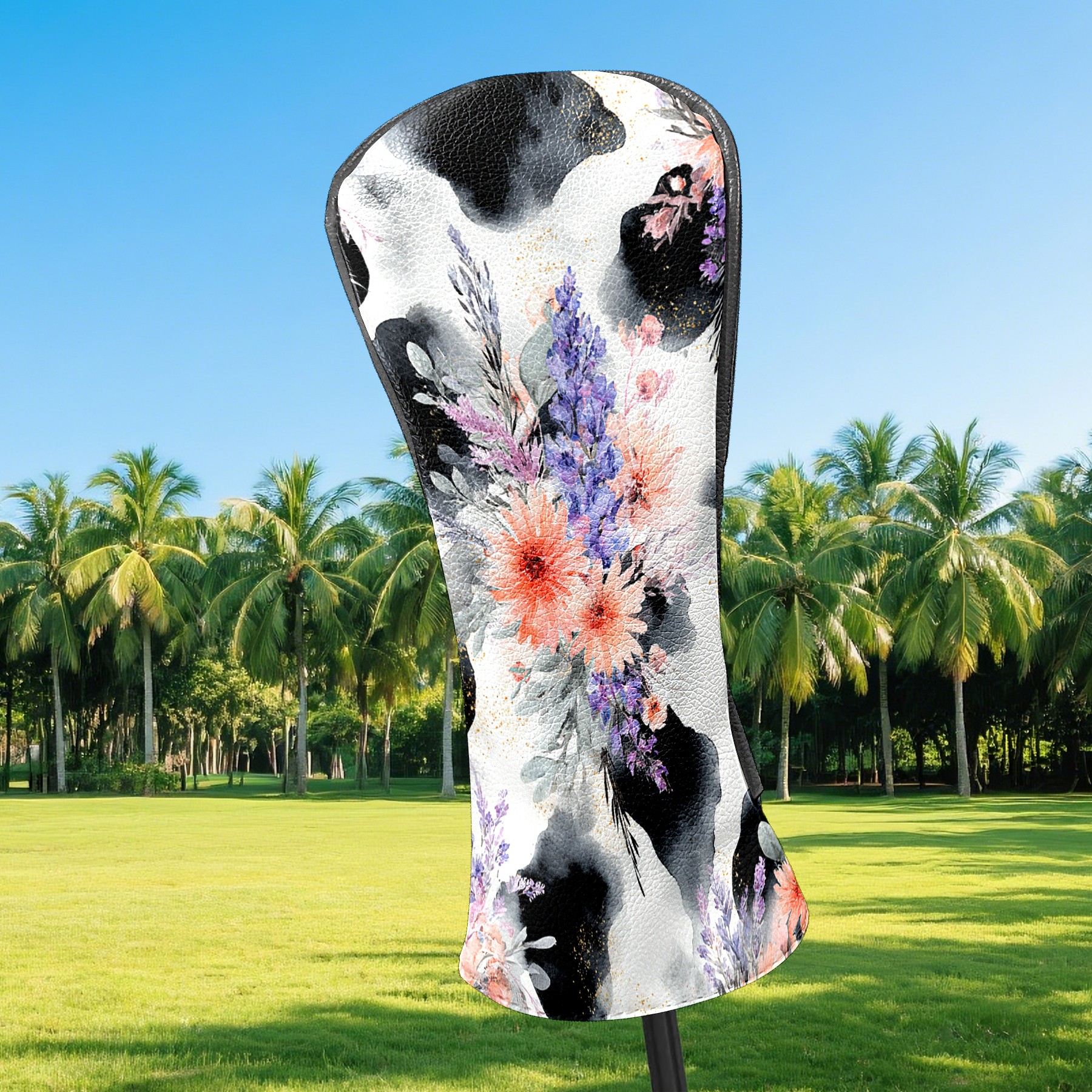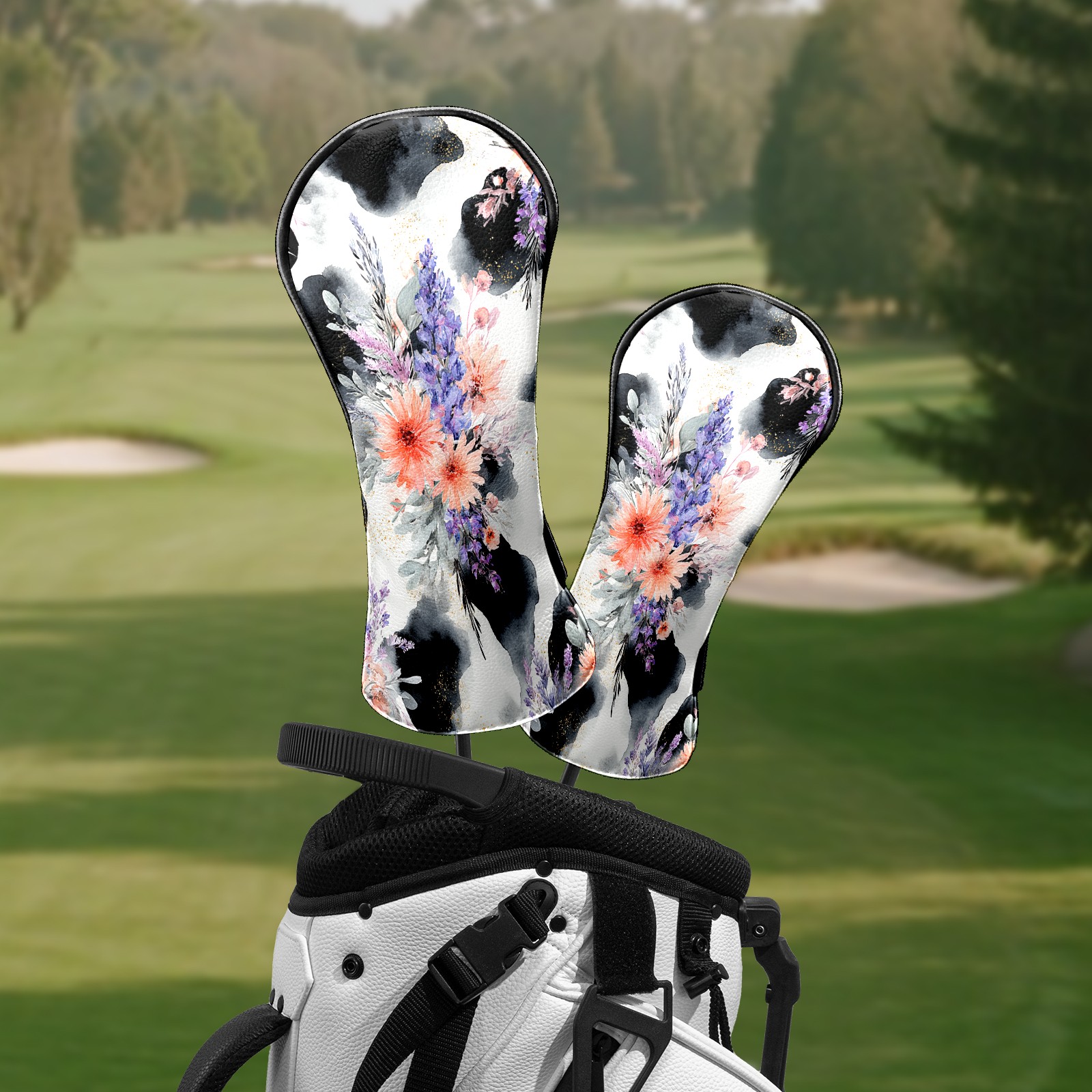 Golf Club Head Covers - CatFlower Black Driver Fairway Headcover, Premium PU Leather, Protective Velvet Lining, Secure Elastic Band, Fits All Golf Brands, Perfect Gift for Golfers Men Women