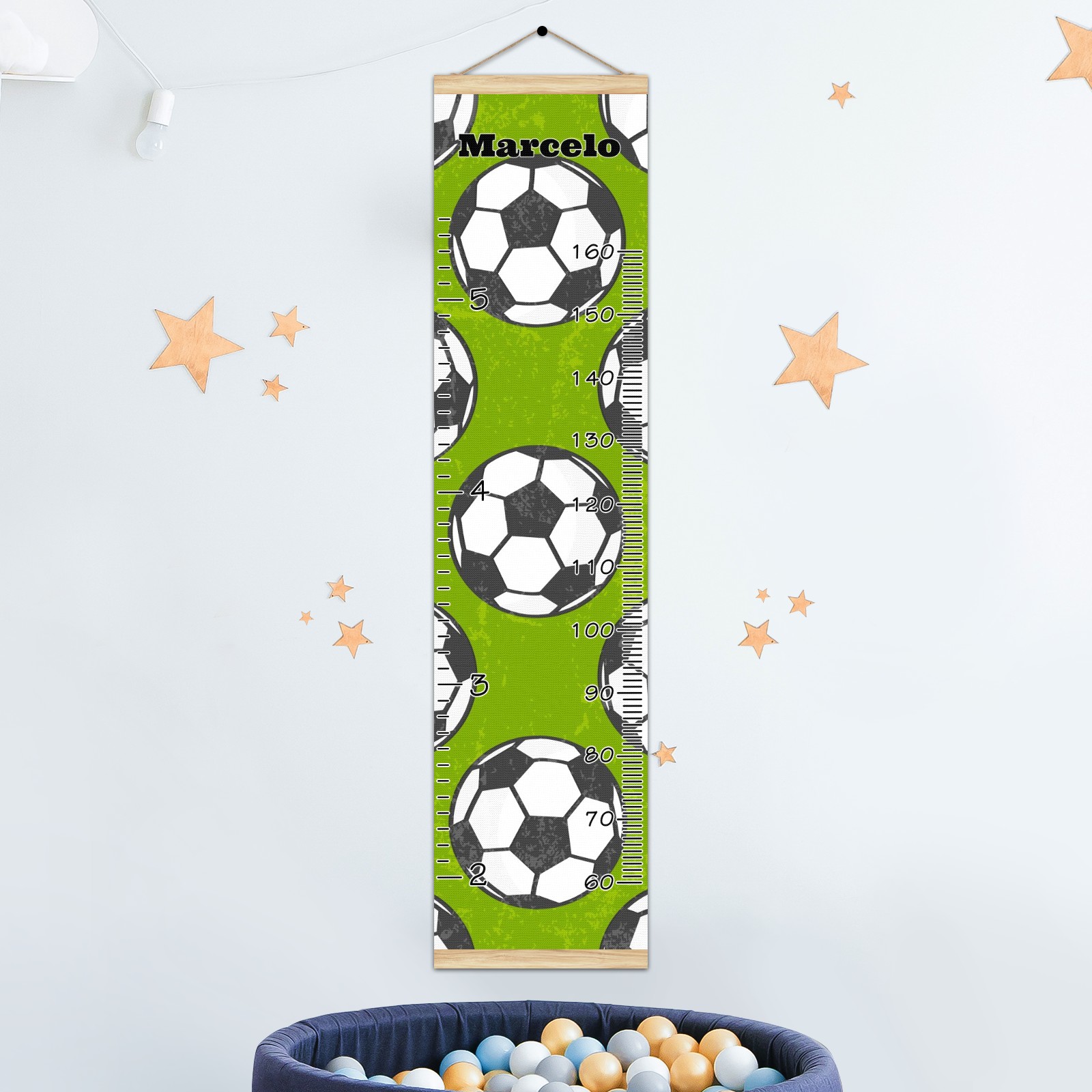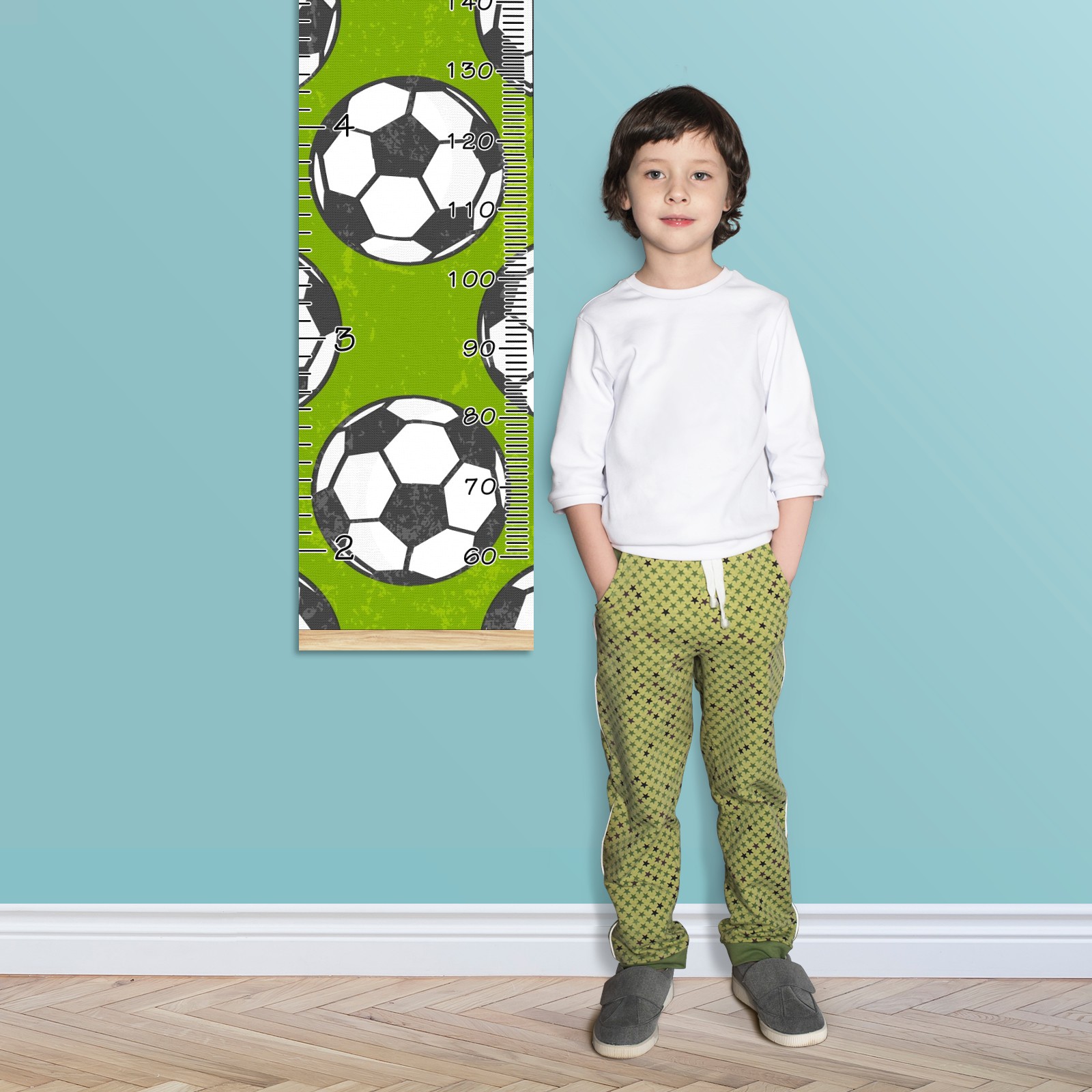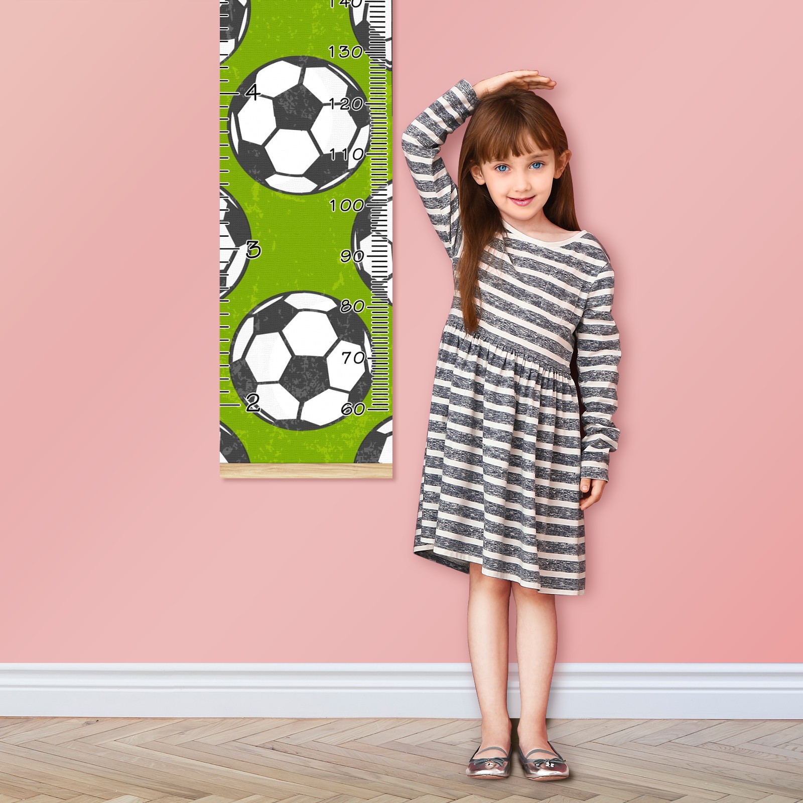 Personalized Kids Name Growth Chart Ruler for Wall Wood Frame Canvas Height Measure Chart 13.4x56 in Hanging Growth Chart Soccor Green12.8 Boys Girls Room Decor