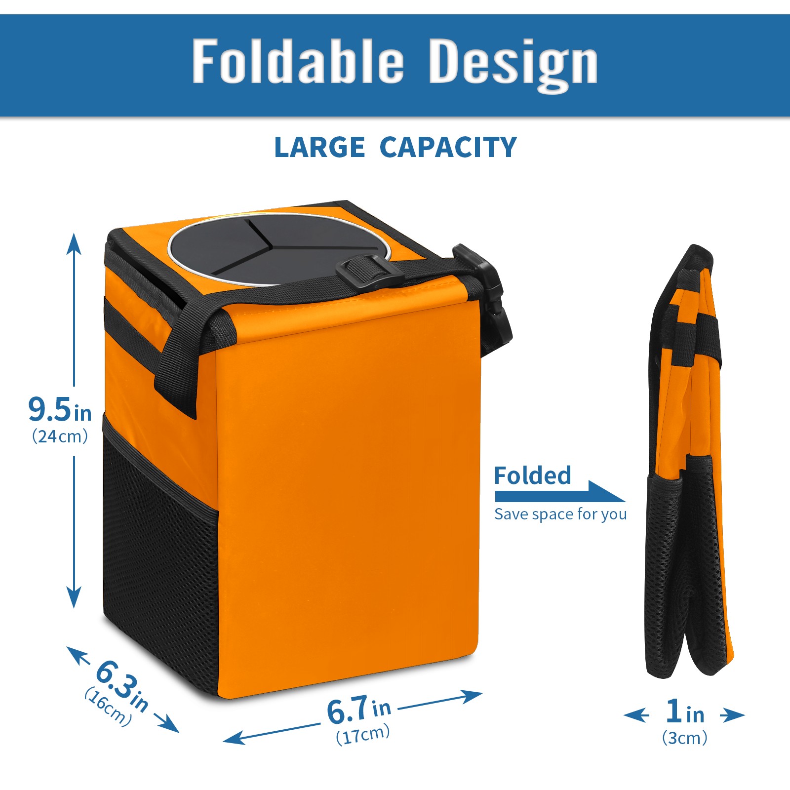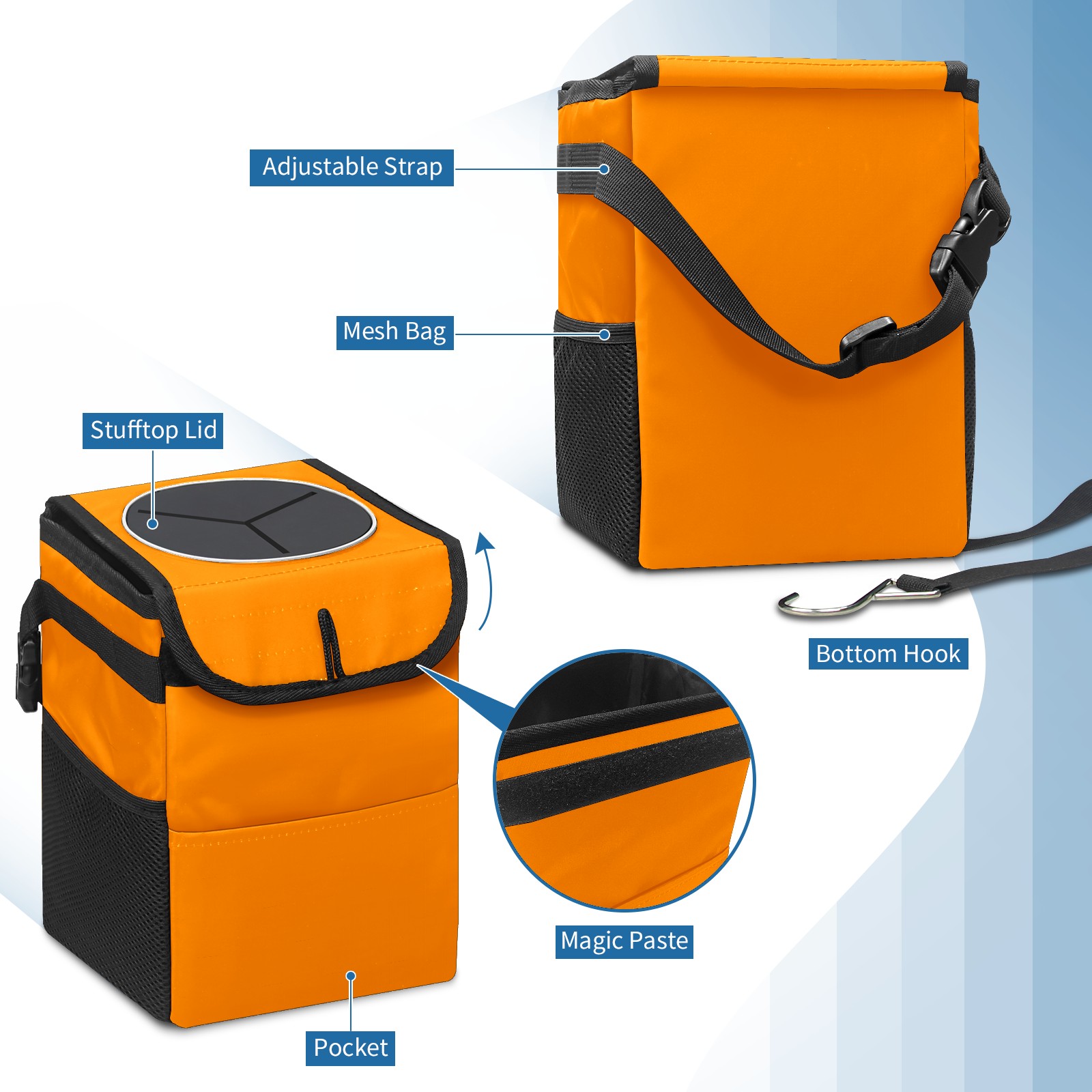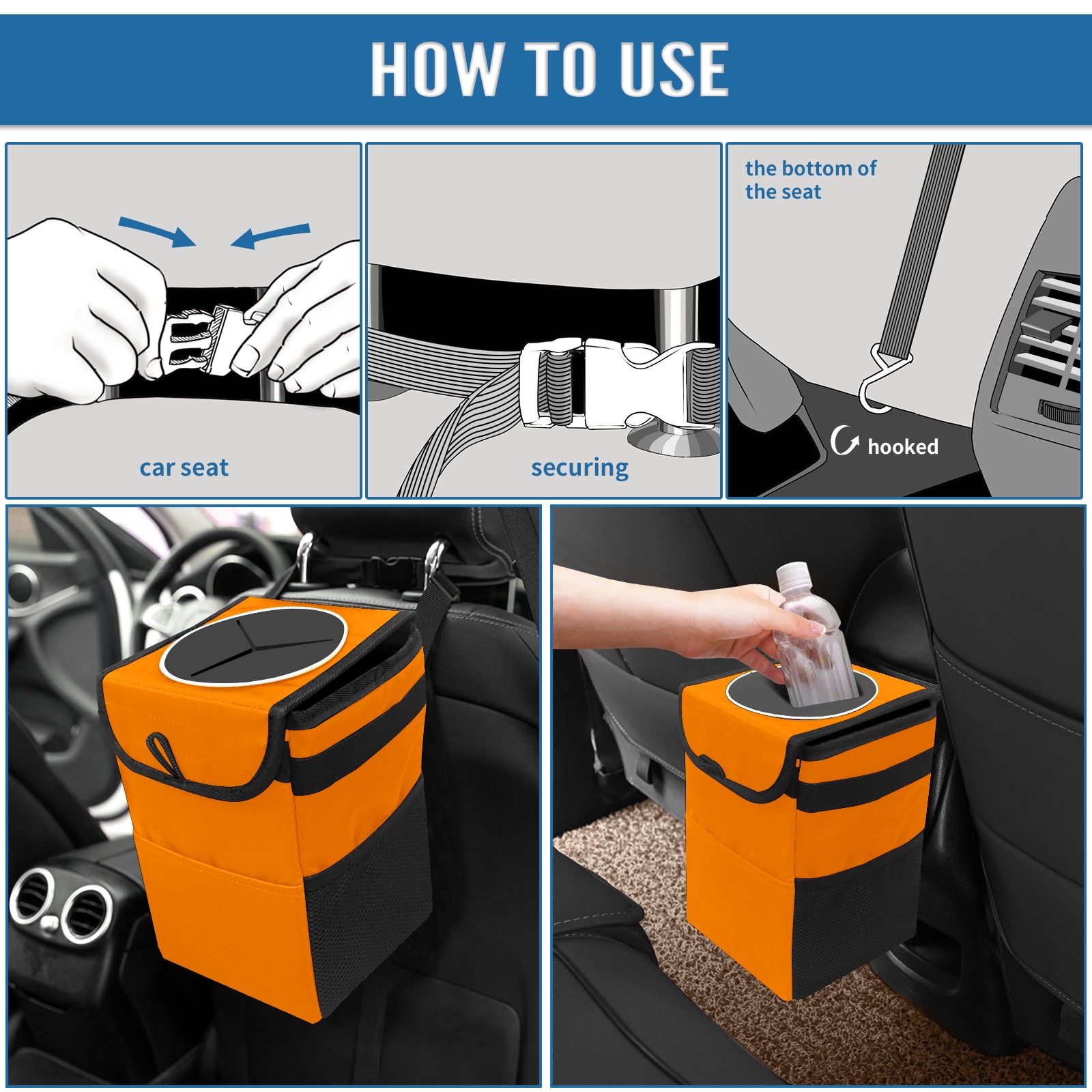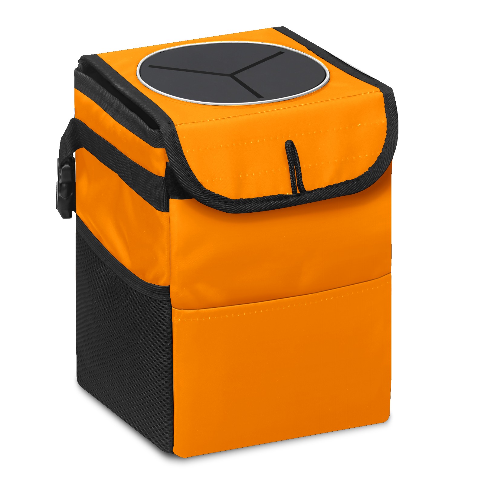 Universal Hanging Car Trash Can - Leakproof Design with Secure Lid | Fits SUV, Truck, Van | Front & Back Seat Friendly | Smart Automotive Accessory Orange2