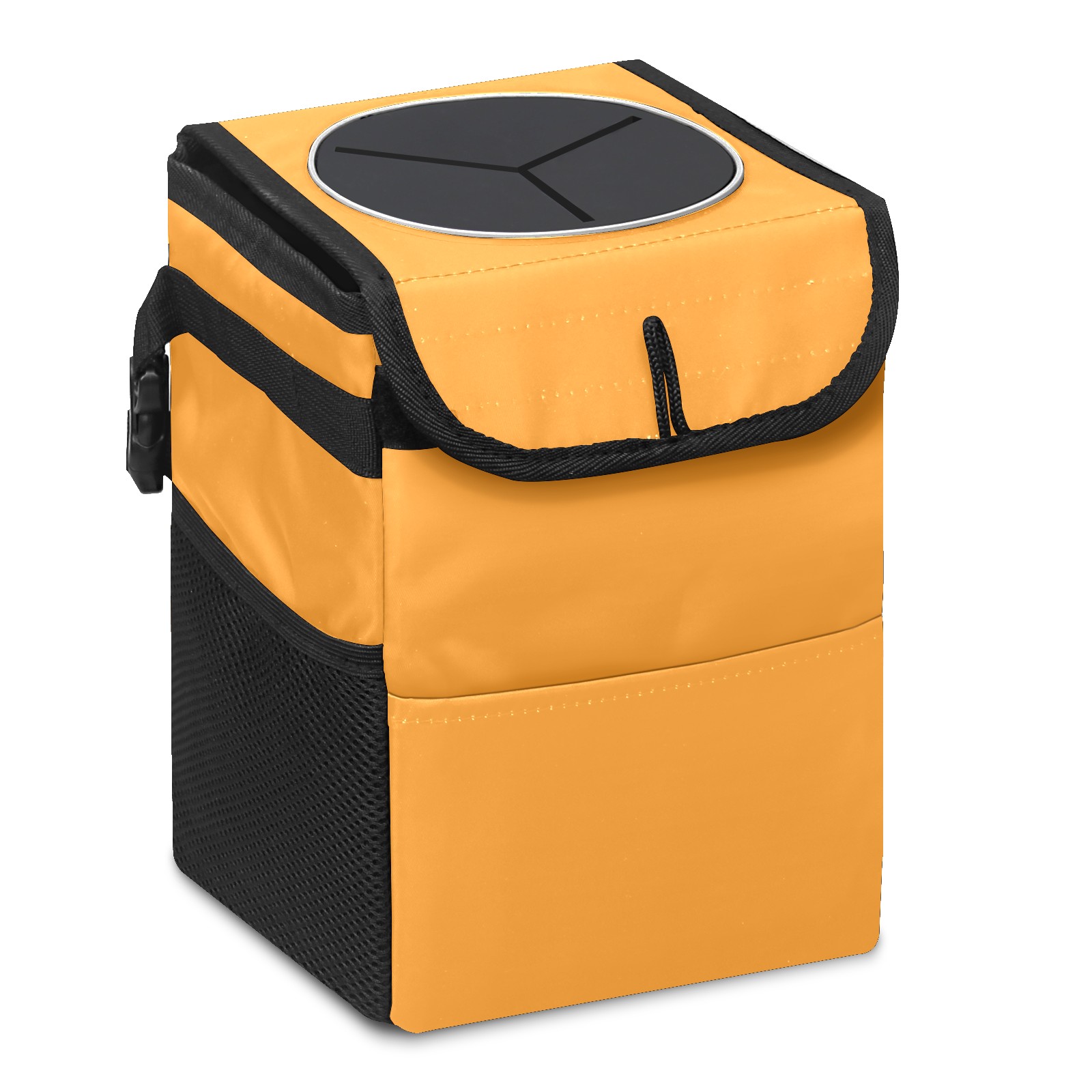 Universal Hanging Car Trash Can - Leakproof Design with Secure Lid | Fits SUV, Truck, Van | Front & Back Seat Friendly | Smart Automotive Accessory Orange1