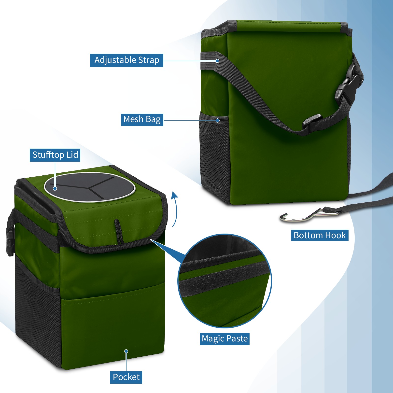 Universal Hanging Car Trash Can - Leakproof Design with Secure Lid | Fits SUV, Truck, Van | Front & Back Seat Friendly | Smart Automotive Accessory Green4