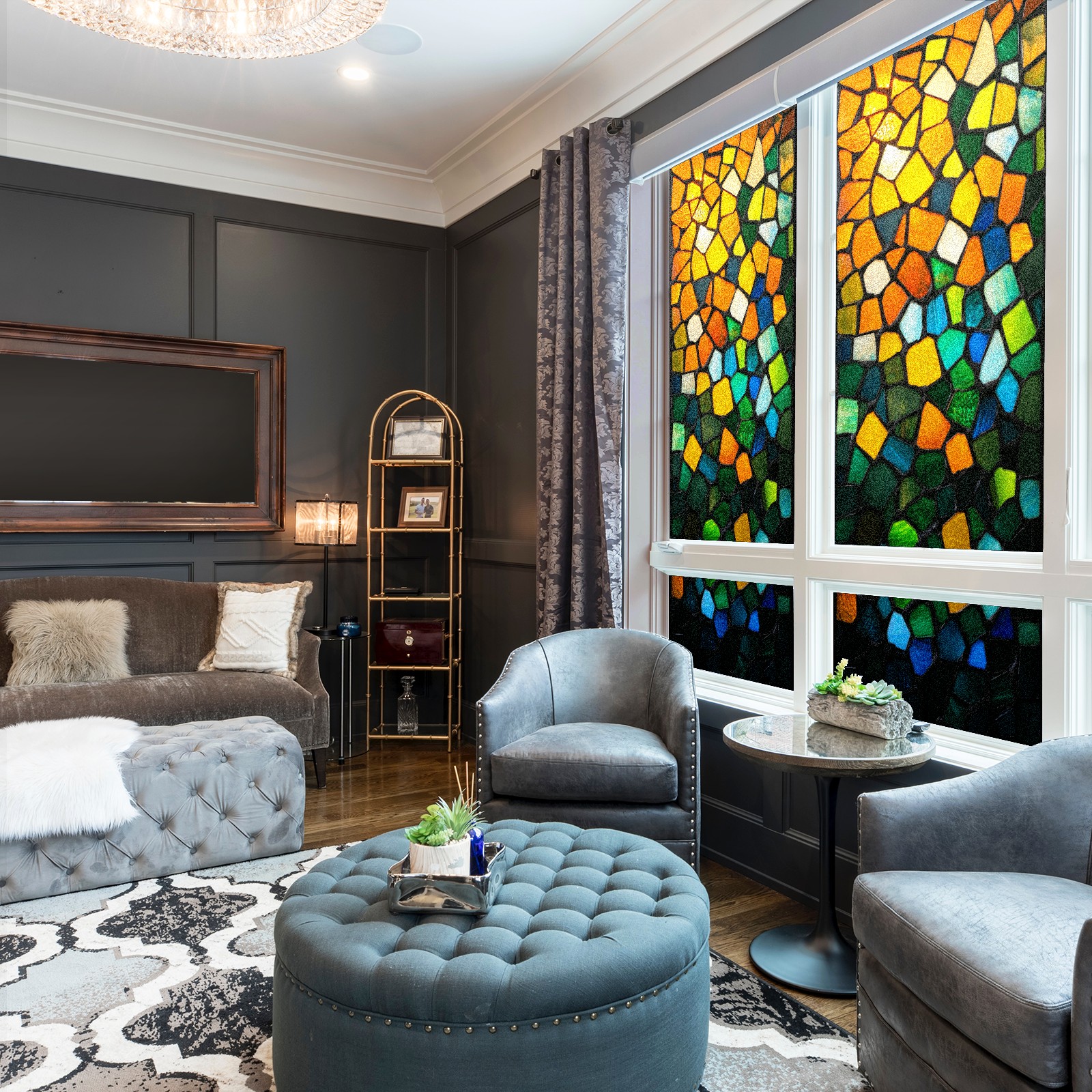 <p><b>Privacy Protection with Aesthetic Design</b></p><p>The frosted privacy window film protection for bathrooms, bedrooms, offices, and storefronts. Its light-diffusing texture maintains natural daylight while blocking 95% of UV rays and external visibility. Our window glass films offers excellent sun blocking capabilities, effectively reducing heat and glare, give privacy while still allowing natural soft light in.This window glass films with graphic printings, bright and vivid color, long term non fading</p><p><b>Effortless Installation &amp; Versatile Application</b></p><p>This frosted window film works perfectly for bathroom glass partitions, bedroom bay windows, kitchen sliding doors, office dividers, and storefront windows. With a 3-step installation process (clean, spray, smooth), it takes just 10 minutes to transform any glass surface. The film is trimmable for custom sizes and shapes, compatible with curved or unique glass designs.&nbsp;</p><p><b>We have various sizes and patterns, and there is always one that meets your preferences. Welcome to purchase Counullo frosted glass sticker.</b></p>