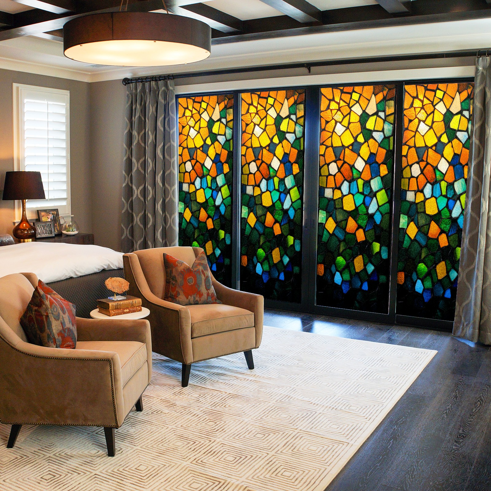 • <p><b>Privacy Protection with Aesthetic Design</b></p><p>The frosted privacy window film protection for bathrooms, bedrooms, offices, and storefronts. Its light-diffusing texture maintains natural daylight while blocking 95% of UV rays and external visibility. Our window glass films offers excellent sun blocking capabilities, effectively reducing heat and glare, give privacy while still allowing natural soft light in.This window glass films with graphic printings, bright and vivid color, long term non fading</p><p><b>Effortless Installation &amp; Versatile Application</b></p><p>This frosted window film works perfectly for bathroom glass partitions, bedroom bay windows, kitchen sliding doors, office dividers, and storefront windows. With a 3-step installation process (clean, spray, smooth), it takes just 10 minutes to transform any glass surface. The film is trimmable for custom sizes and shapes, compatible with curved or unique glass designs.&nbsp;</p><p><b>We have various sizes and patterns, and there is always one that meets your preferences. Welcome to purchase Counullo frosted glass sticker.</b></p>