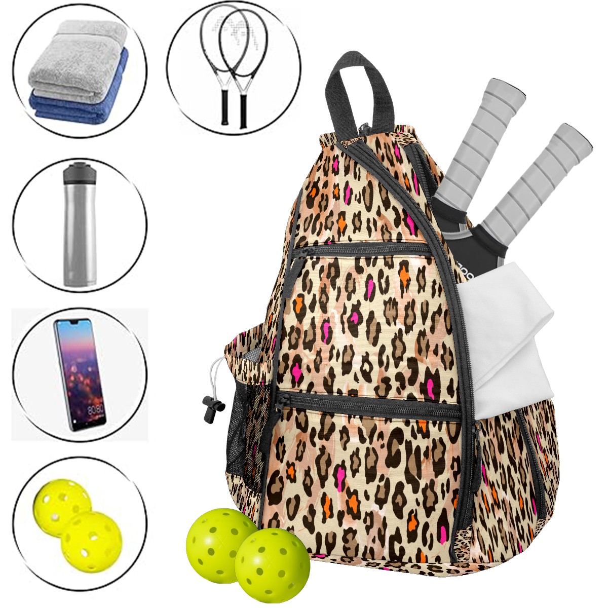 <p>This multifunctional pickleball Bag is made of lightweight and durable nylon fabric, which is lightweight yet has a large capacity, making it easy to store all equipment. Adjustable shoulder strap design supports multiple carrying modes on one shoulder and both shoulders, adapting to left and right hand habits; Breathable mesh back pad+waterproof fabric, balancing comfort and protection. The safety pocket and mesh hook design make access more convenient. Whether it's competition training, daily commuting, or as a gift, it's an ideal choice that combines practicality and aesthetics!</p>