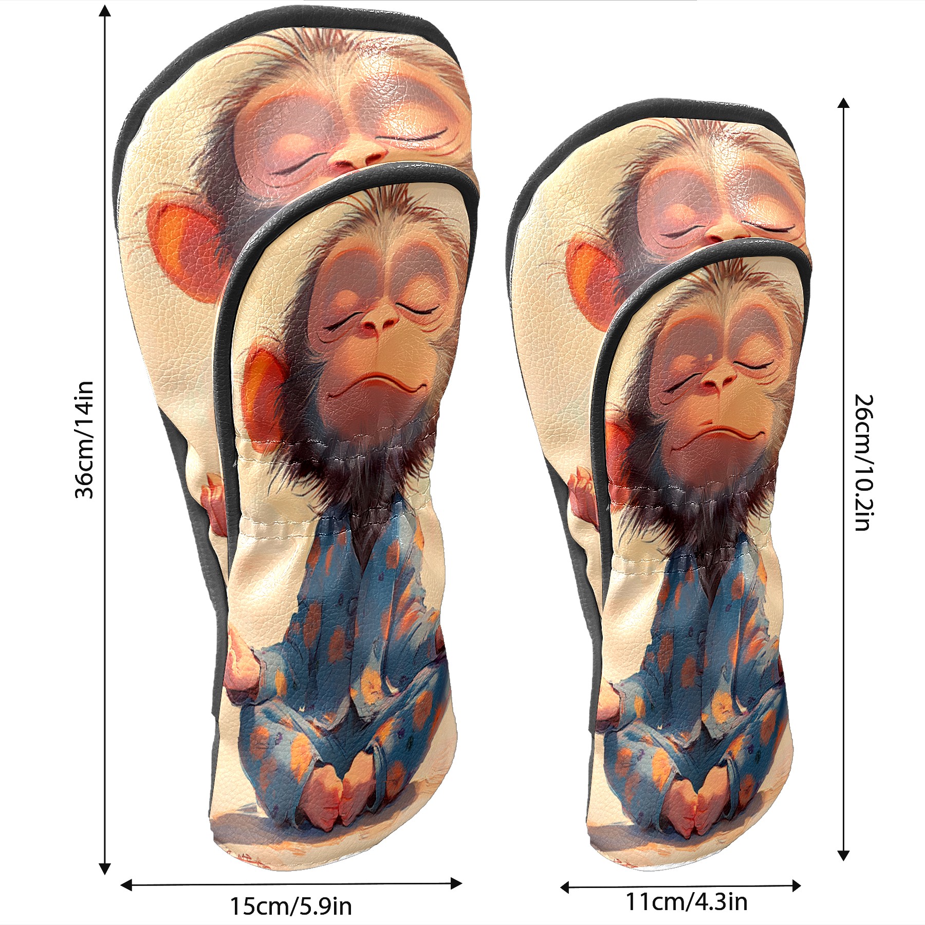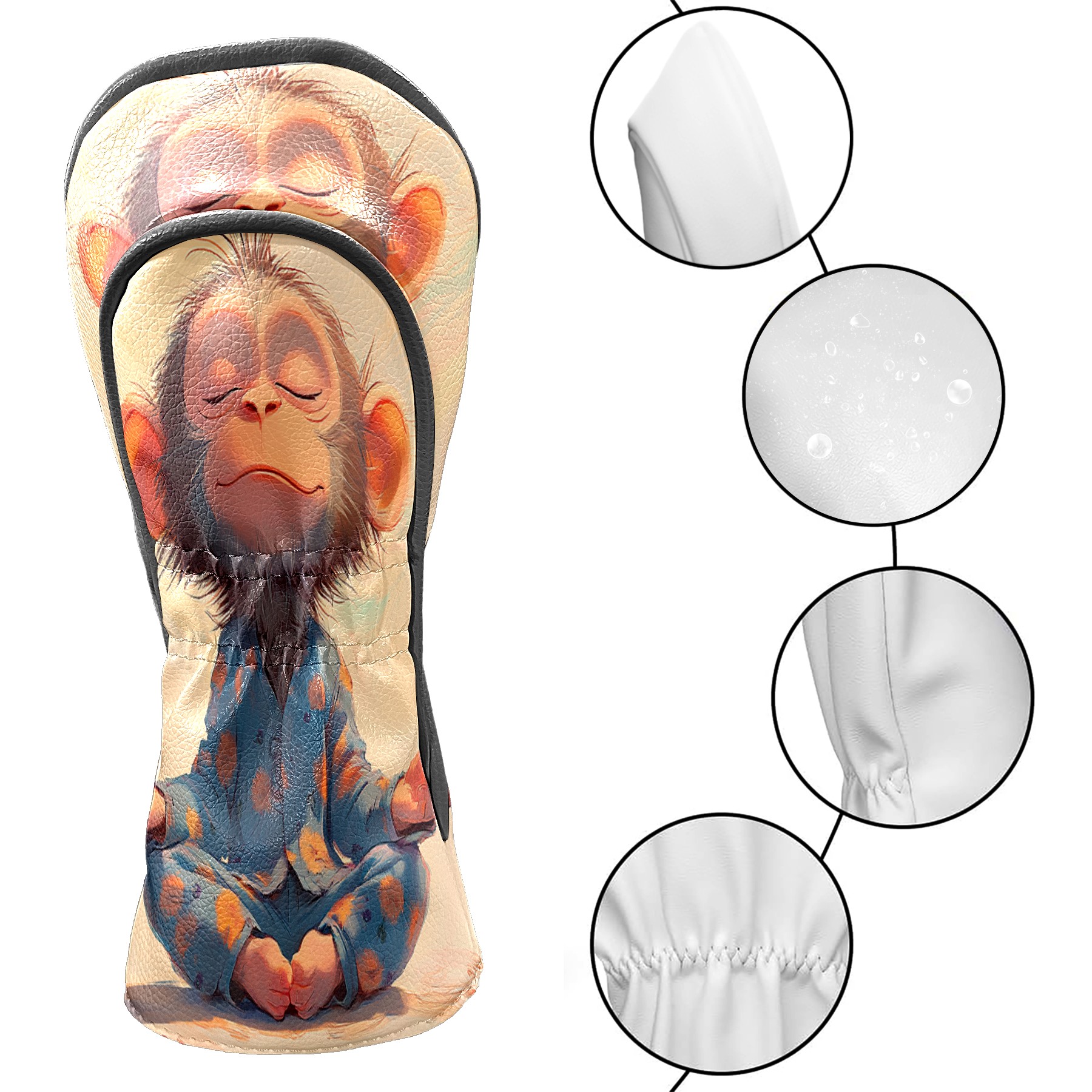 Golf Club Head Covers Monkey Driver Fairway Headcover - Water Resistant PU Leather Golf Club Covers Plush Lined Golf Head Covers for Woods and Driver Ideal Gift for Men Women