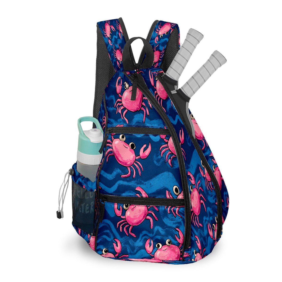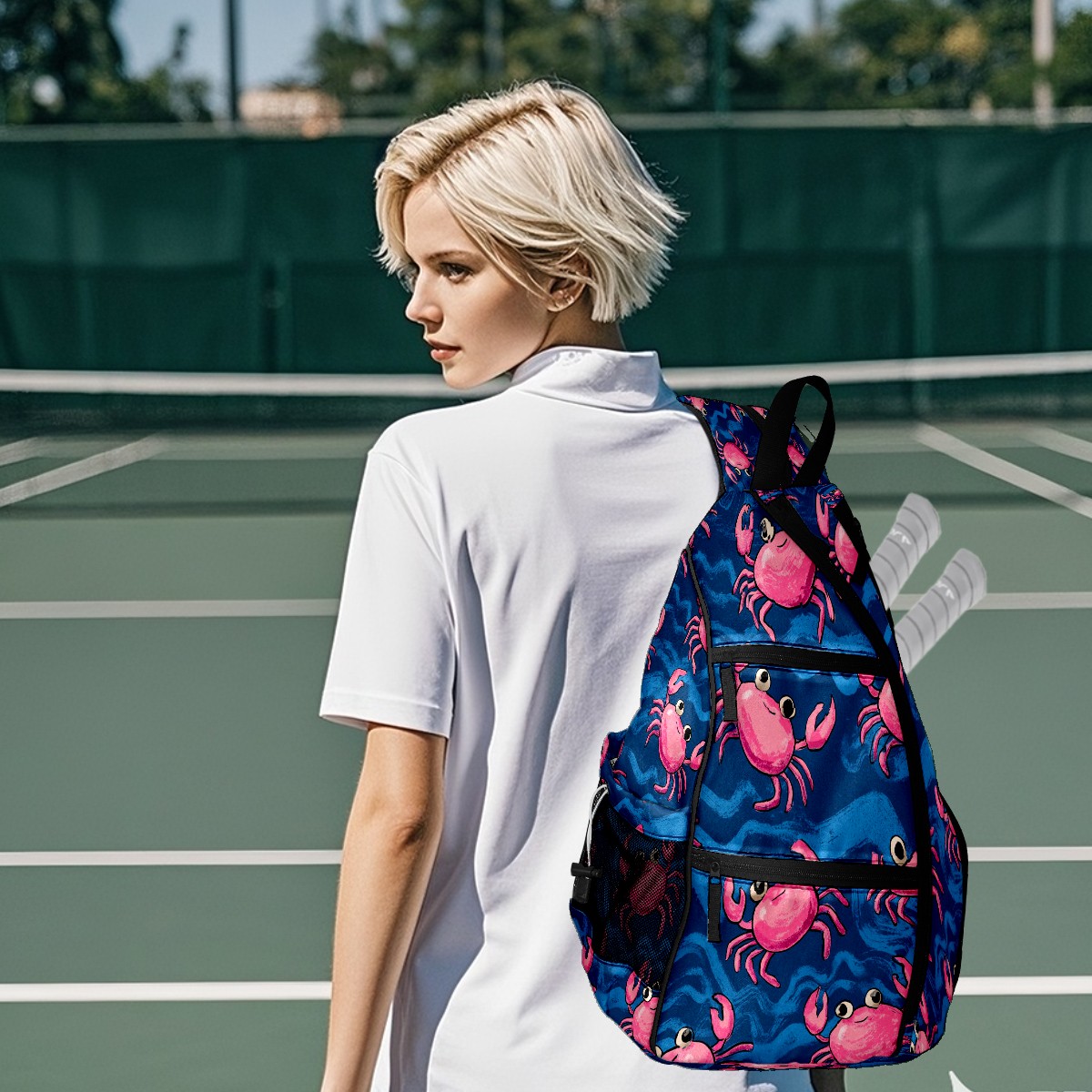 Pickleball Backpack Lively Crab Blue for Women Men - Multi-Pocket Sports Bag with Shoe Compartment | Versatile Tennis Bag & Gifts for Pickleball Lovers